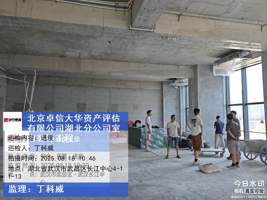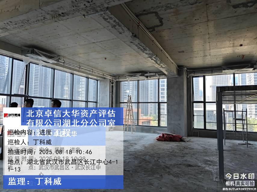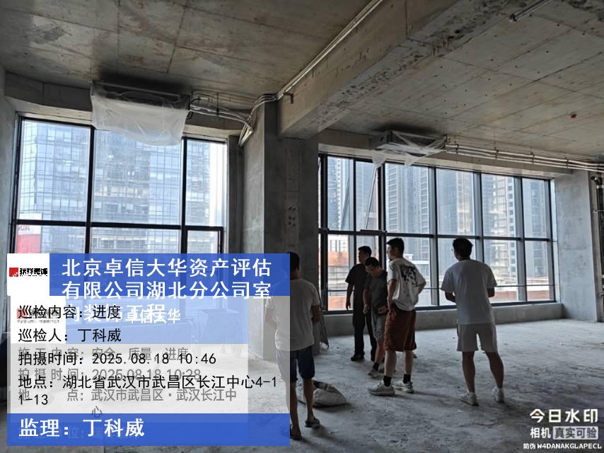 版权声明:本站所有文章除特别标注授权发布外,其他文字内容均为原创,享有著作权保护,未经许可不得以任何形式进行转载(包括且不限于:媒体、网站、公众号等)。本文链接 -> 北京卓信大华资产评估有限公司湖北分公司办公空间装修2025年08月18日工程监理巡检