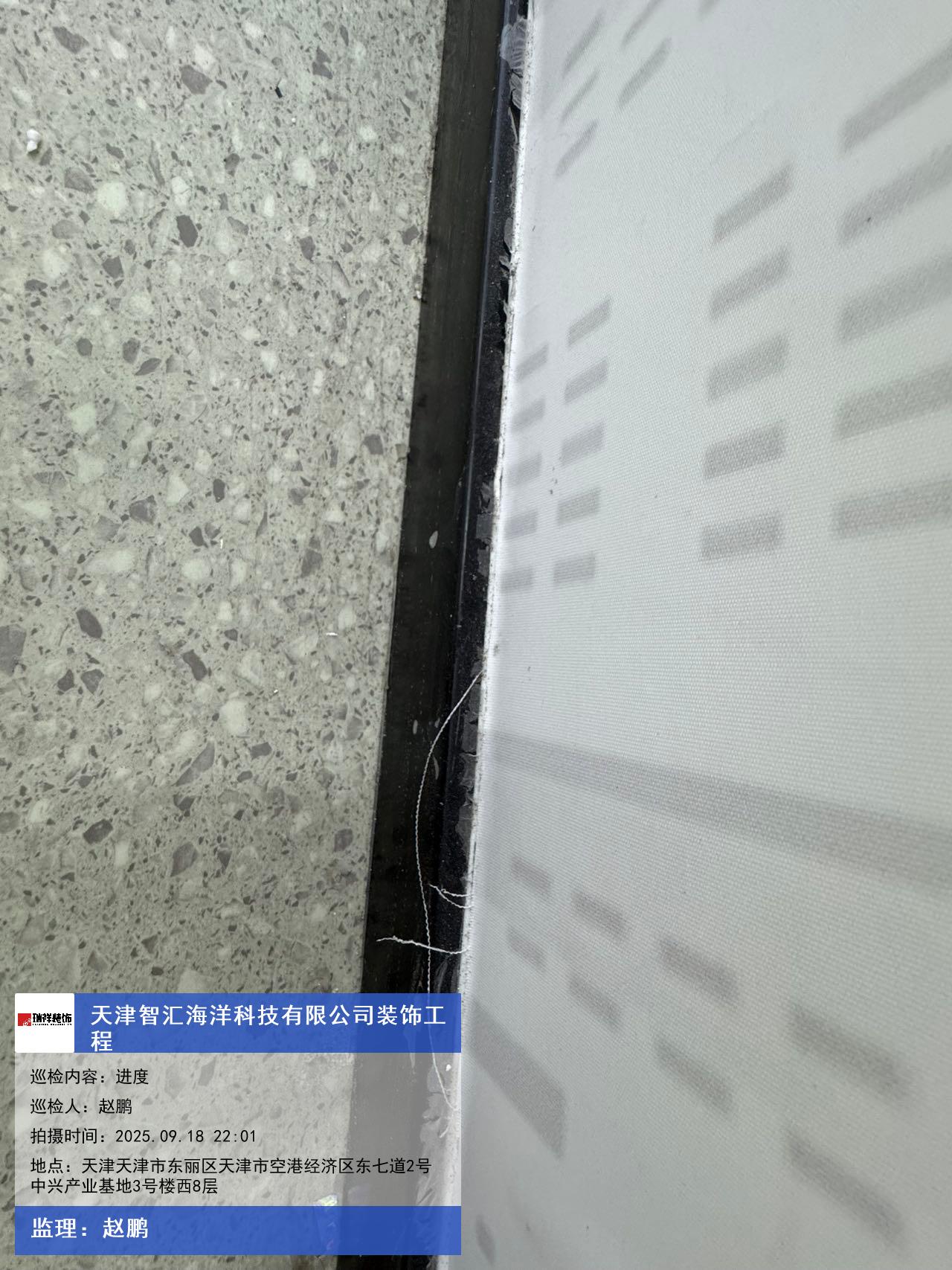 版权声明:本站所有文章除特别标注授权发布外,其他文字内容均为原创,享有著作权保护,未经许可不得以任何形式进行转载(包括且不限于:媒体、网站、公众号等)。本文链接 -> 天津智汇海洋科技有限公司办公室装修2025年09月18日工程监理巡检