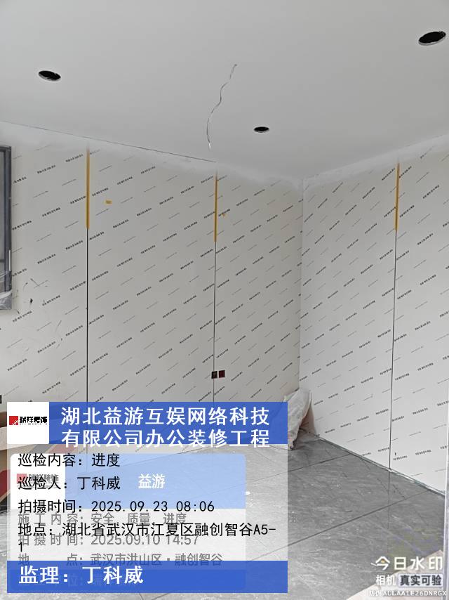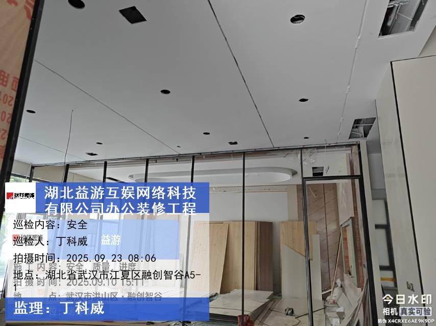 版权声明:本站所有文章除特别标注授权发布外,其他文字内容均为原创,享有著作权保护,未经许可不得以任何形式进行转载(包括且不限于:媒体、网站、公众号等)。本文链接 -> 湖北益游互娱网络科技有限公司专业办公室装修2025年09月23日工程监理巡检