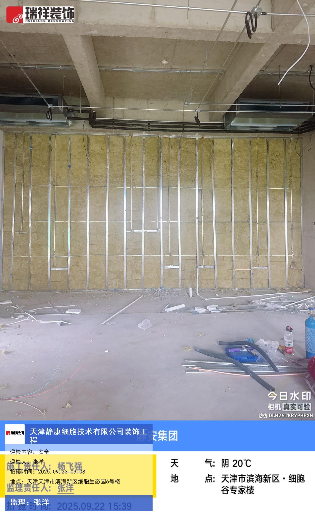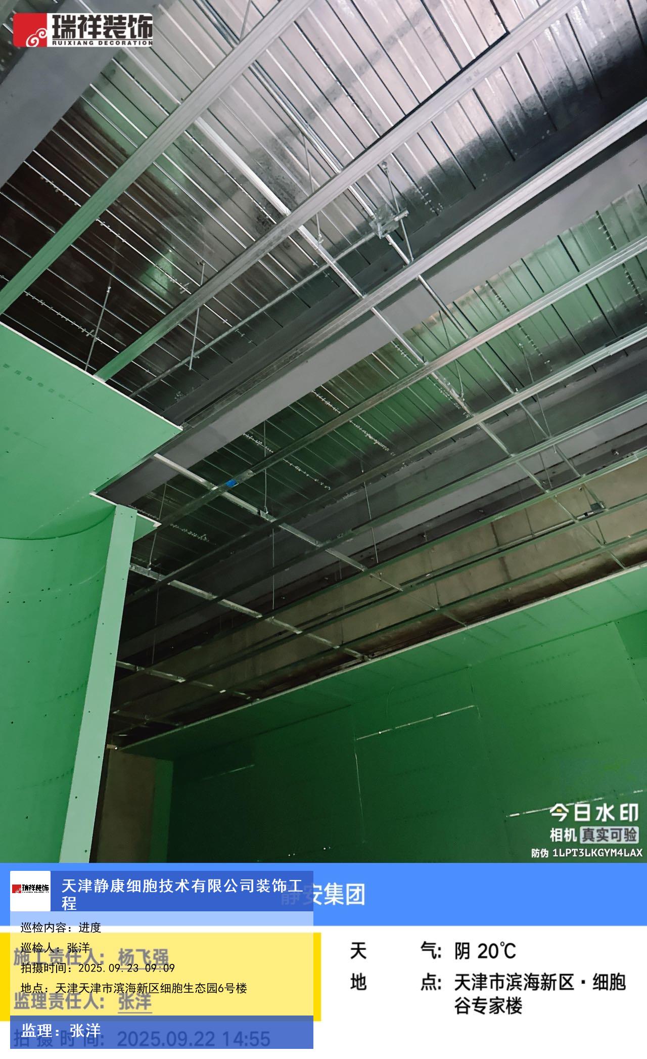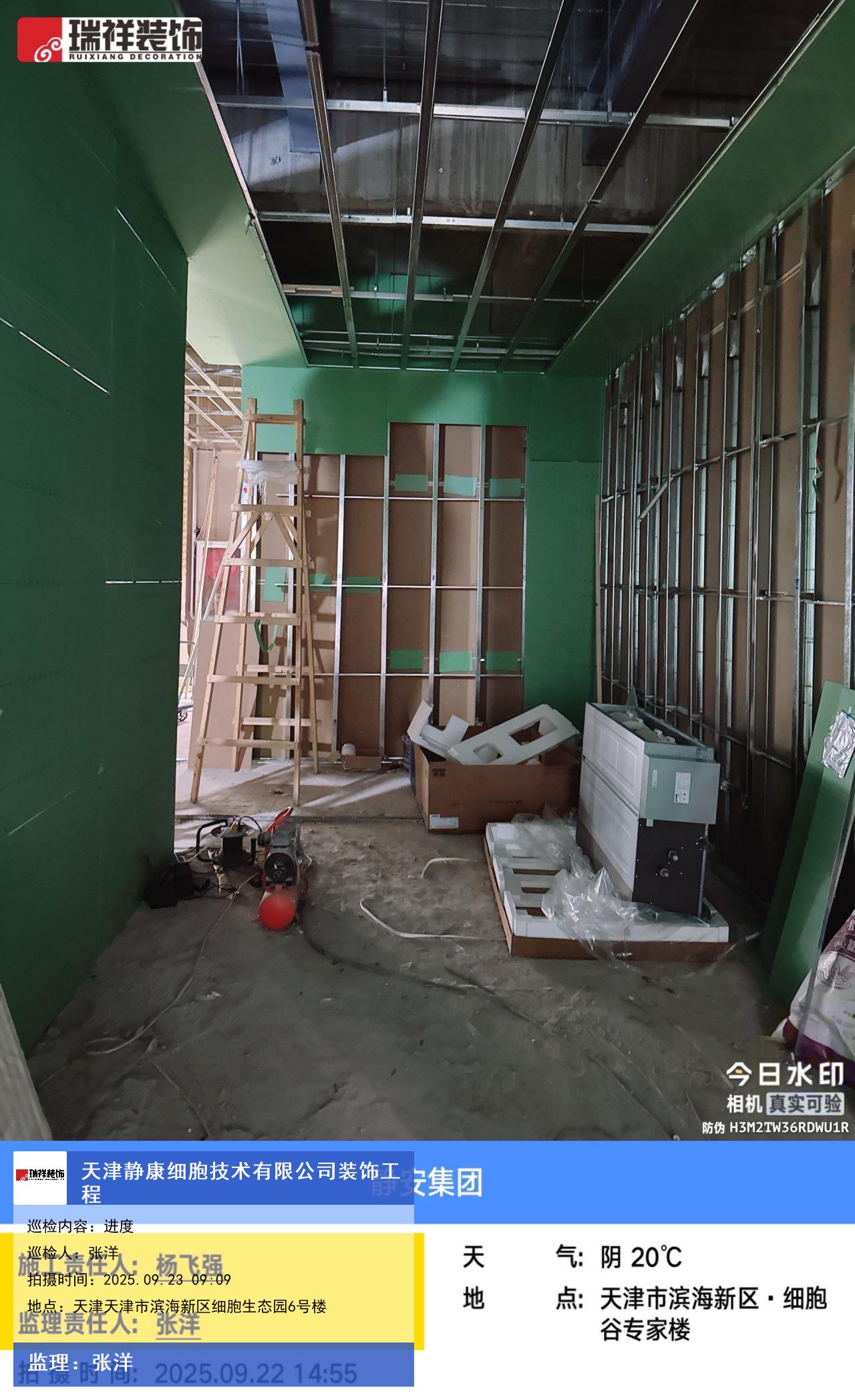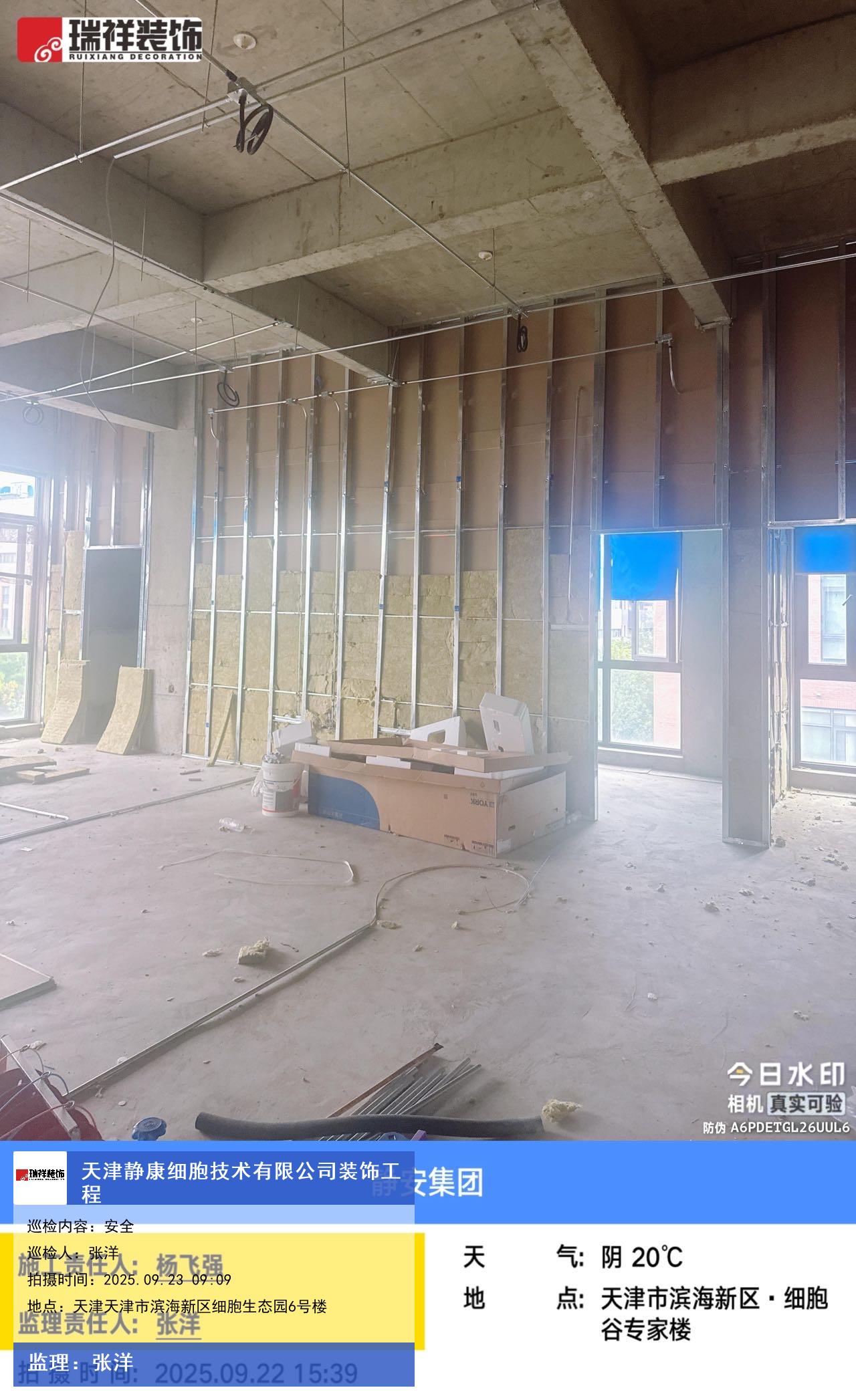 版权声明:本站所有文章除特别标注授权发布外,其他文字内容均为原创,享有著作权保护,未经许可不得以任何形式进行转载(包括且不限于:媒体、网站、公众号等)。本文链接 -> 天津静康细胞技术有限公司办公设计2025年09月23日工程监理巡检