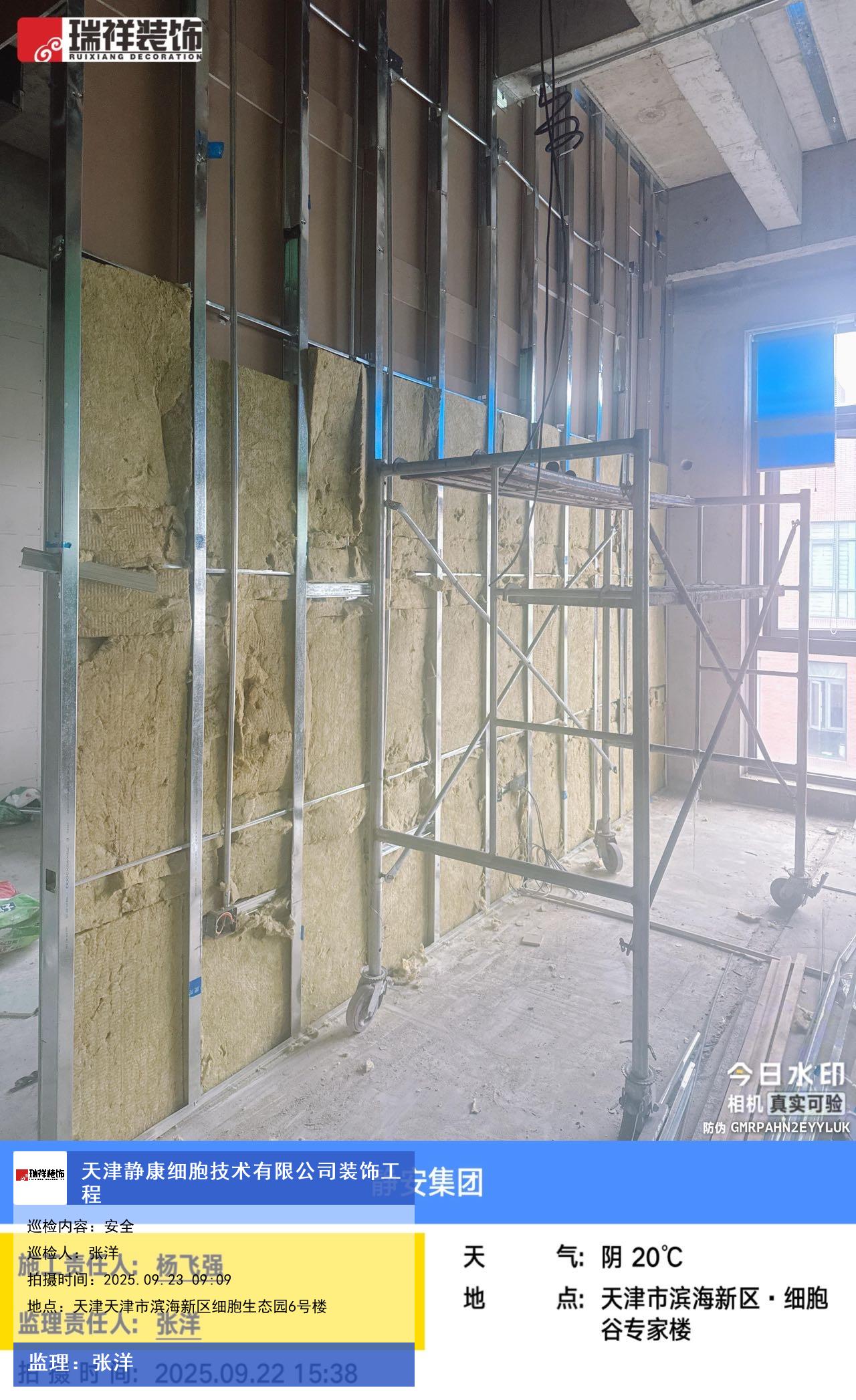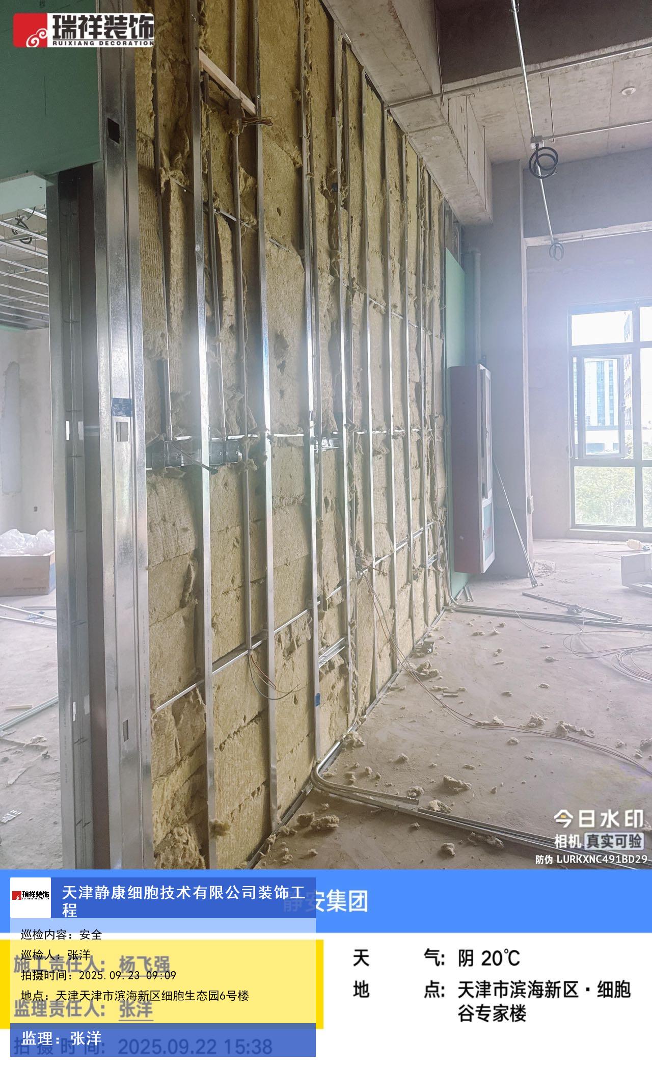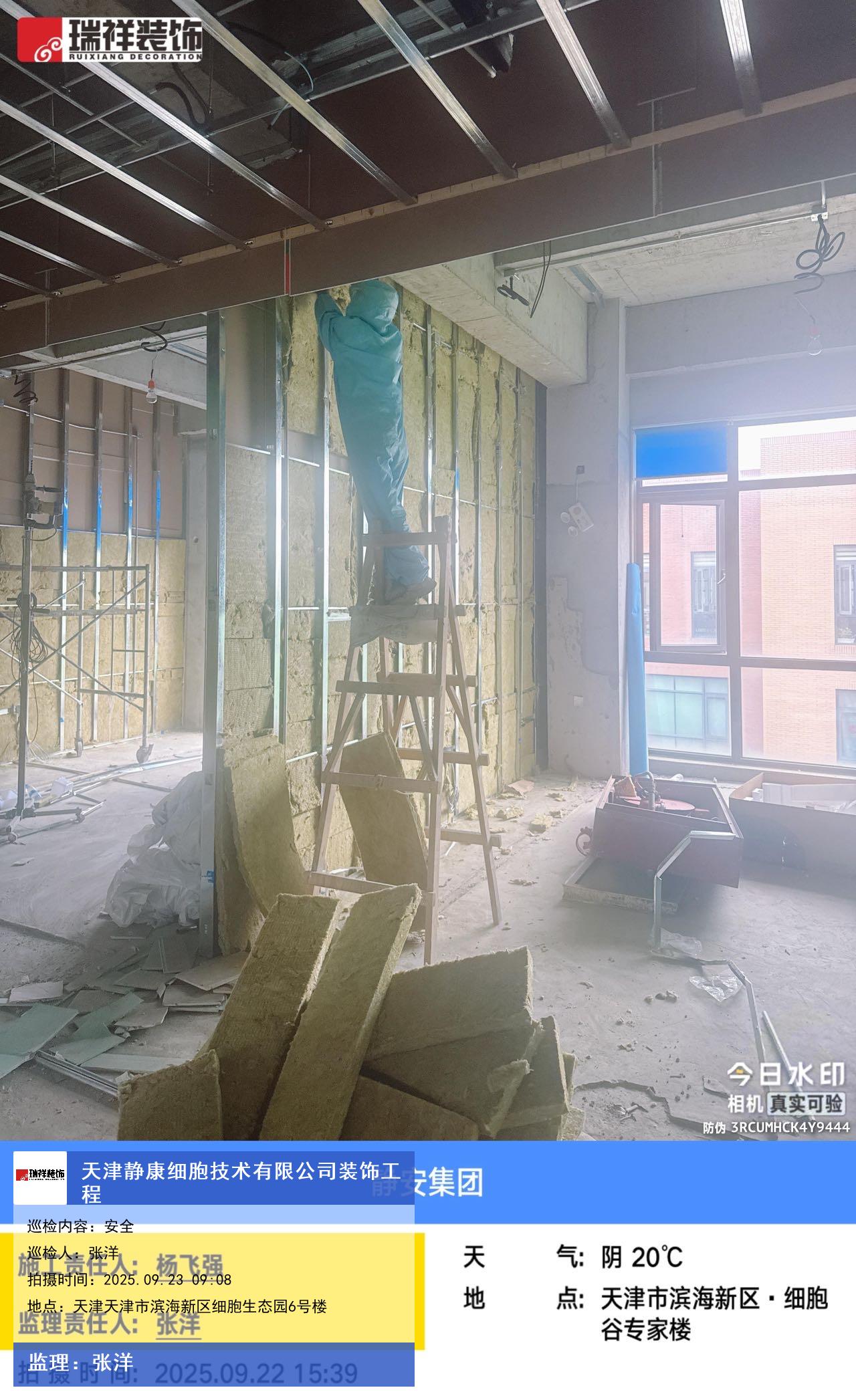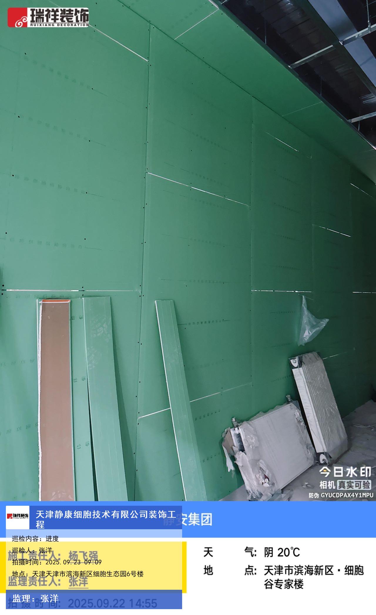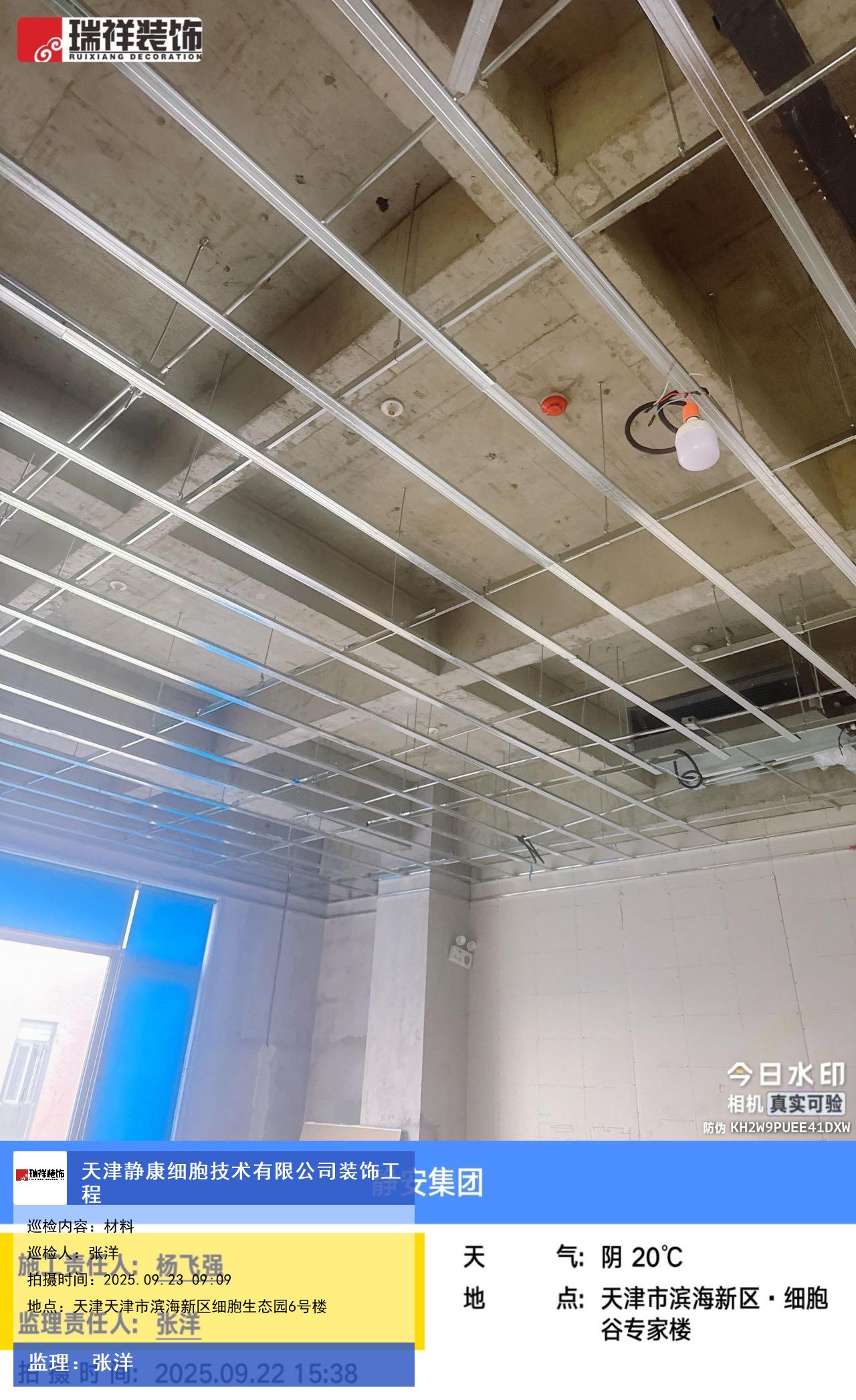 版权声明:本站所有文章除特别标注授权发布外,其他文字内容均为原创,享有著作权保护,未经许可不得以任何形式进行转载(包括且不限于:媒体、网站、公众号等)。本文链接 -> 天津静康细胞技术有限公司办公设计2025年09月23日工程监理巡检