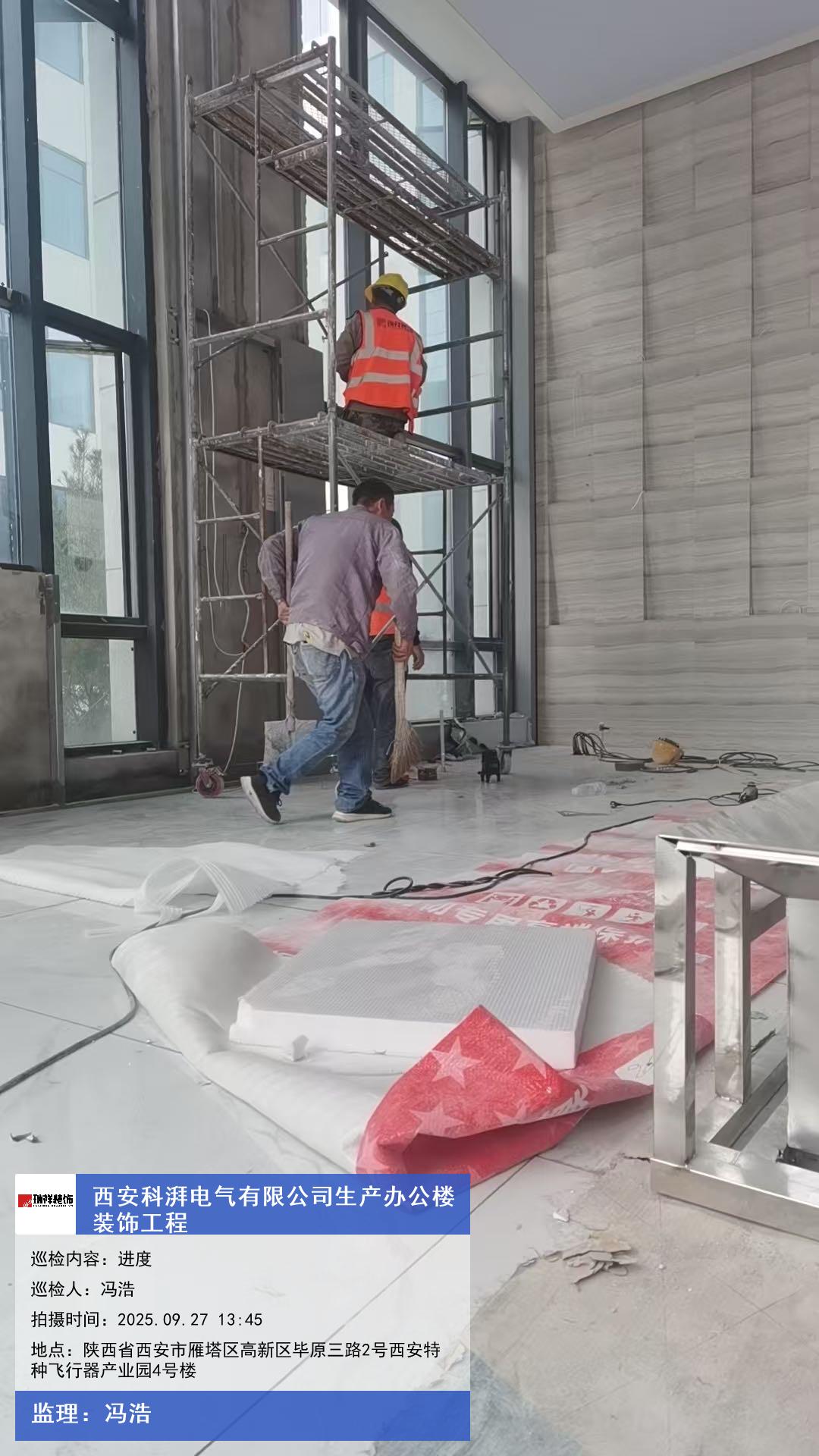 版权声明:本站所有文章除特别标注授权发布外,其他文字内容均为原创,享有著作权保护,未经许可不得以任何形式进行转载(包括且不限于:媒体、网站、公众号等)。本文链接 -> 西安科湃电气有限公司网红办公室装修2025年09月27日工程监理巡检