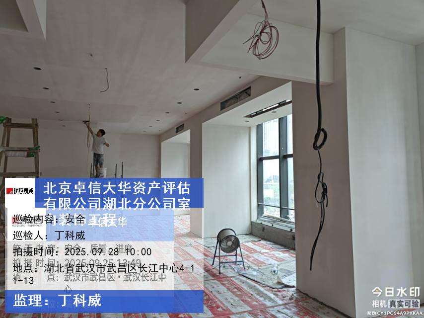 版权声明:本站所有文章除特别标注授权发布外,其他文字内容均为原创,享有著作权保护,未经许可不得以任何形式进行转载(包括且不限于:媒体、网站、公众号等)。本文链接 -> 北京卓信大华资产评估有限公司湖北分公司写字楼装修公司2025年09月28日工程监理巡检