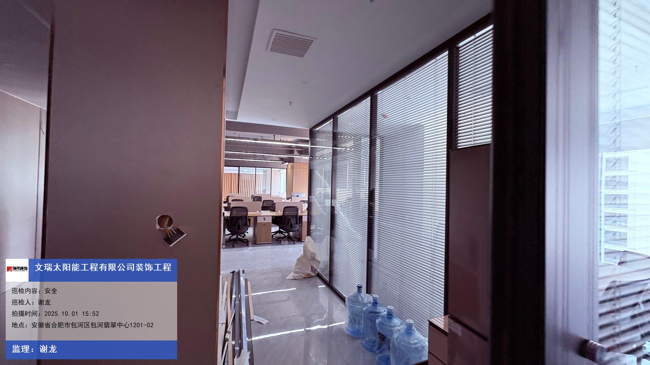 版权声明:本站所有文章除特别标注授权发布外,其他文字内容均为原创,享有著作权保护,未经许可不得以任何形式进行转载(包括且不限于:媒体、网站、公众号等)。本文链接 -> 文瑞太阳能工程有限公司办公室装修公司2025年10月01日工程监理巡检