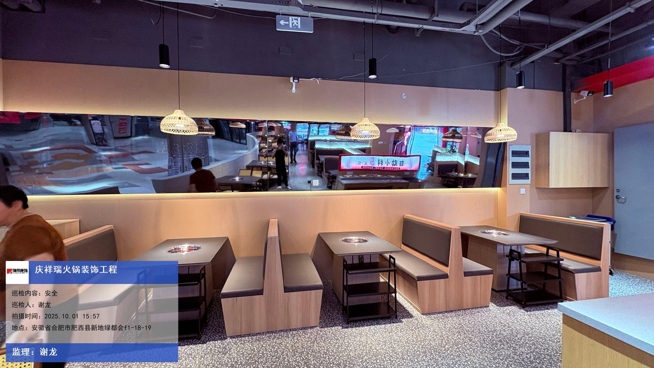 版权声明:本站所有文章除特别标注授权发布外,其他文字内容均为原创,享有著作权保护,未经许可不得以任何形式进行转载(包括且不限于:媒体、网站、公众号等)。本文链接 -> 庆祥瑞火锅餐饮装修设计公司实惠2025年10月01日工程监理巡检