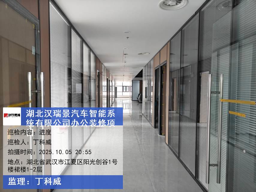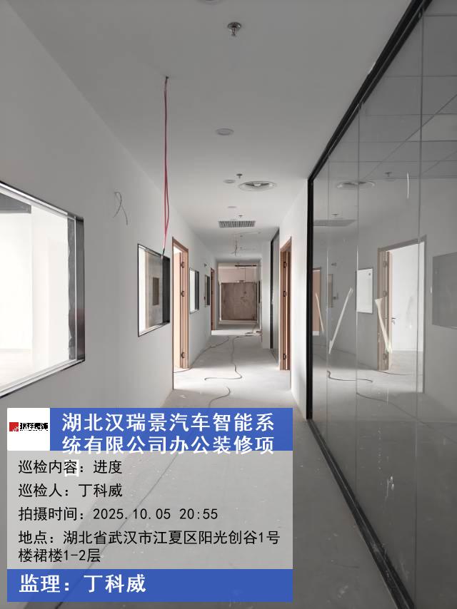 版权声明:本站所有文章除特别标注授权发布外,其他文字内容均为原创,享有著作权保护,未经许可不得以任何形式进行转载(包括且不限于:媒体、网站、公众号等)。本文链接 -> 湖北汉瑞景汽车智能系统有限公司办公设计室内装修2025年10月05日工程监理巡检