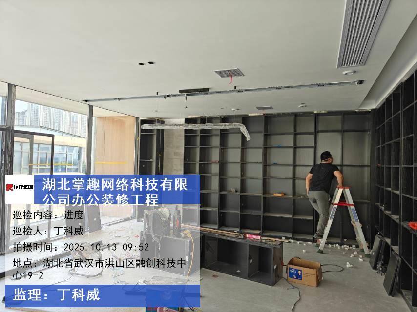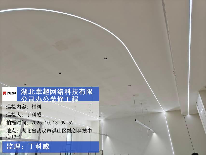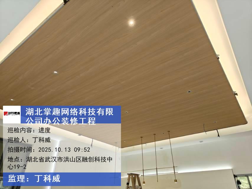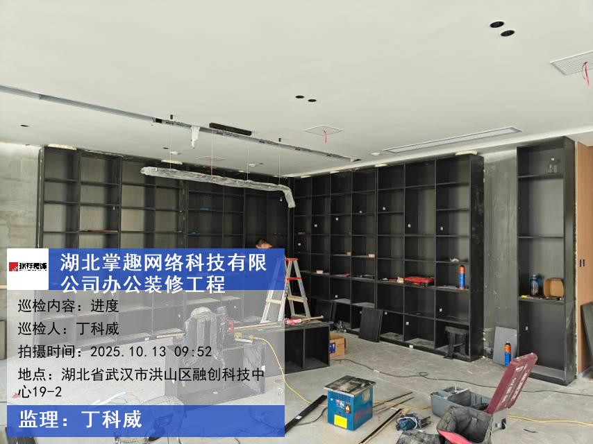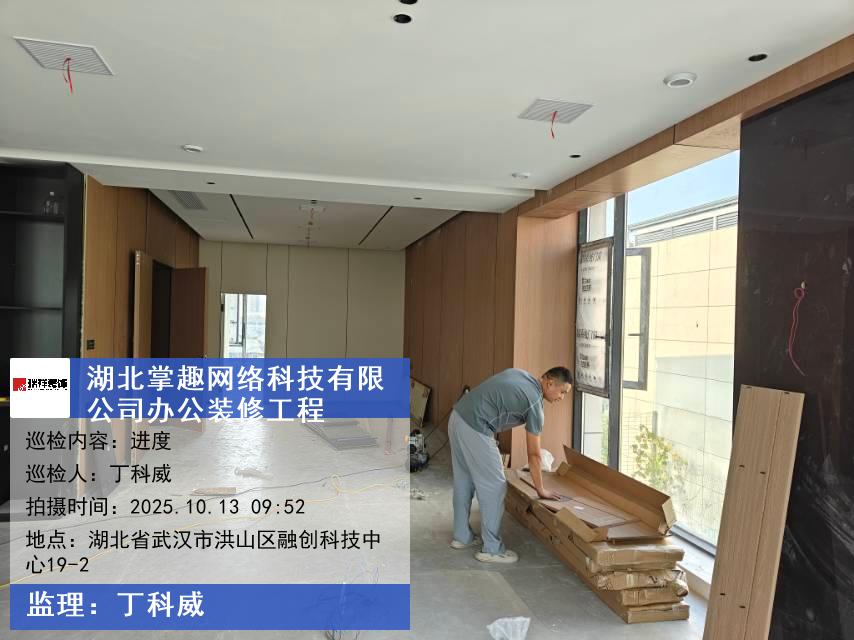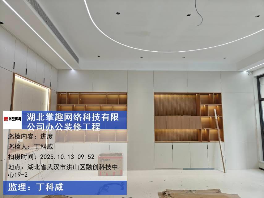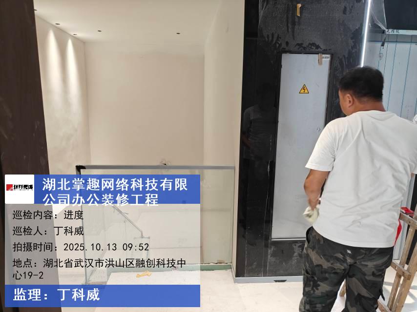 版权声明:本站所有文章除特别标注授权发布外,其他文字内容均为原创,享有著作权保护,未经许可不得以任何形式进行转载(包括且不限于:媒体、网站、公众号等)。本文链接 -> 湖北掌趣网络科技有限公司办公设计室内装修2025年10月13日工程监理巡检
