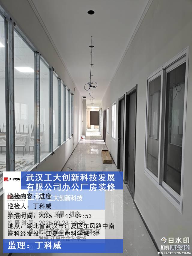 版权声明:本站所有文章除特别标注授权发布外,其他文字内容均为原创,享有著作权保护,未经许可不得以任何形式进行转载(包括且不限于:媒体、网站、公众号等)。本文链接 -> 武汉工大创新科技发展有限公司装修办公室2025年10月13日工程监理巡检