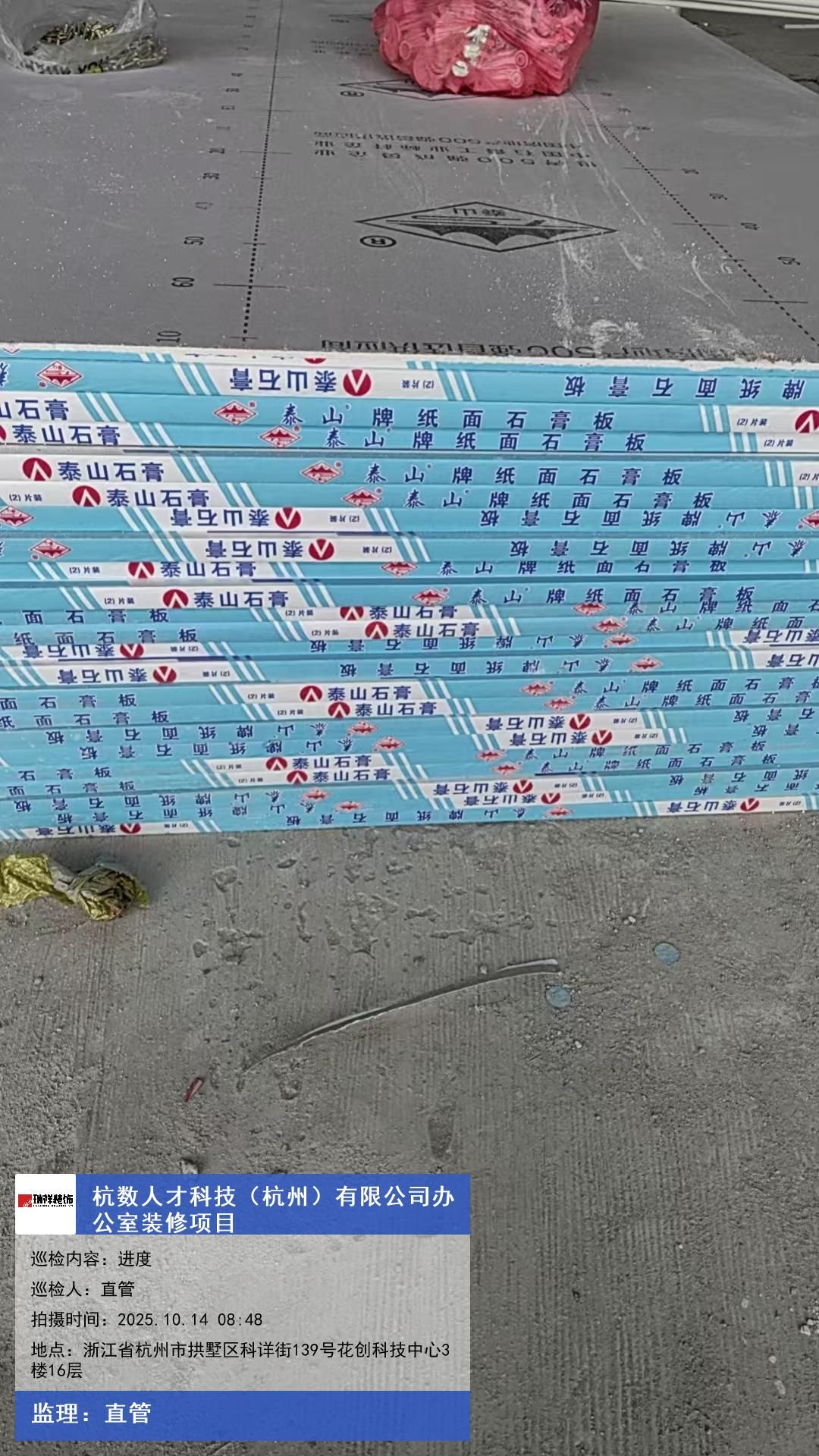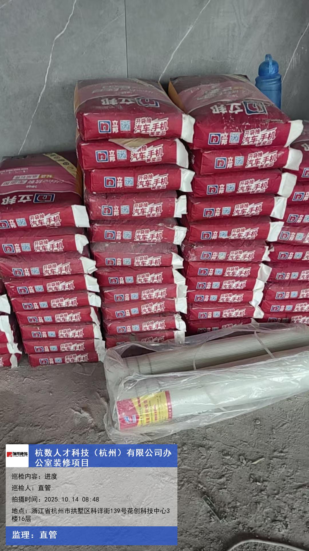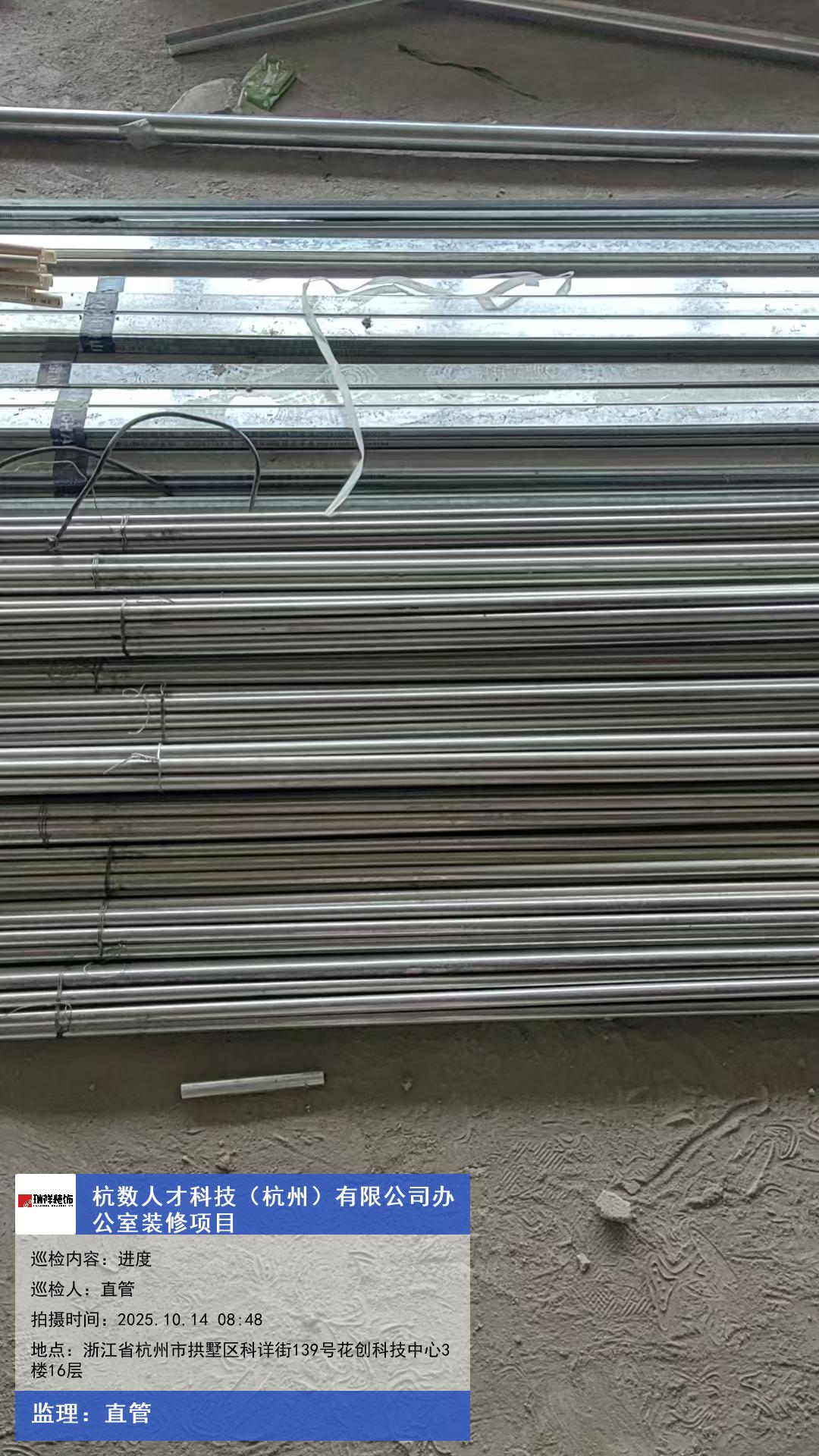 版权声明:本站所有文章除特别标注授权发布外,其他文字内容均为原创,享有著作权保护,未经许可不得以任何形式进行转载(包括且不限于:媒体、网站、公众号等)。本文链接 -> 杭数人才科技(杭州)有限公司写字楼装修2025年10月14日工程监理巡检