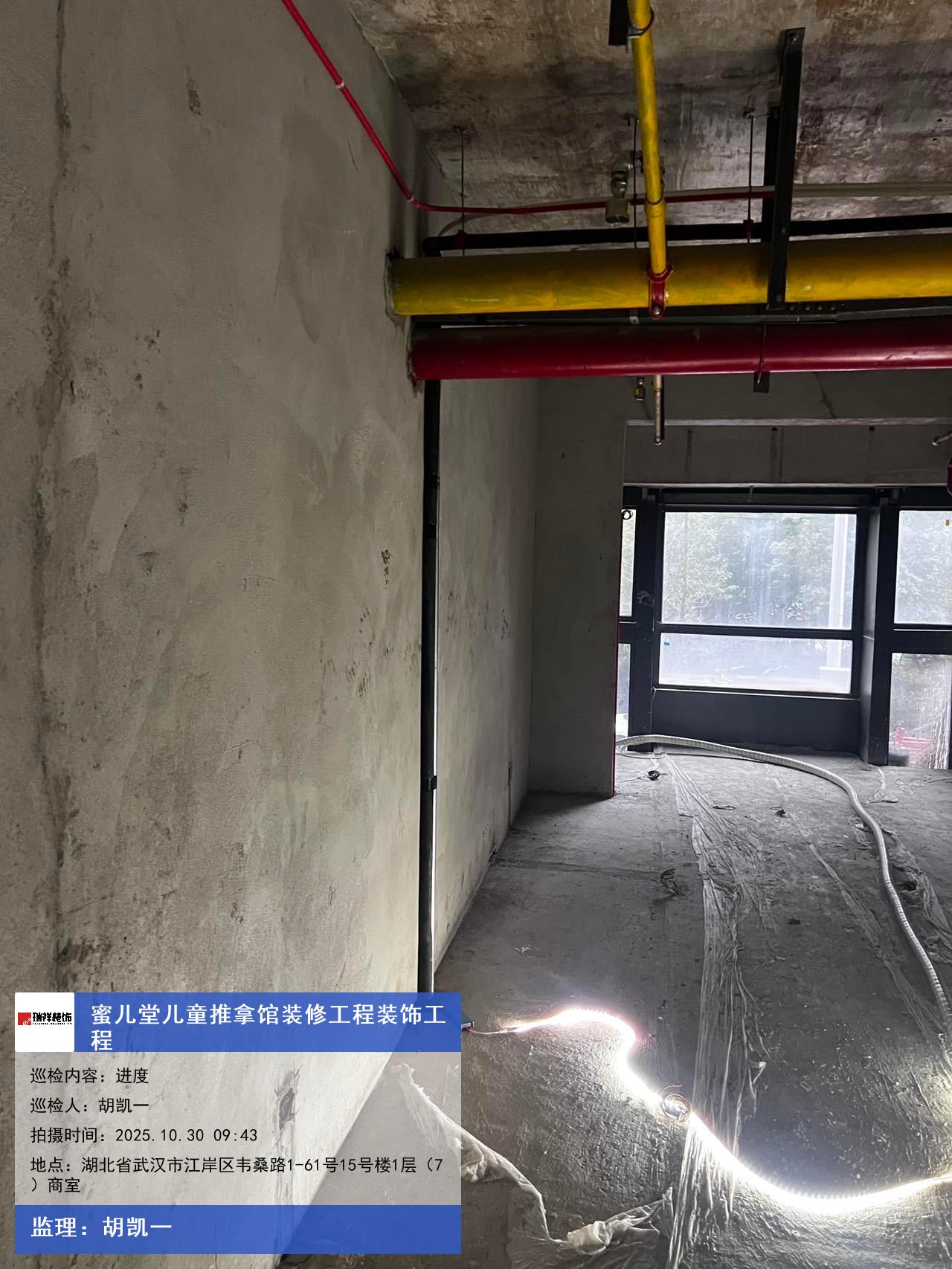 版权声明:本站所有文章除特别标注授权发布外,其他文字内容均为原创,享有著作权保护,未经许可不得以任何形式进行转载(包括且不限于:媒体、网站、公众号等)。本文链接 -> 蜜儿堂儿童推拿馆装修工程店面室内设计2025年10月30日工程监理巡检