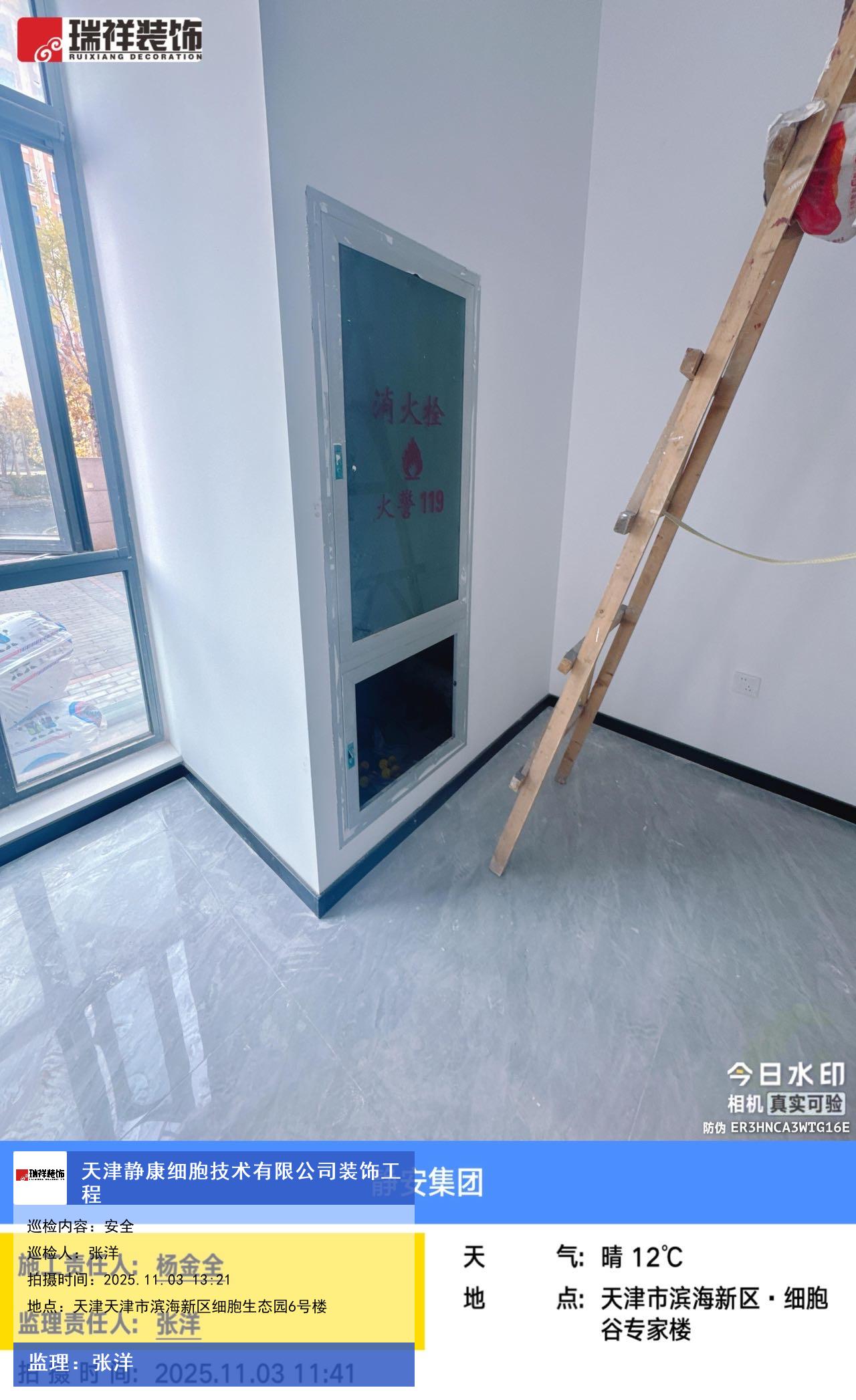 版权声明:本站所有文章除特别标注授权发布外,其他文字内容均为原创,享有著作权保护,未经许可不得以任何形式进行转载(包括且不限于:媒体、网站、公众号等)。本文链接 -> 天津静康细胞技术有限公司办公室装修装饰2025年11月03日工程监理巡检
