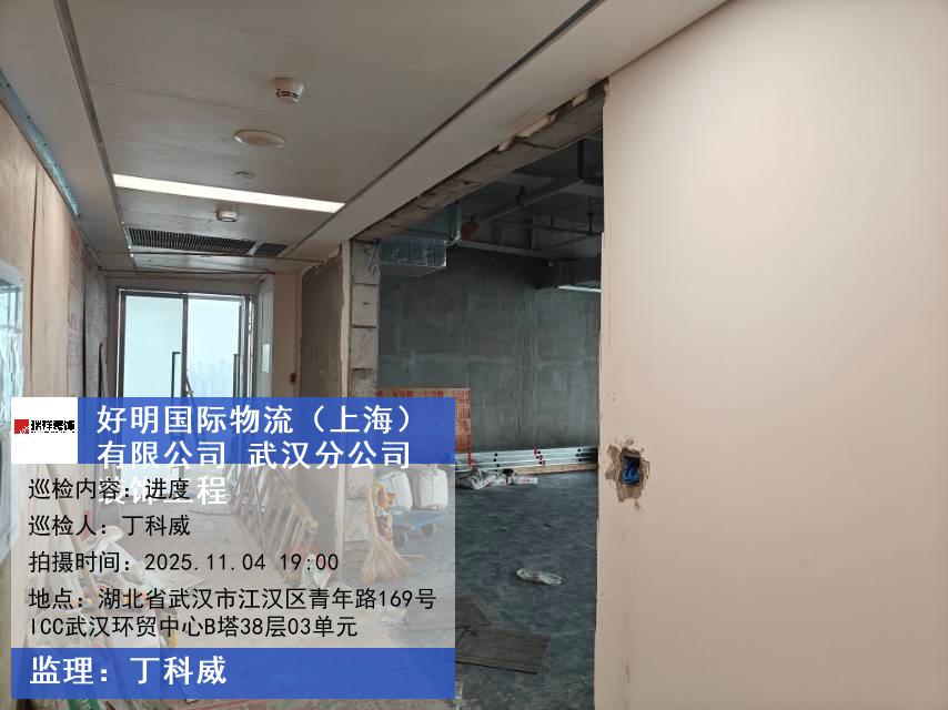 版权声明:本站所有文章除特别标注授权发布外,其他文字内容均为原创,享有著作权保护,未经许可不得以任何形式进行转载(包括且不限于:媒体、网站、公众号等)。本文链接 -> 好明国际物流(上海)有限公司武汉分公司写字楼装修2025年11月04日工程监理巡检