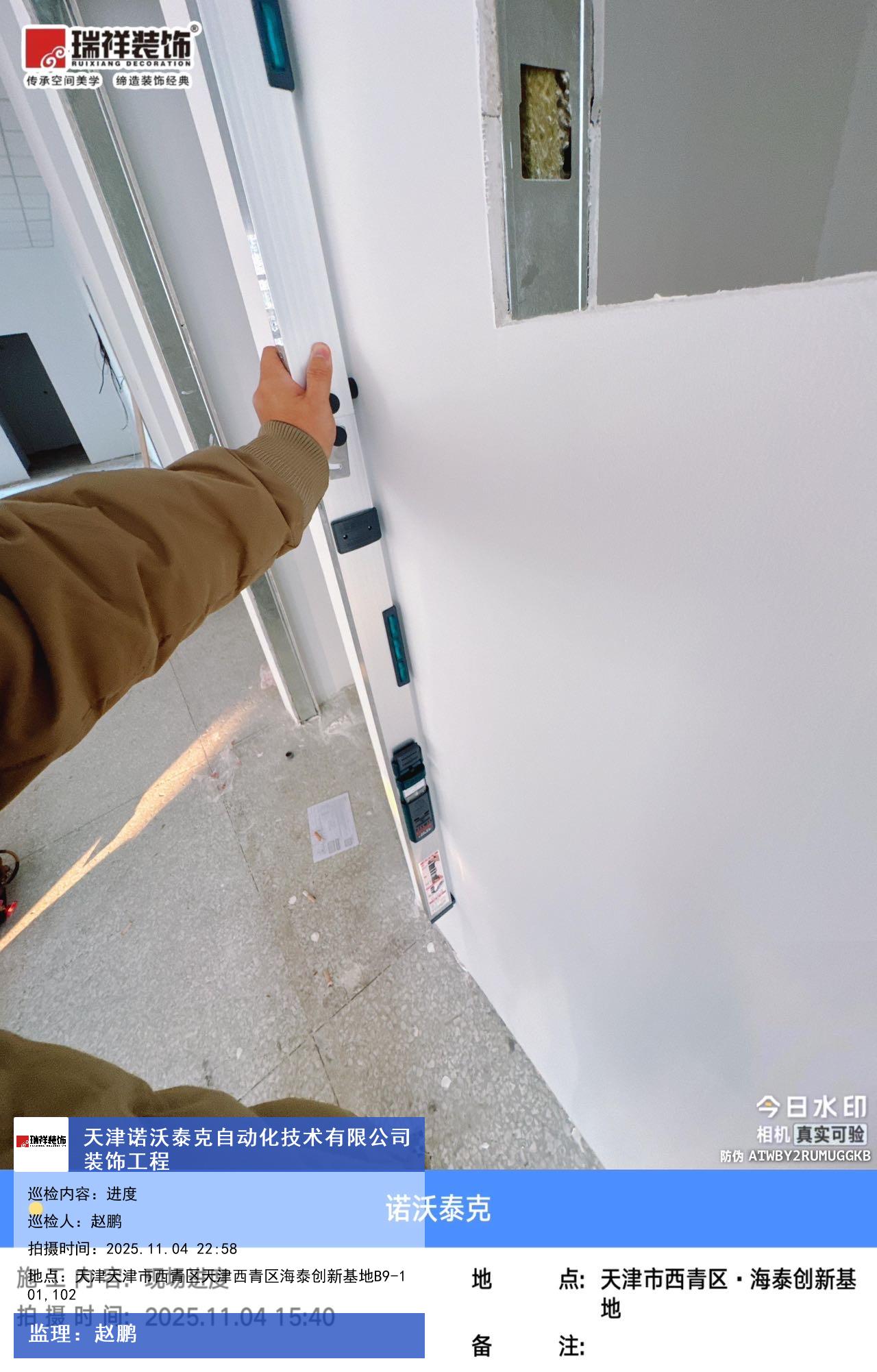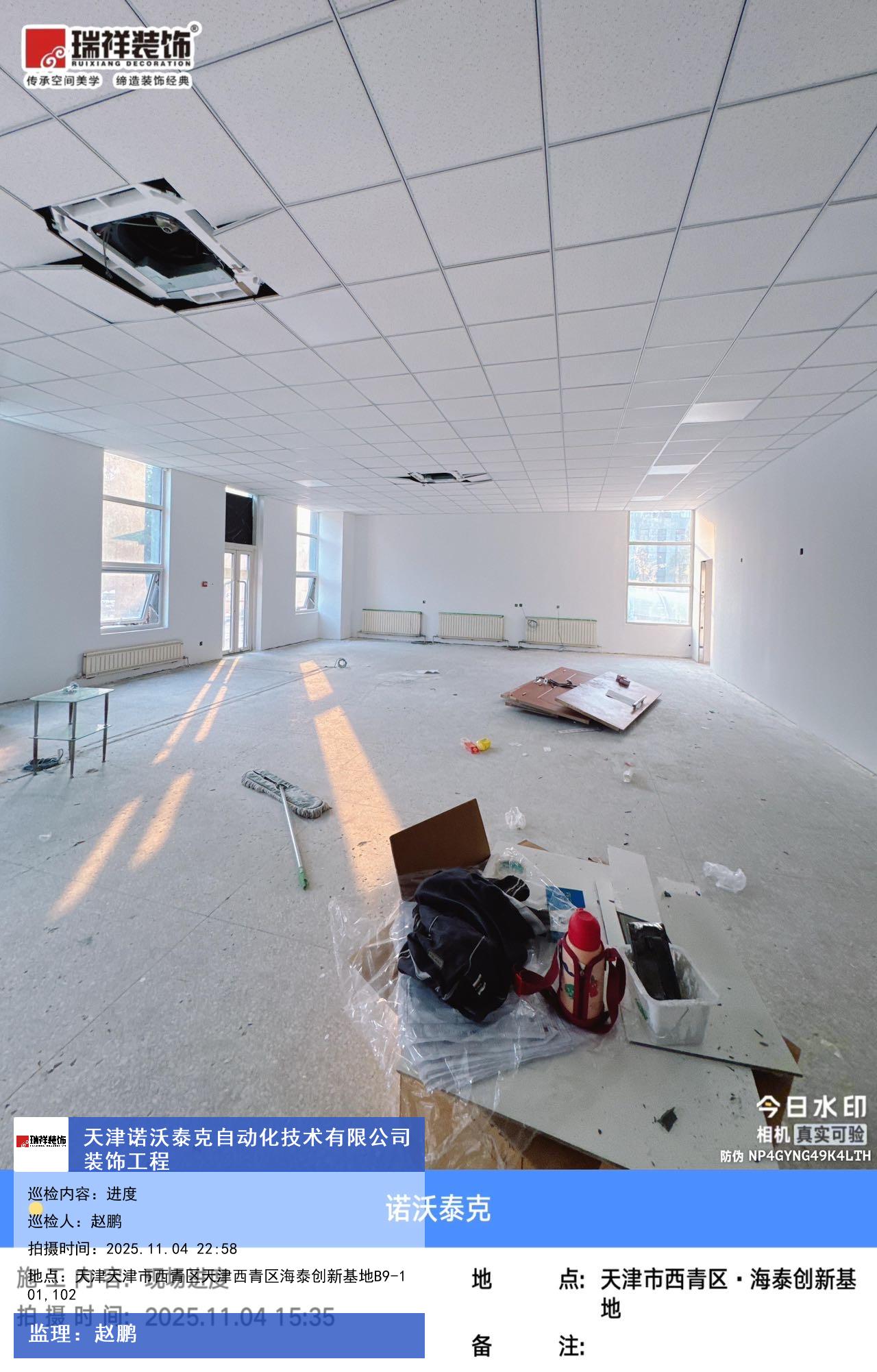 版权声明:本站所有文章除特别标注授权发布外,其他文字内容均为原创,享有著作权保护,未经许可不得以任何形式进行转载(包括且不限于:媒体、网站、公众号等)。本文链接 -> 天津诺沃泰克自动化技术有限公司银行装修2025年11月04日工程监理巡检