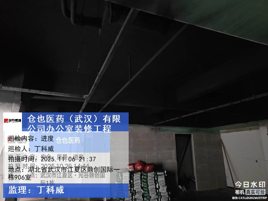 版权声明:本站所有文章除特别标注授权发布外,其他文字内容均为原创,享有著作权保护,未经许可不得以任何形式进行转载(包括且不限于:媒体、网站、公众号等)。本文链接 -> 仓也医药(武汉)有限公司办公室装修效果图2025年11月06日工程监理巡检