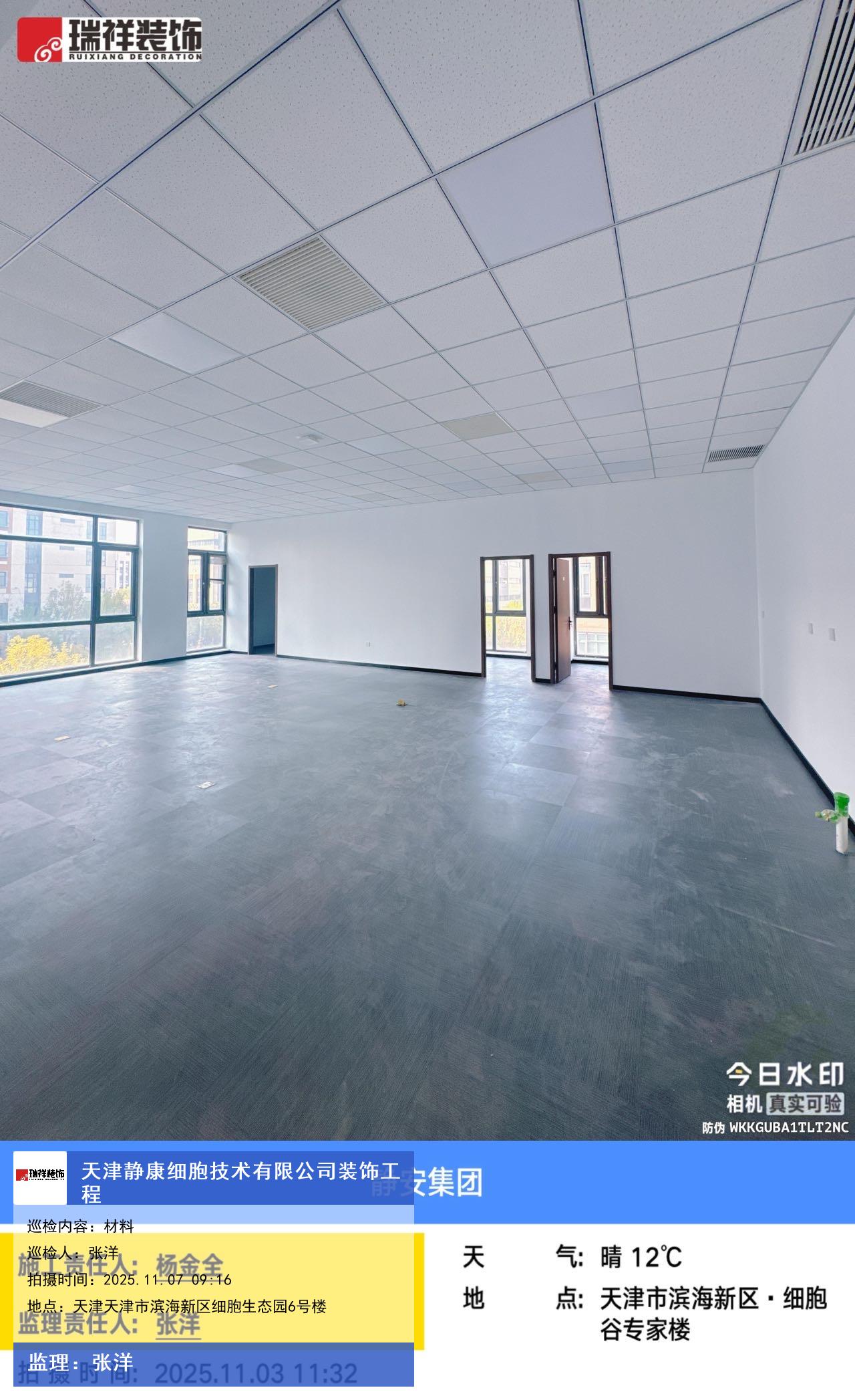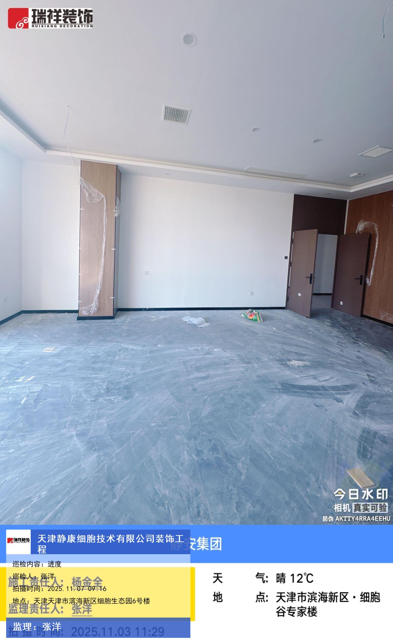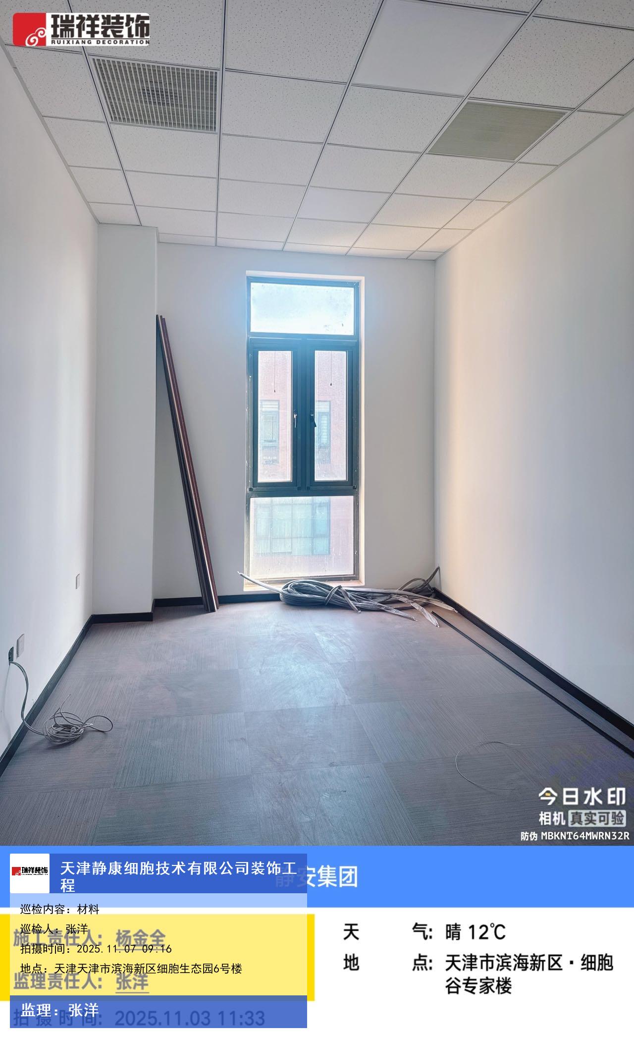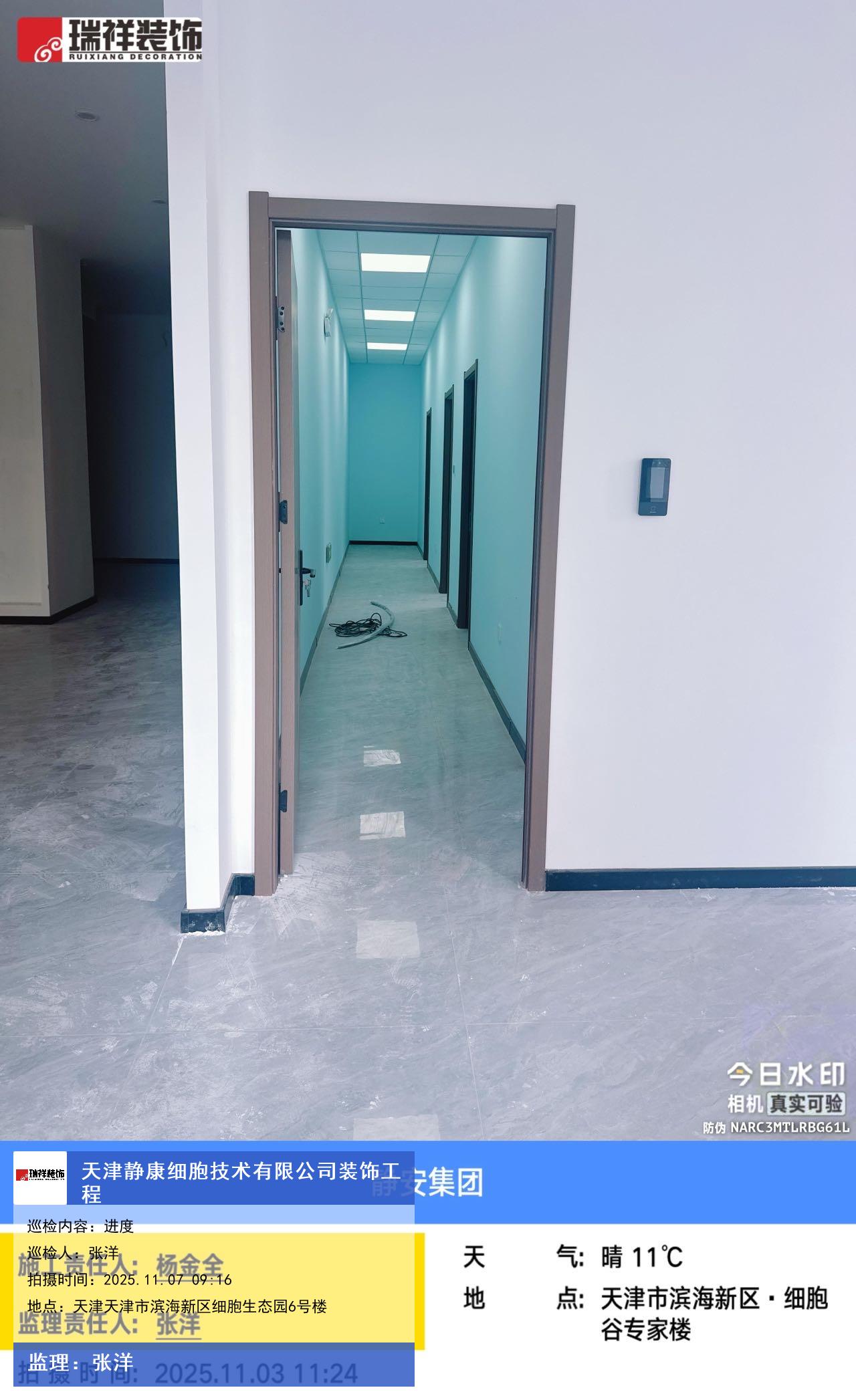 版权声明:本站所有文章除特别标注授权发布外,其他文字内容均为原创,享有著作权保护,未经许可不得以任何形式进行转载(包括且不限于:媒体、网站、公众号等)。本文链接 -> 天津静康细胞技术有限公司装修办公室2025年11月07日工程监理巡检