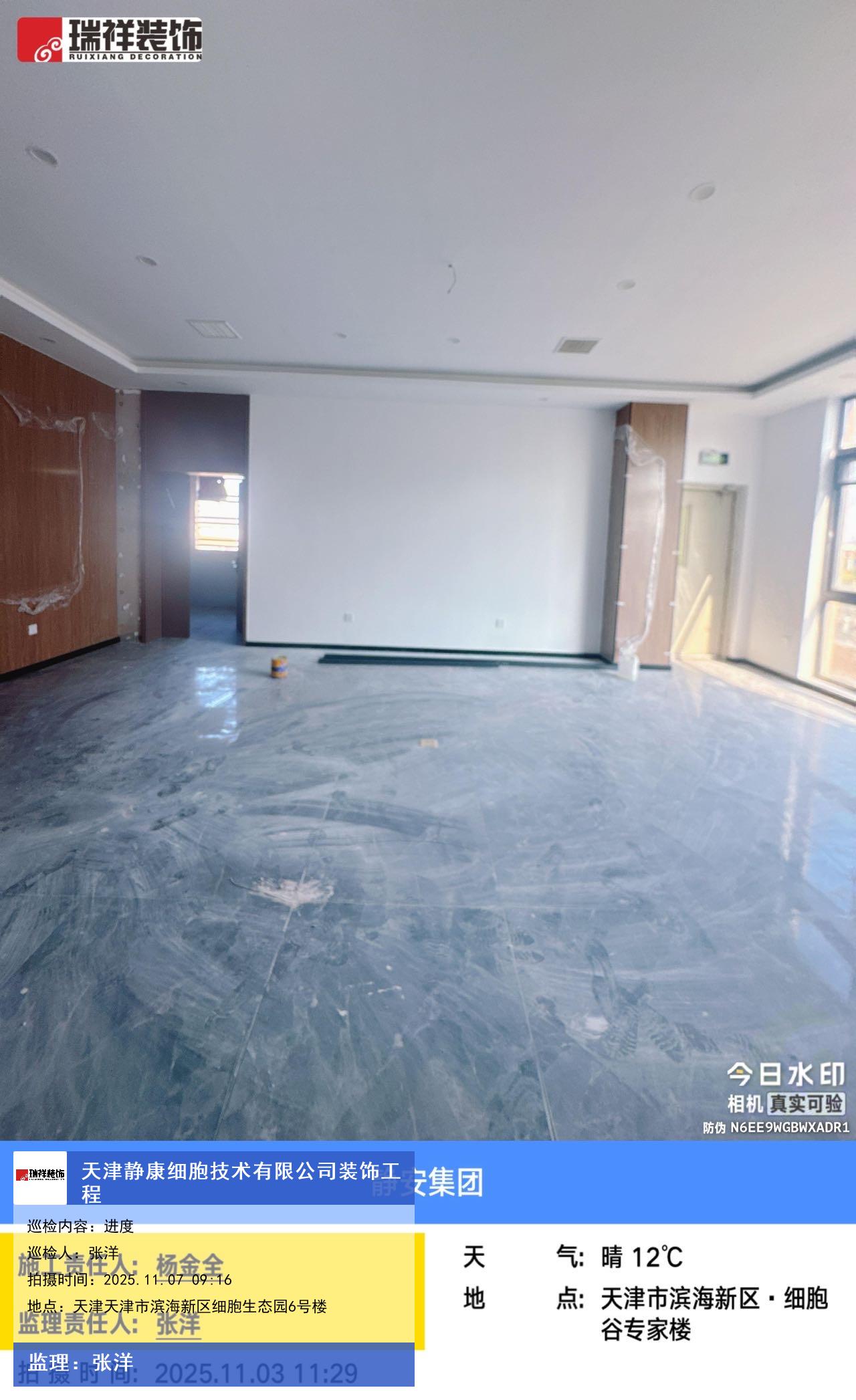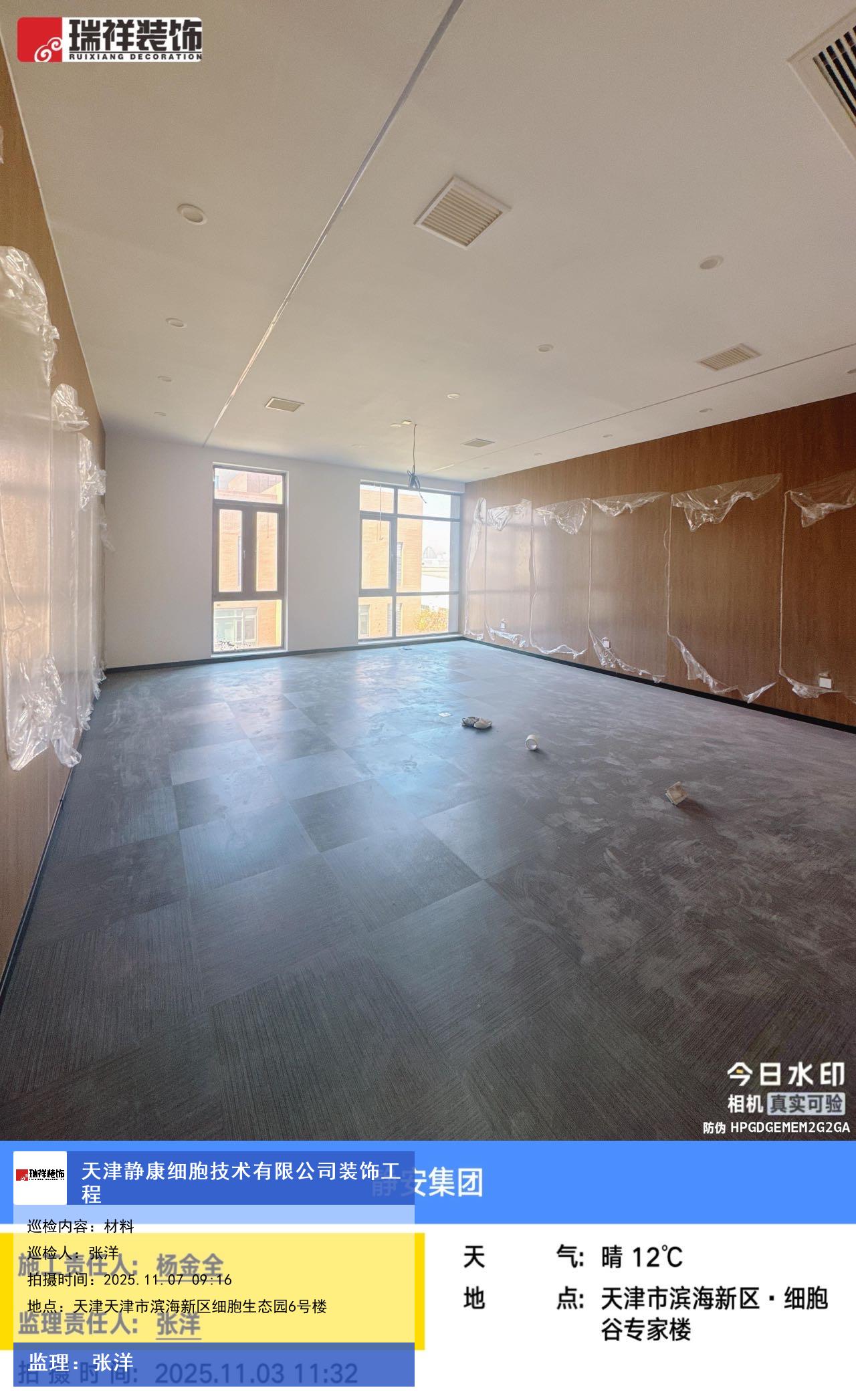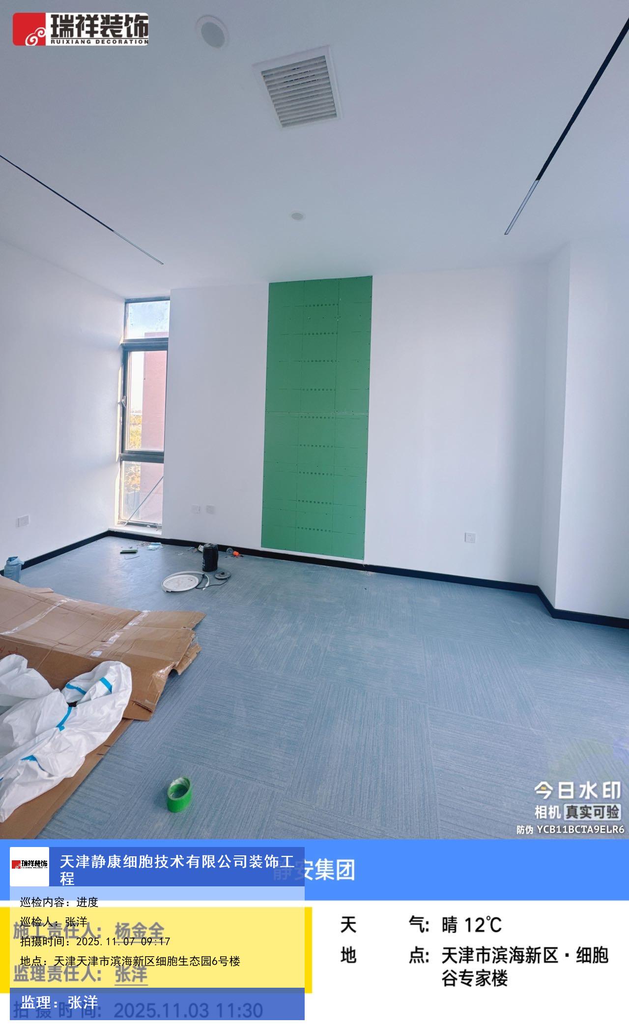 版权声明:本站所有文章除特别标注授权发布外,其他文字内容均为原创,享有著作权保护,未经许可不得以任何形式进行转载(包括且不限于:媒体、网站、公众号等)。本文链接 -> 天津静康细胞技术有限公司装修办公室2025年11月07日工程监理巡检