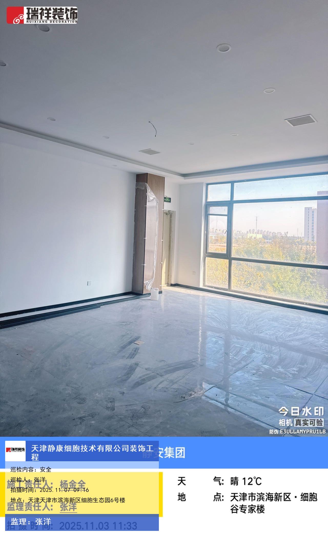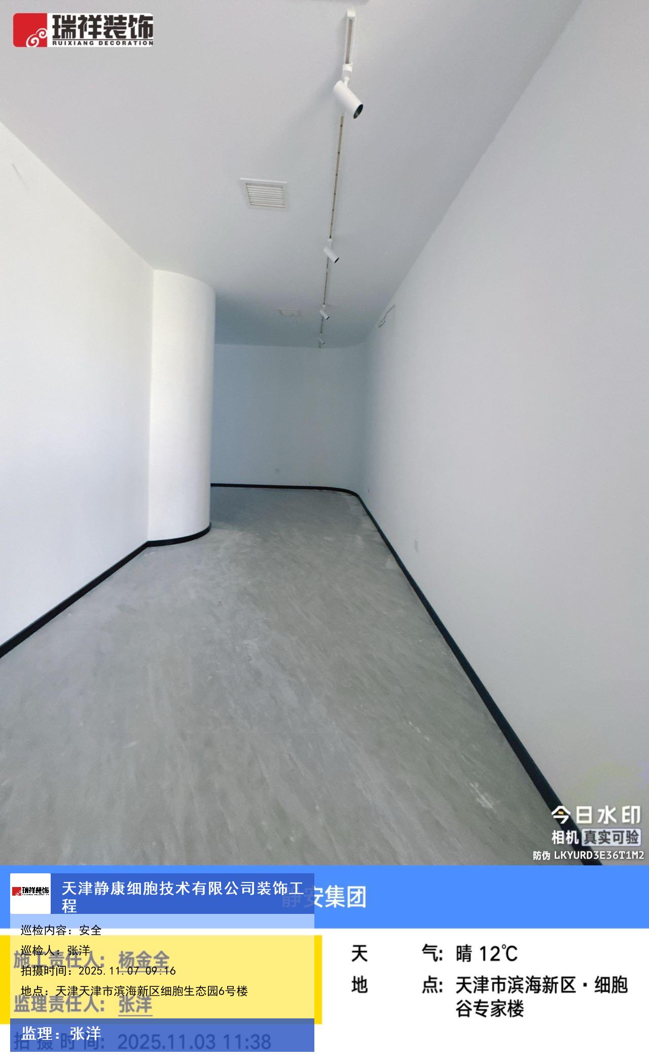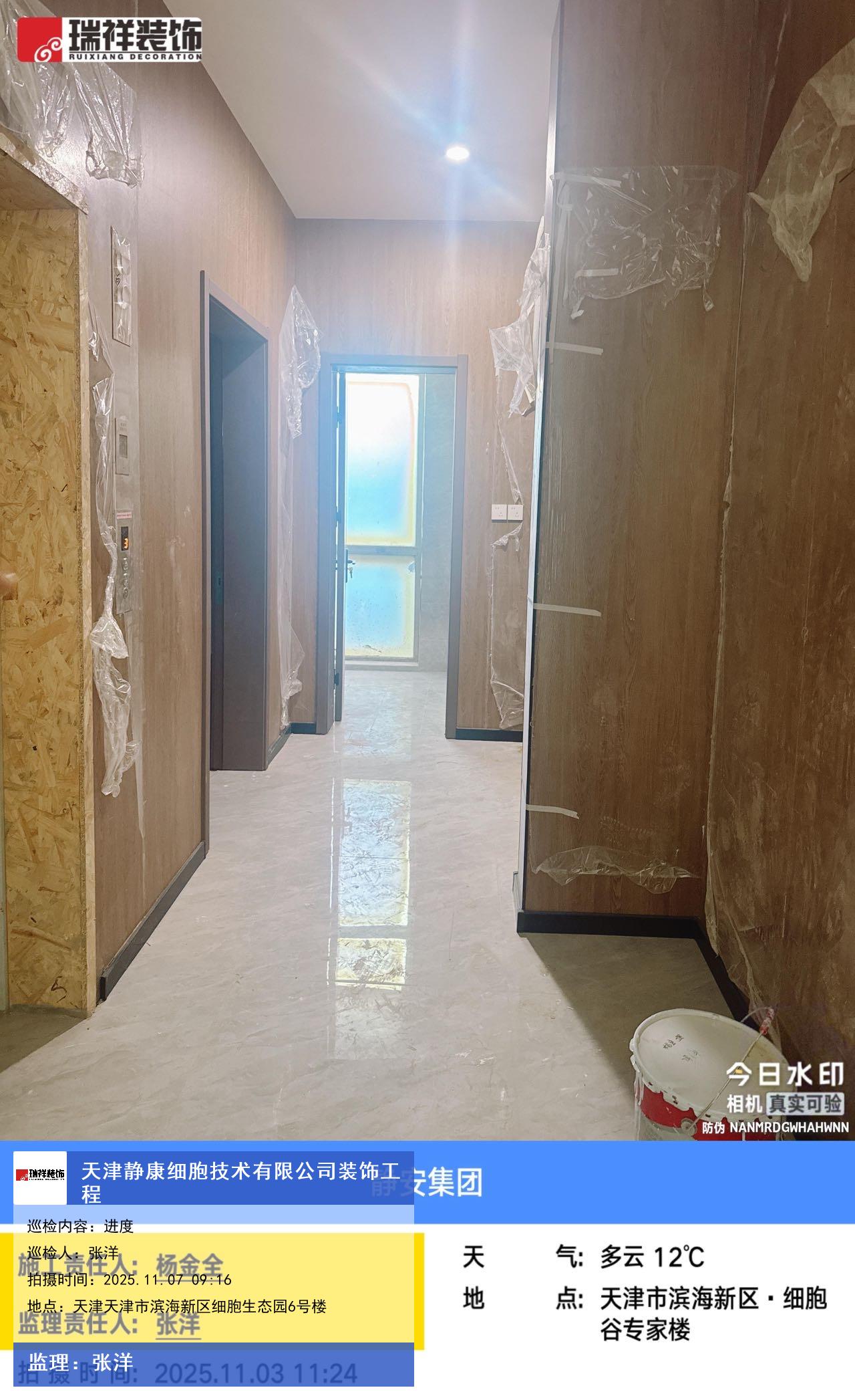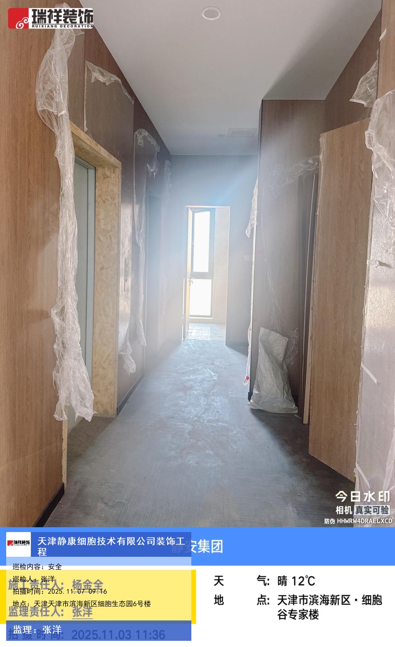 版权声明:本站所有文章除特别标注授权发布外,其他文字内容均为原创,享有著作权保护,未经许可不得以任何形式进行转载(包括且不限于:媒体、网站、公众号等)。本文链接 -> 天津静康细胞技术有限公司装修办公室2025年11月07日工程监理巡检