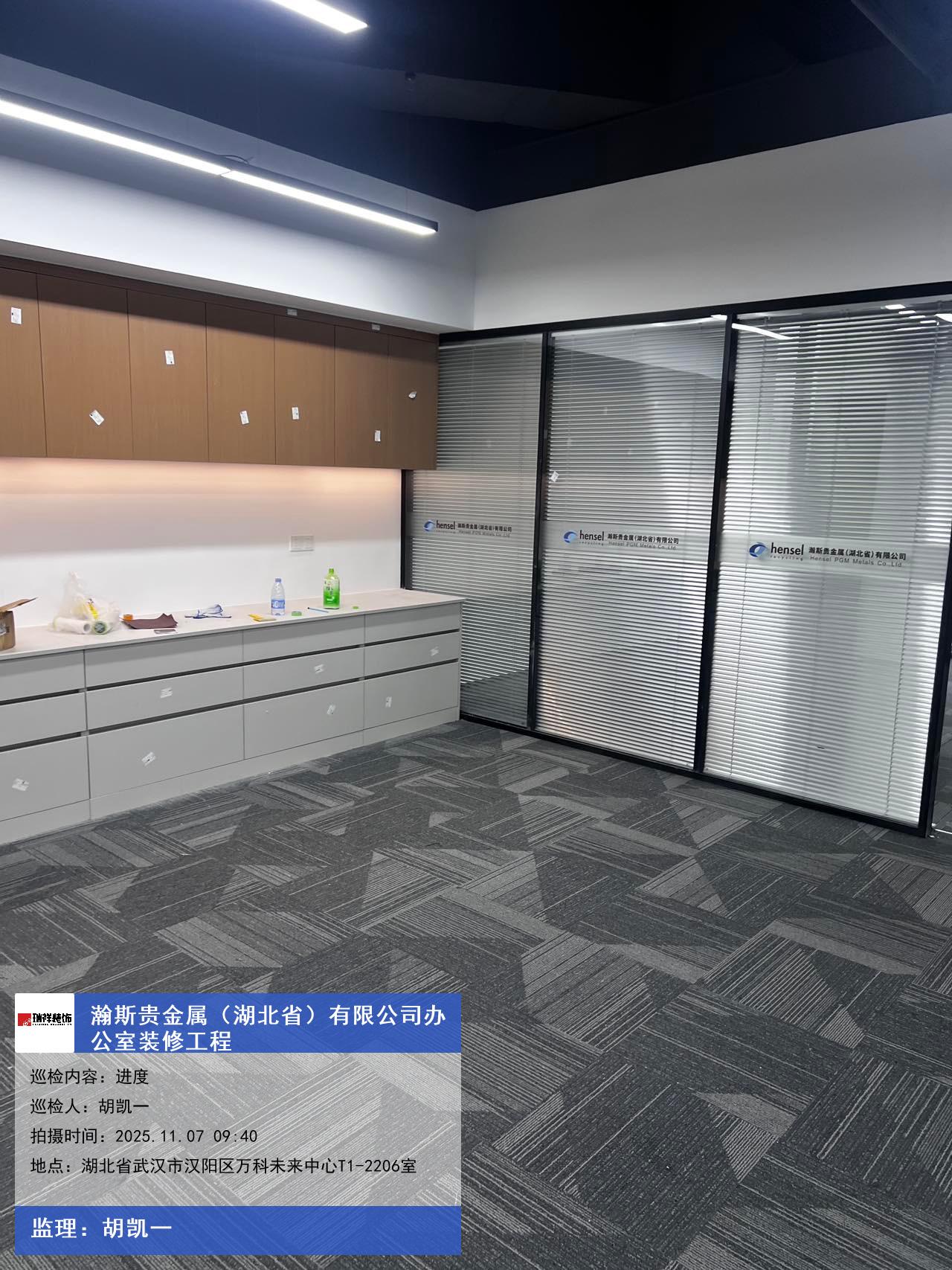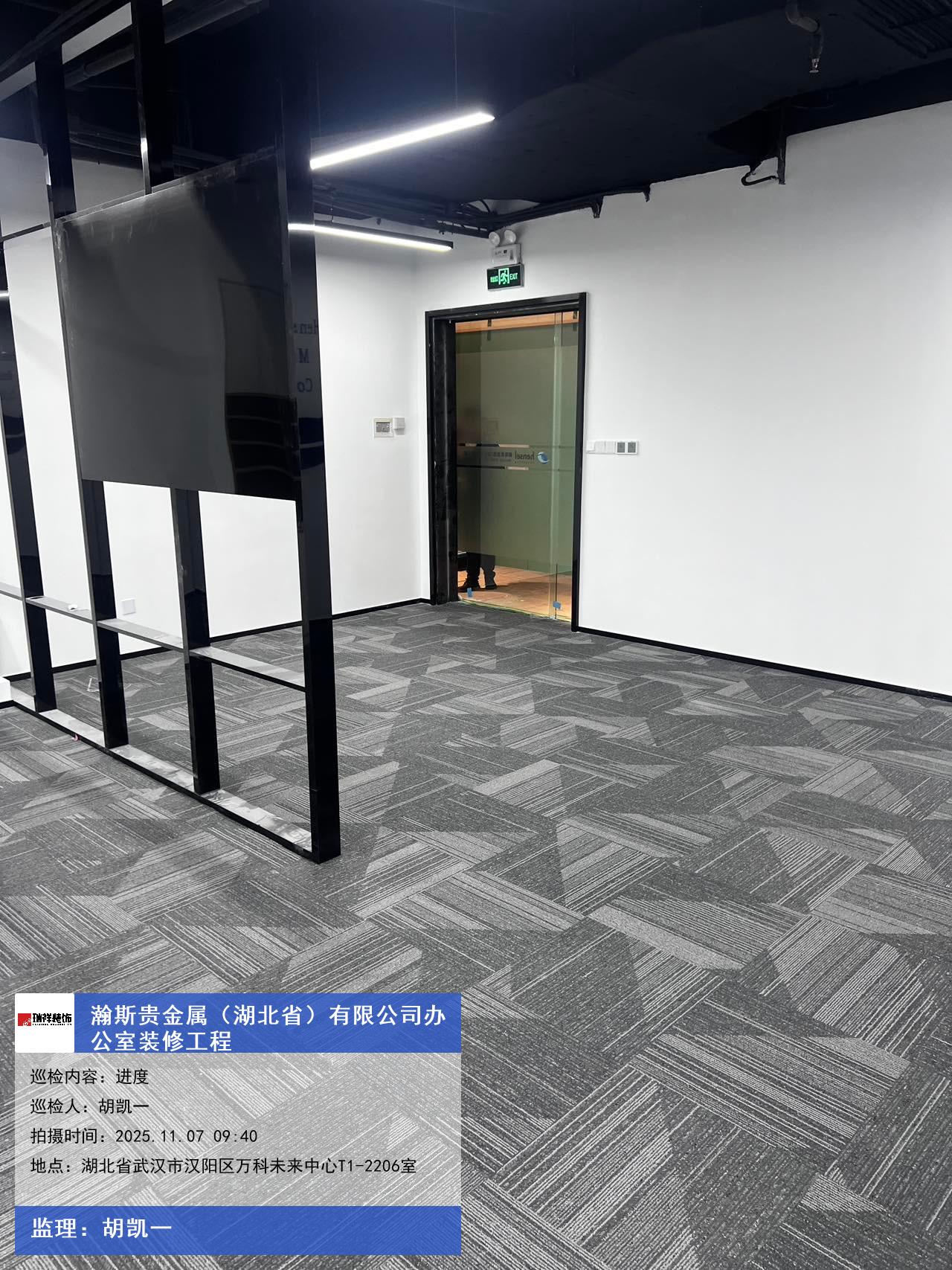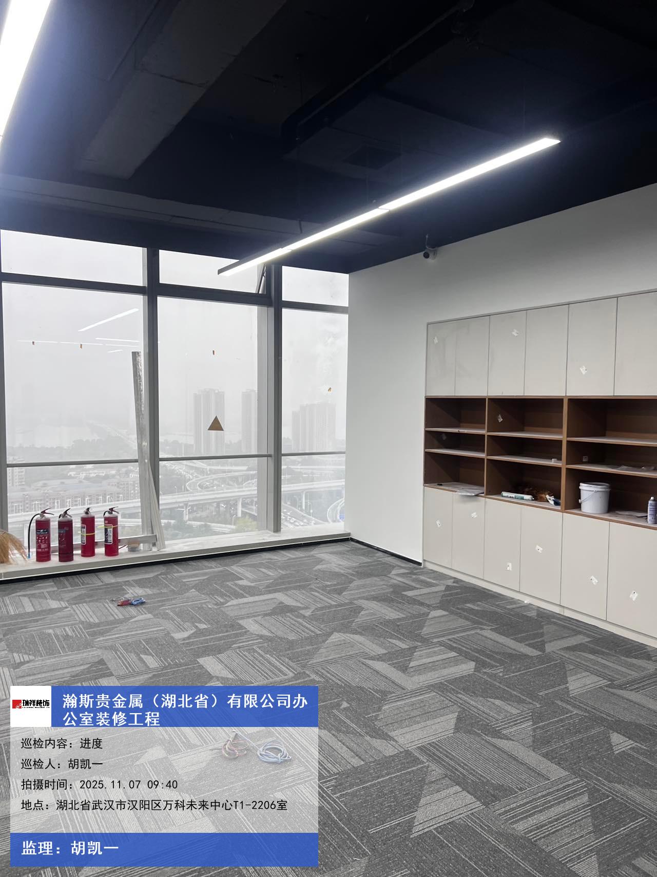 版权声明:本站所有文章除特别标注授权发布外,其他文字内容均为原创,享有著作权保护,未经许可不得以任何形式进行转载(包括且不限于:媒体、网站、公众号等)。本文链接 -> 瀚斯贵金属(湖北省)有限公司写字楼装修公司2025年11月07日工程监理巡检