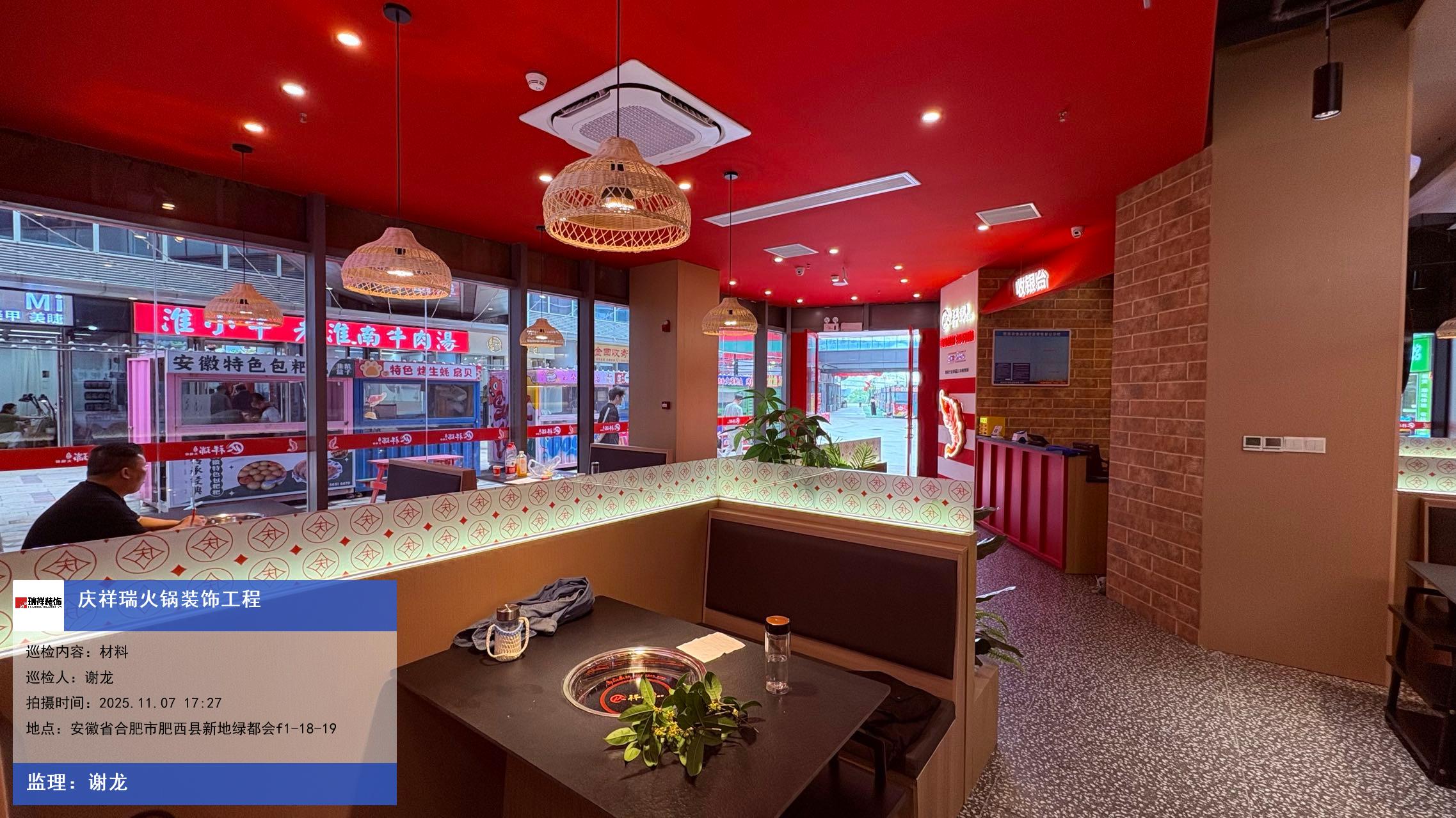 版权声明:本站所有文章除特别标注授权发布外,其他文字内容均为原创,享有著作权保护,未经许可不得以任何形式进行转载(包括且不限于:媒体、网站、公众号等)。本文链接 -> 庆祥瑞火锅婚宴酒楼装修2025年11月07日工程监理巡检