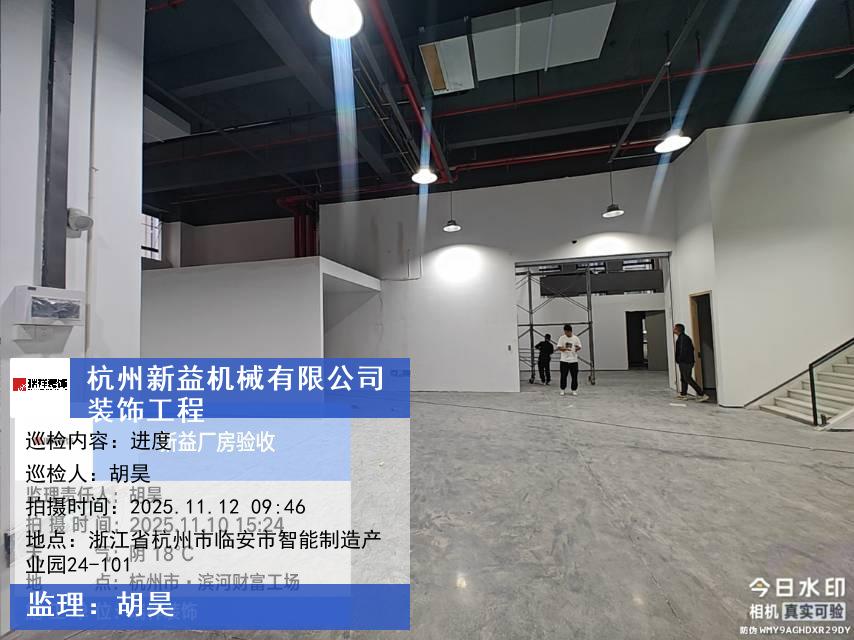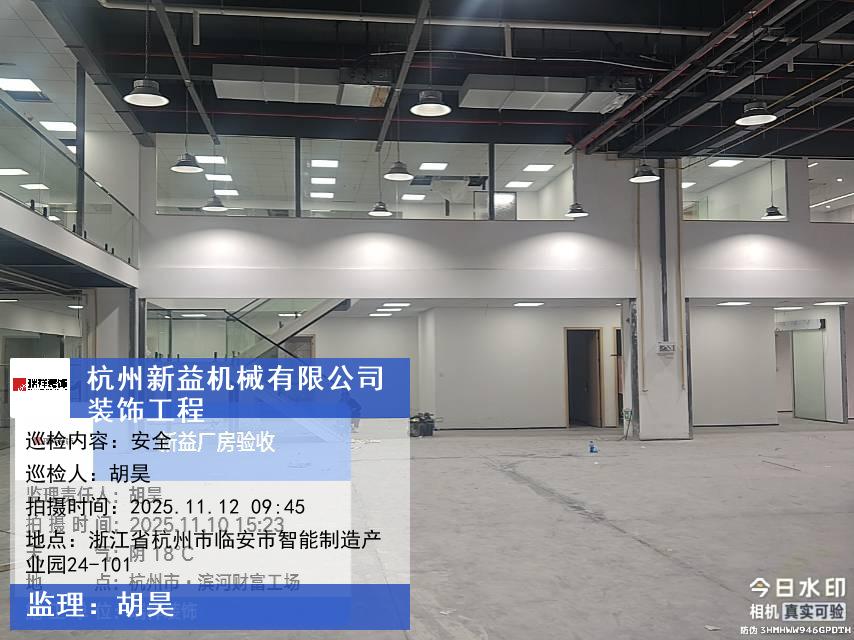 版权声明:本站所有文章除特别标注授权发布外,其他文字内容均为原创,享有著作权保护,未经许可不得以任何形式进行转载(包括且不限于:媒体、网站、公众号等)。本文链接 -> 杭州新益机械有限公司写字楼装修公司2025年11月12日工程监理巡检