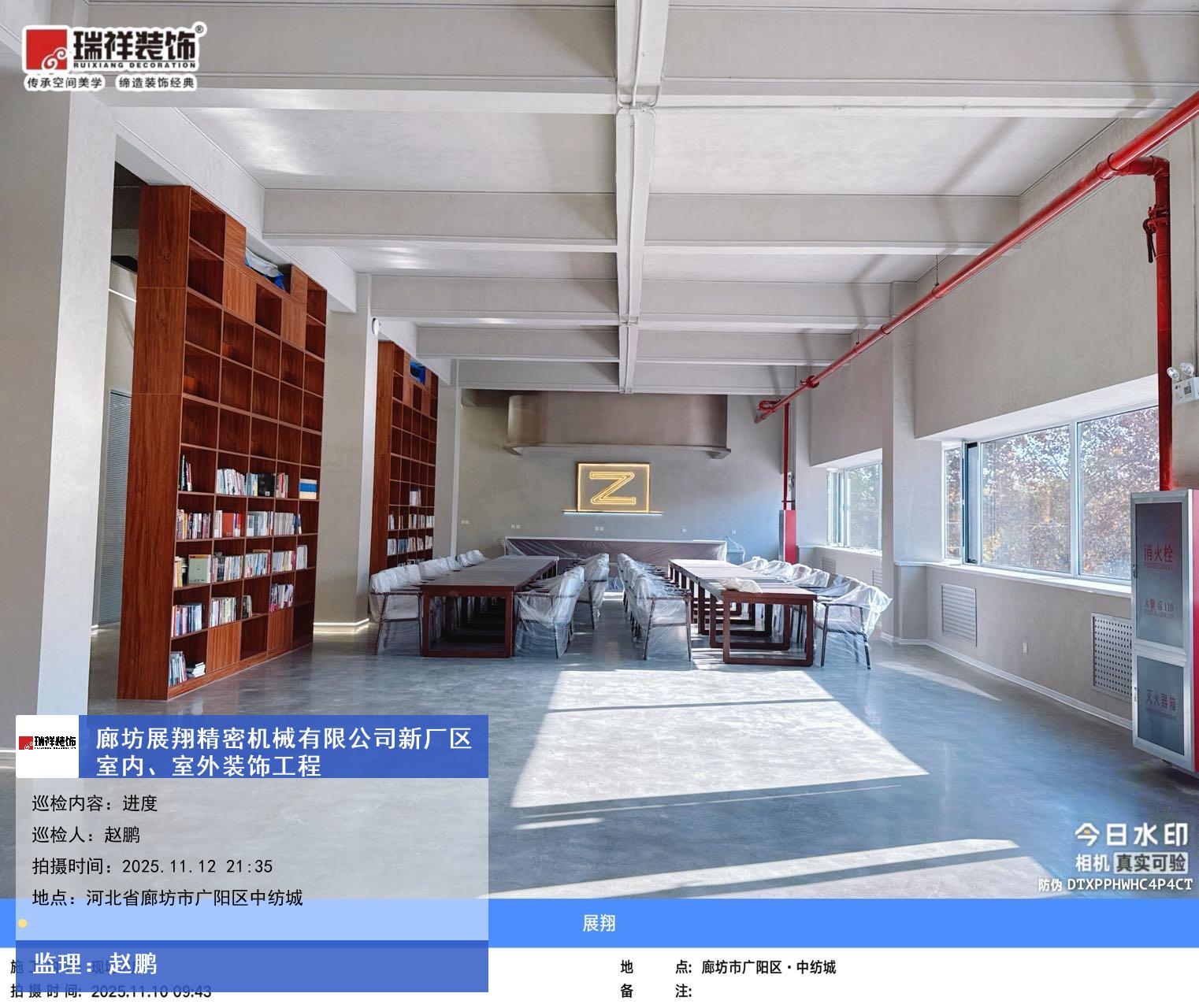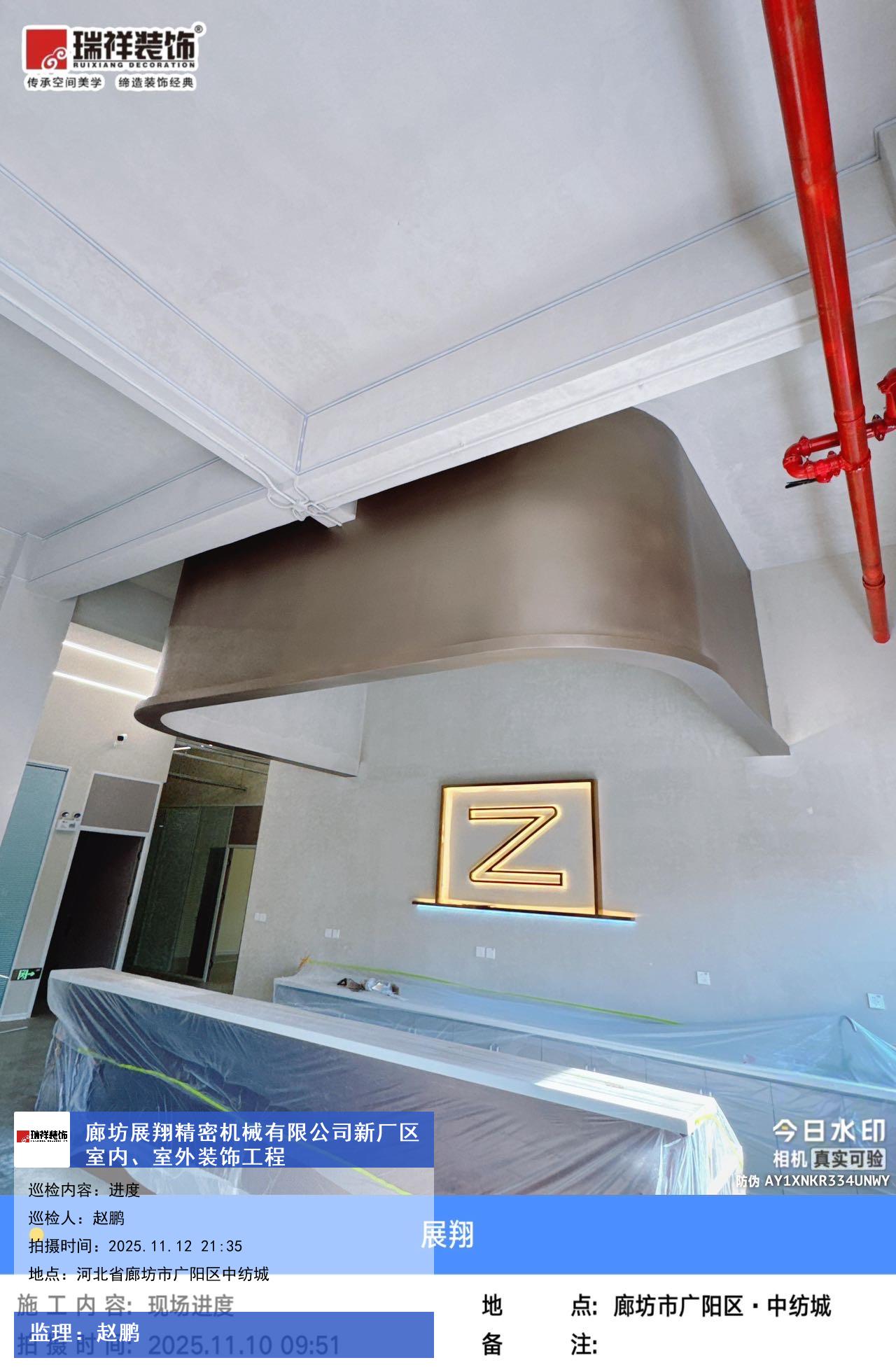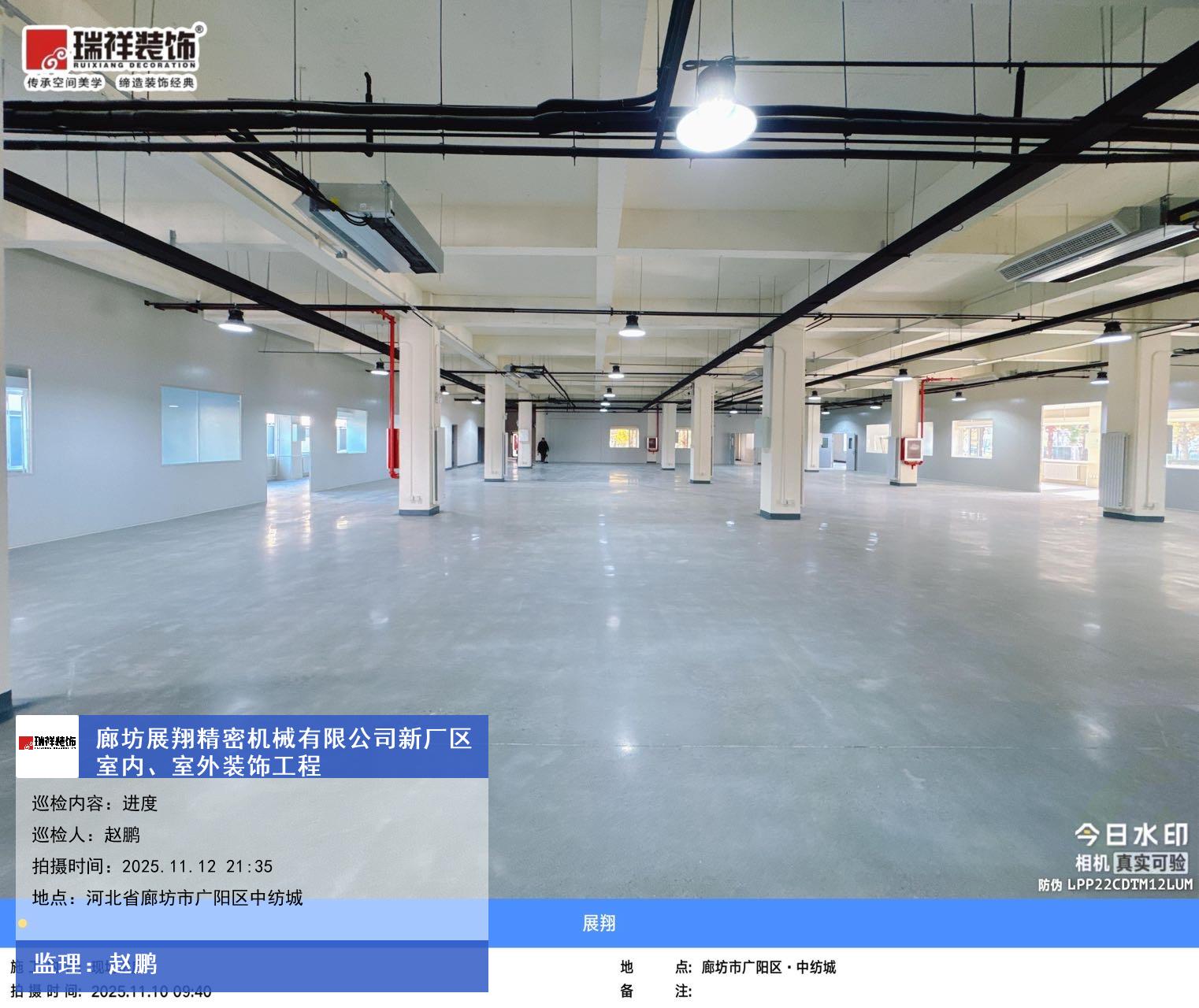 版权声明:本站所有文章除特别标注授权发布外,其他文字内容均为原创,享有著作权保护,未经许可不得以任何形式进行转载(包括且不限于:媒体、网站、公众号等)。本文链接 -> 廊坊展翔精密机械有限公司办公室装修装饰2025年11月12日工程监理巡检