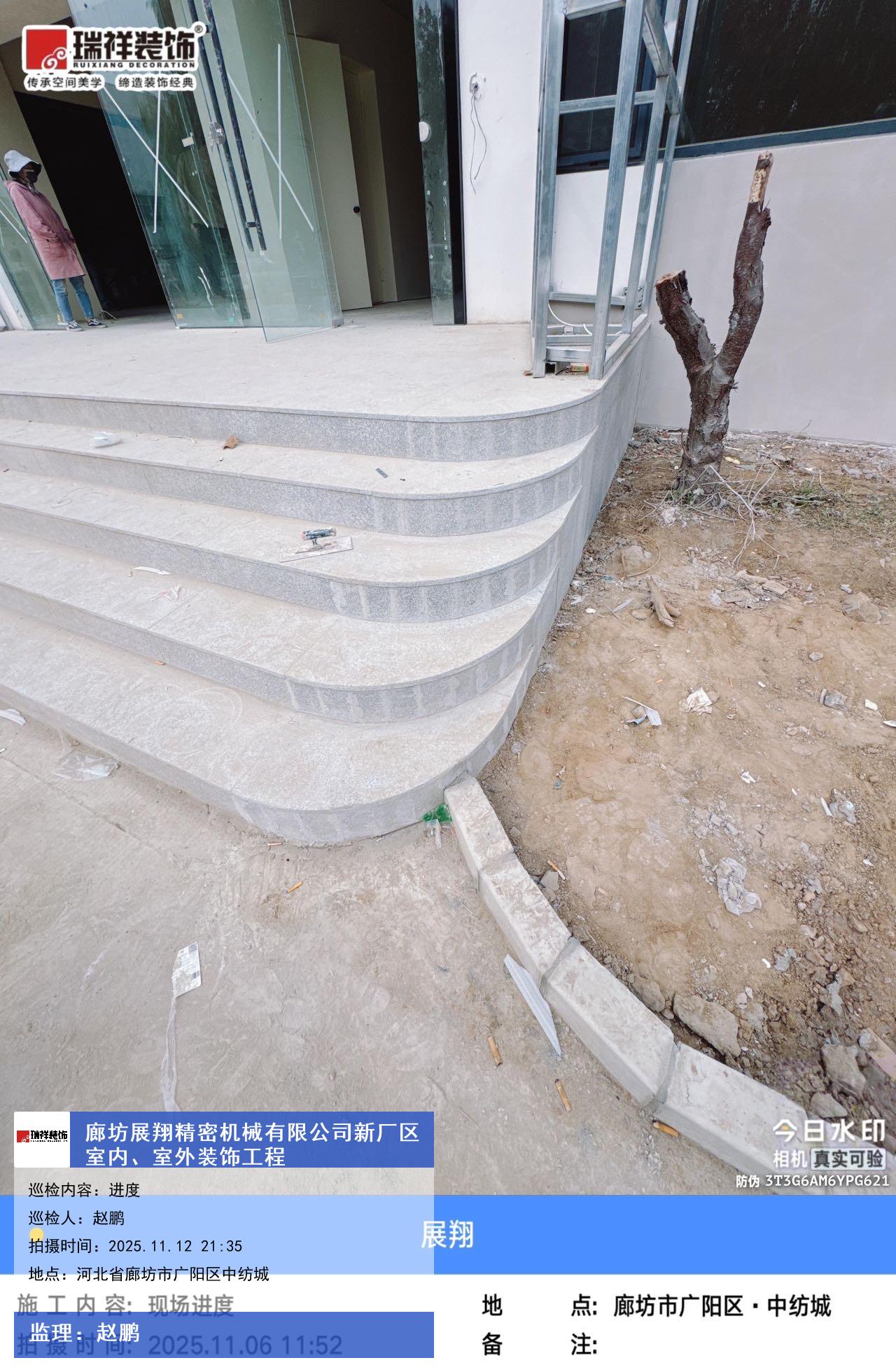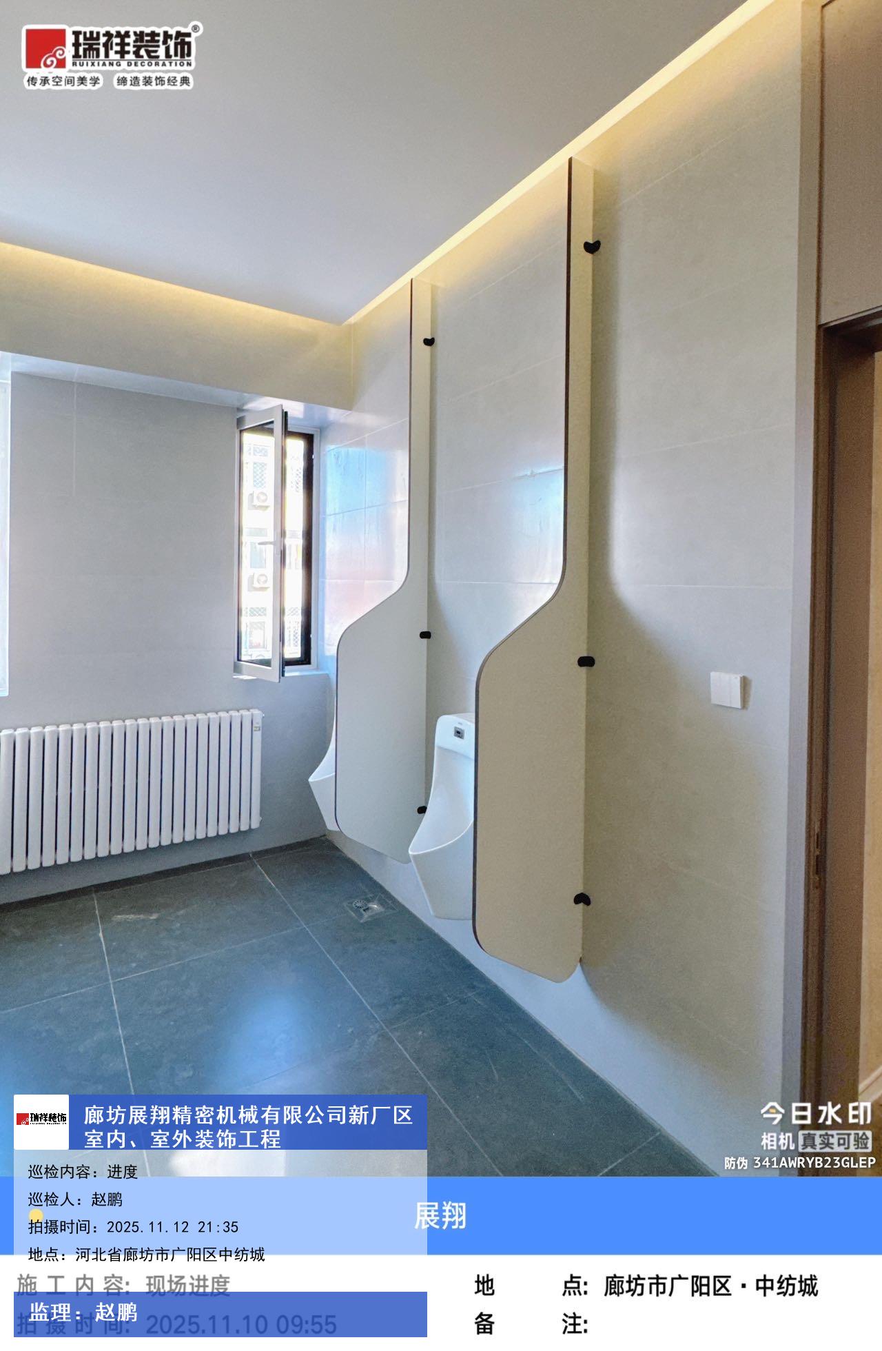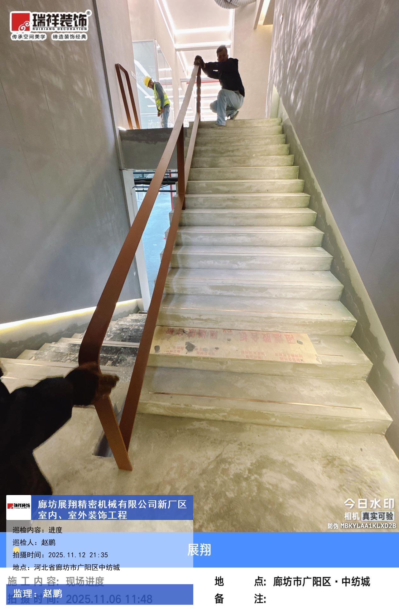 版权声明:本站所有文章除特别标注授权发布外,其他文字内容均为原创,享有著作权保护,未经许可不得以任何形式进行转载(包括且不限于:媒体、网站、公众号等)。本文链接 -> 廊坊展翔精密机械有限公司办公室装修装饰2025年11月12日工程监理巡检