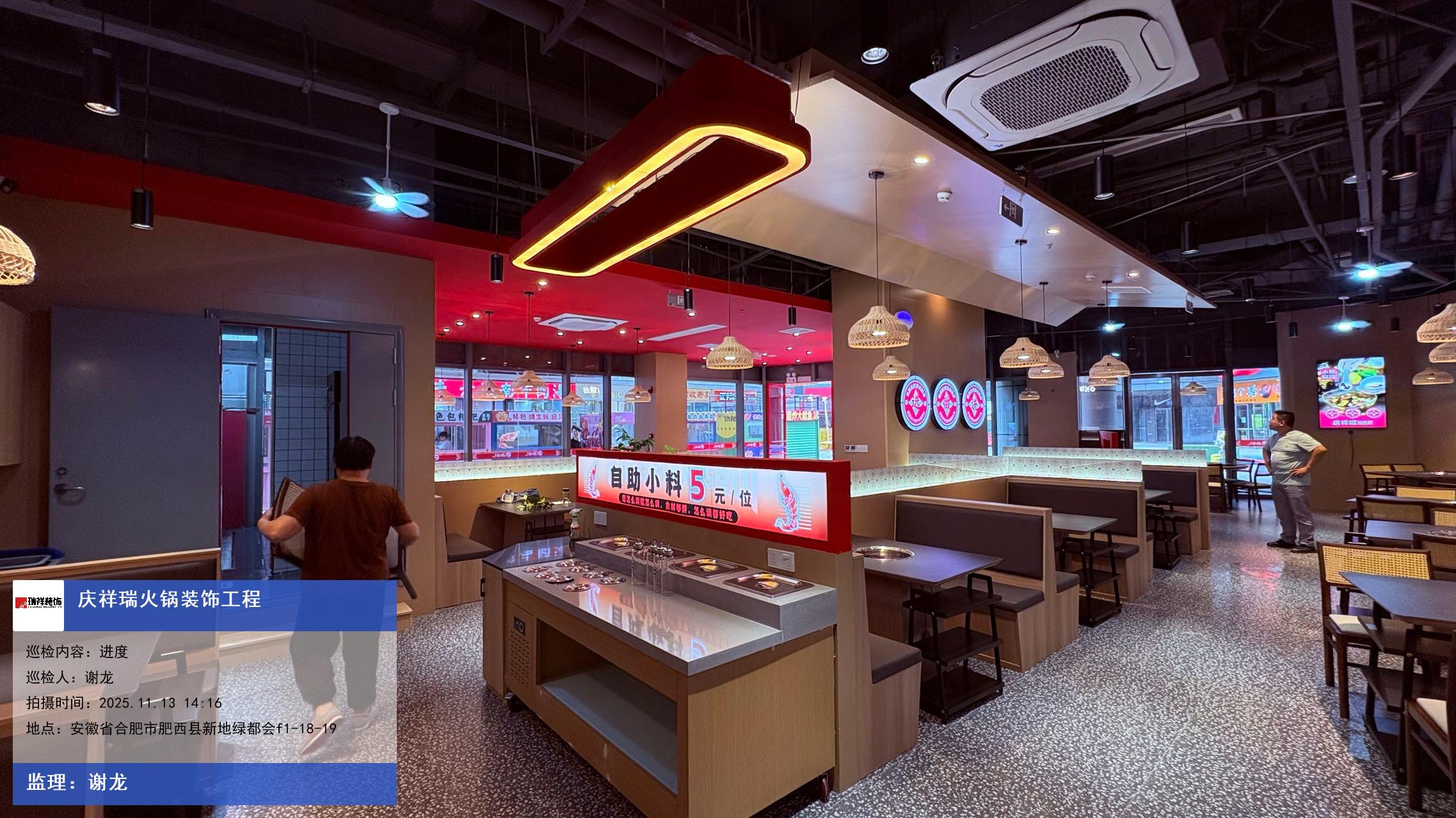 版权声明:本站所有文章除特别标注授权发布外,其他文字内容均为原创,享有著作权保护,未经许可不得以任何形式进行转载(包括且不限于:媒体、网站、公众号等)。本文链接 -> 庆祥瑞火锅酒楼装修设计2025年11月13日工程监理巡检