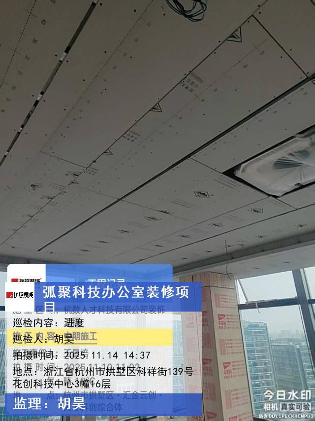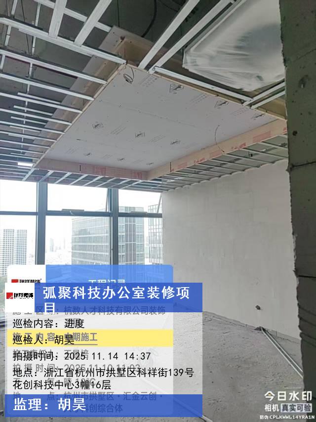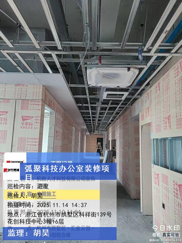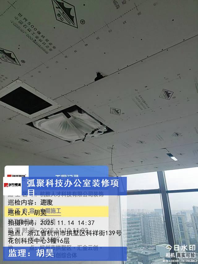 版权声明:本站所有文章除特别标注授权发布外,其他文字内容均为原创,享有著作权保护,未经许可不得以任何形式进行转载(包括且不限于:媒体、网站、公众号等)。本文链接 -> 杭州弧聚科技有限公司办公室空间设计2025年11月14日工程监理巡检