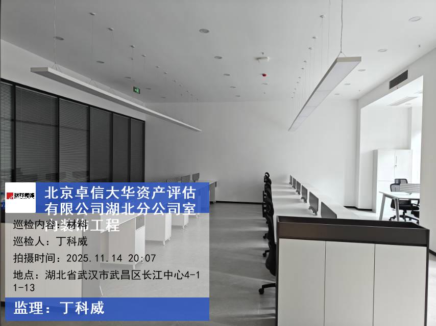 版权声明:本站所有文章除特别标注授权发布外,其他文字内容均为原创,享有著作权保护,未经许可不得以任何形式进行转载(包括且不限于:媒体、网站、公众号等)。本文链接 -> 北京卓信大华资产评估有限公司湖北分公司办公室装修设计2025年11月14日工程监理巡检
