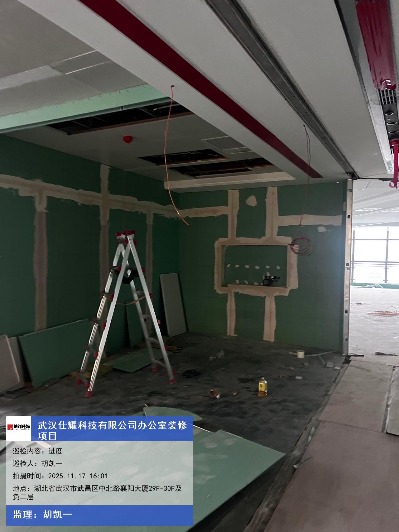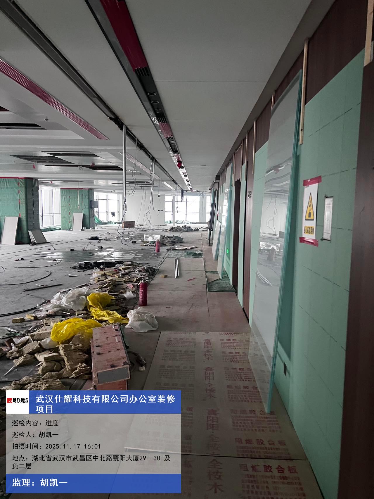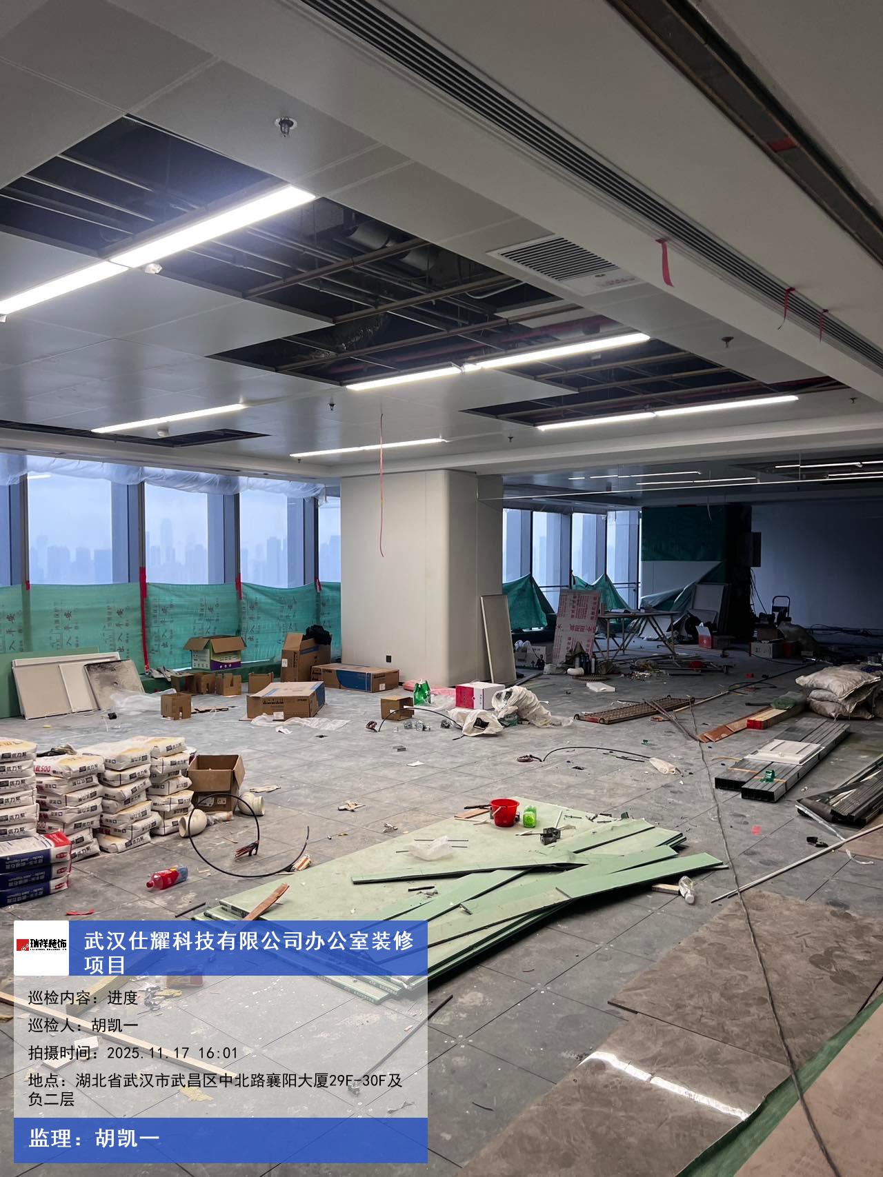 版权声明:本站所有文章除特别标注授权发布外,其他文字内容均为原创,享有著作权保护,未经许可不得以任何形式进行转载(包括且不限于:媒体、网站、公众号等)。本文链接 -> 武汉仕耀科技有限公司 写字楼装修2025年11月17日工程监理巡检
