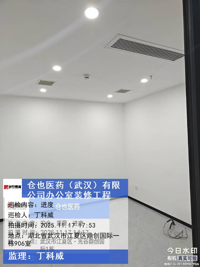 版权声明:本站所有文章除特别标注授权发布外,其他文字内容均为原创,享有著作权保护,未经许可不得以任何形式进行转载(包括且不限于:媒体、网站、公众号等)。本文链接 -> 仓也医药(武汉)有限公司银行装修设计2025年11月17日工程监理巡检