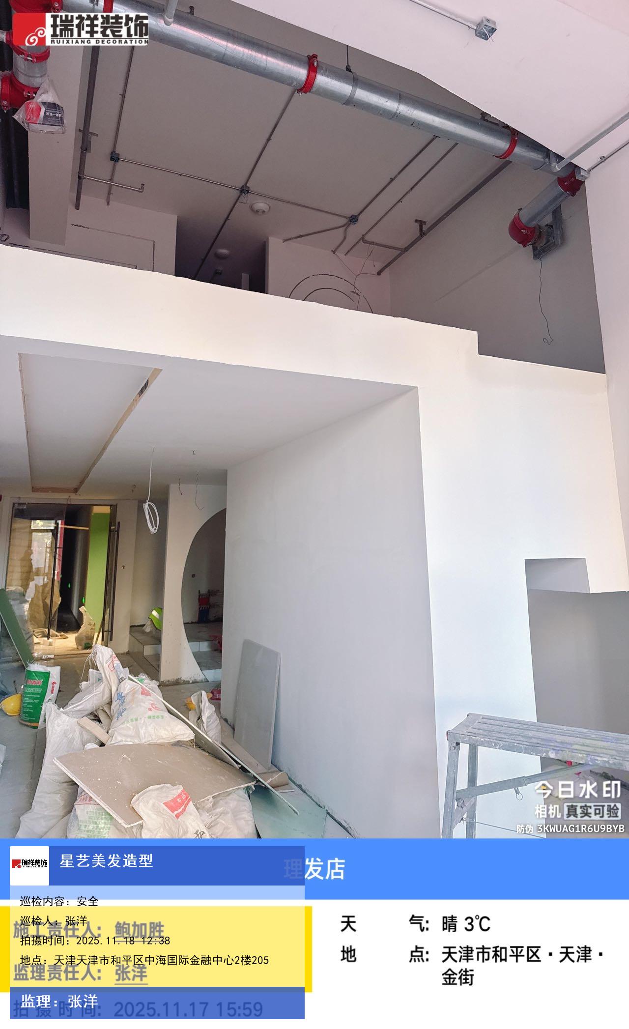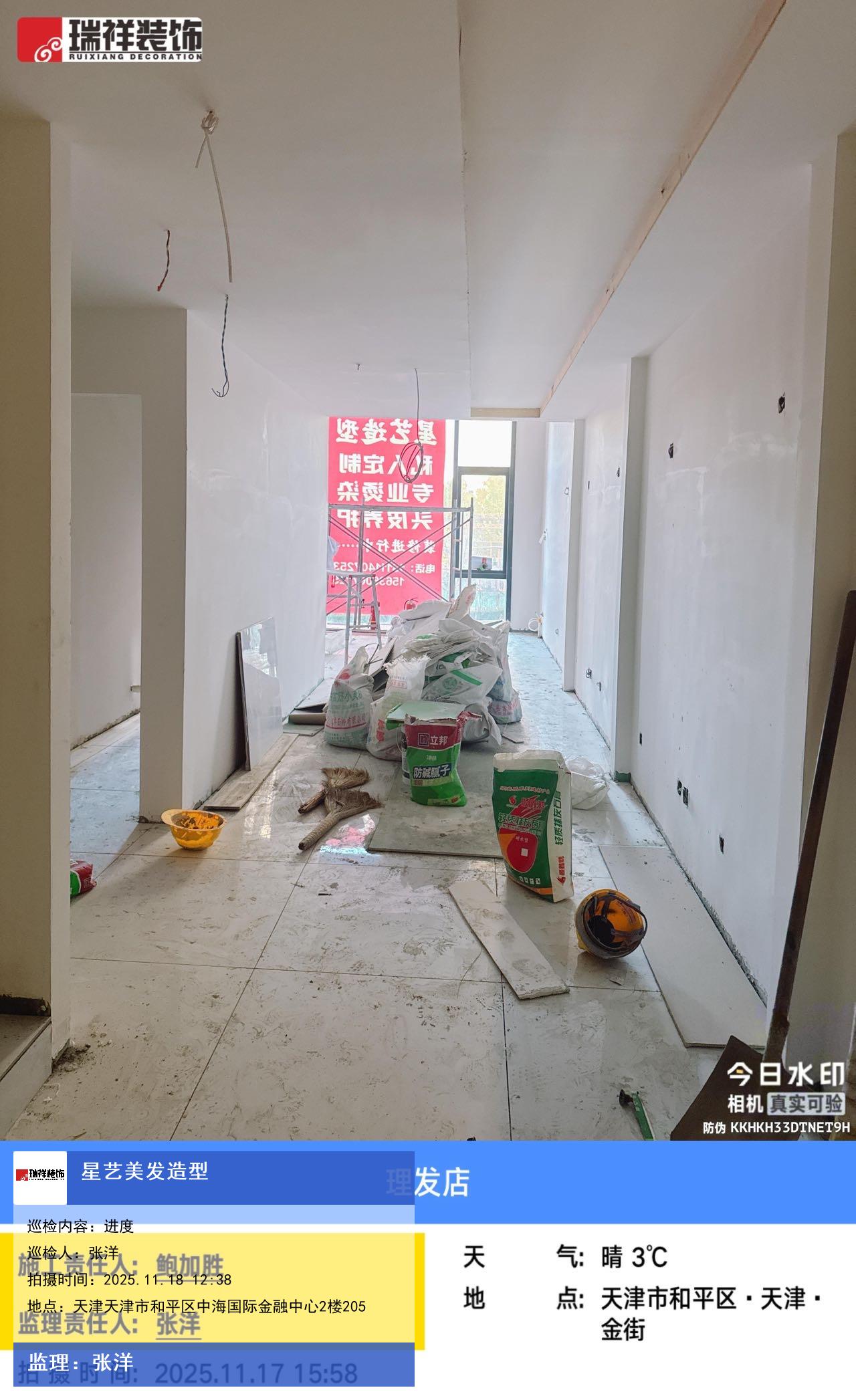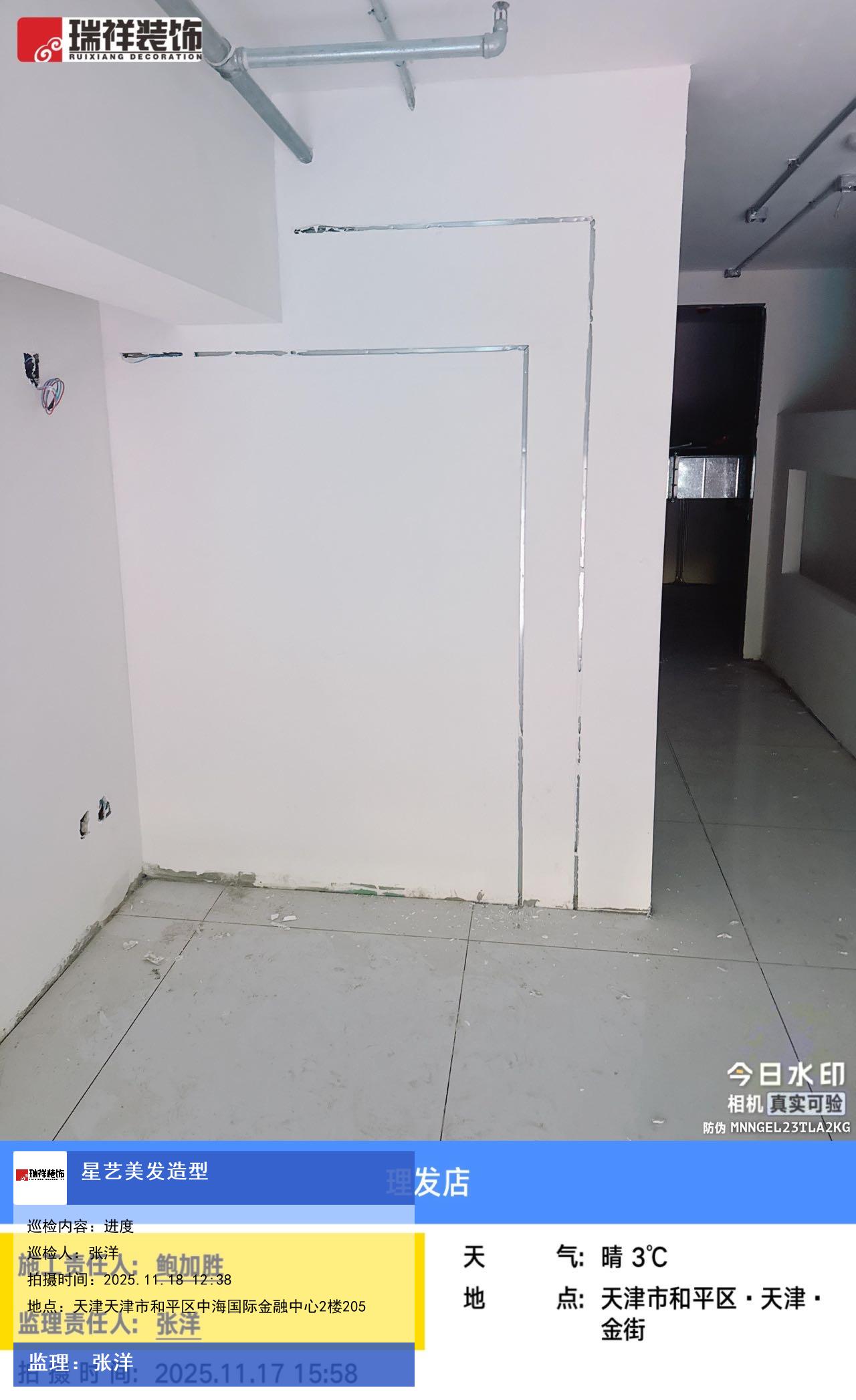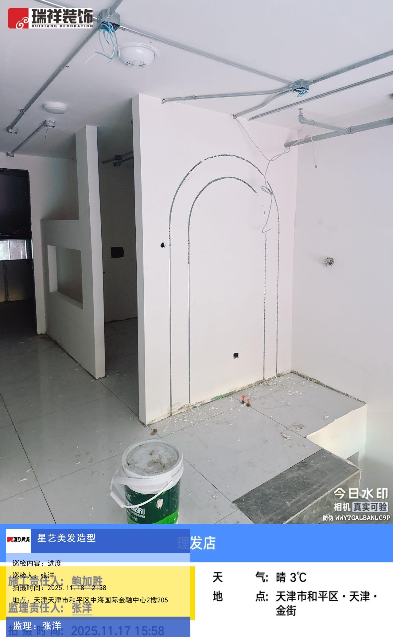 版权声明:本站所有文章除特别标注授权发布外,其他文字内容均为原创,享有著作权保护,未经许可不得以任何形式进行转载(包括且不限于:媒体、网站、公众号等)。本文链接 -> 星艺美发造型店面室内设计2025年11月18日工程监理巡检