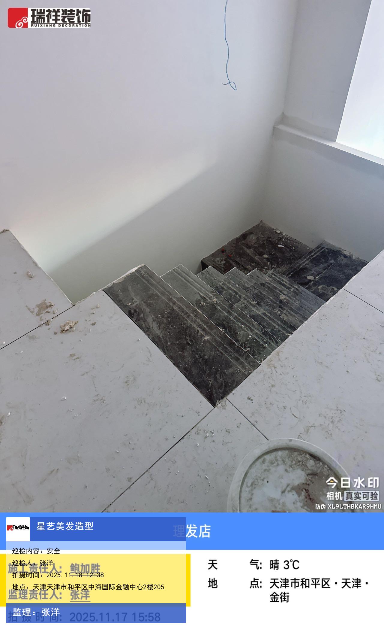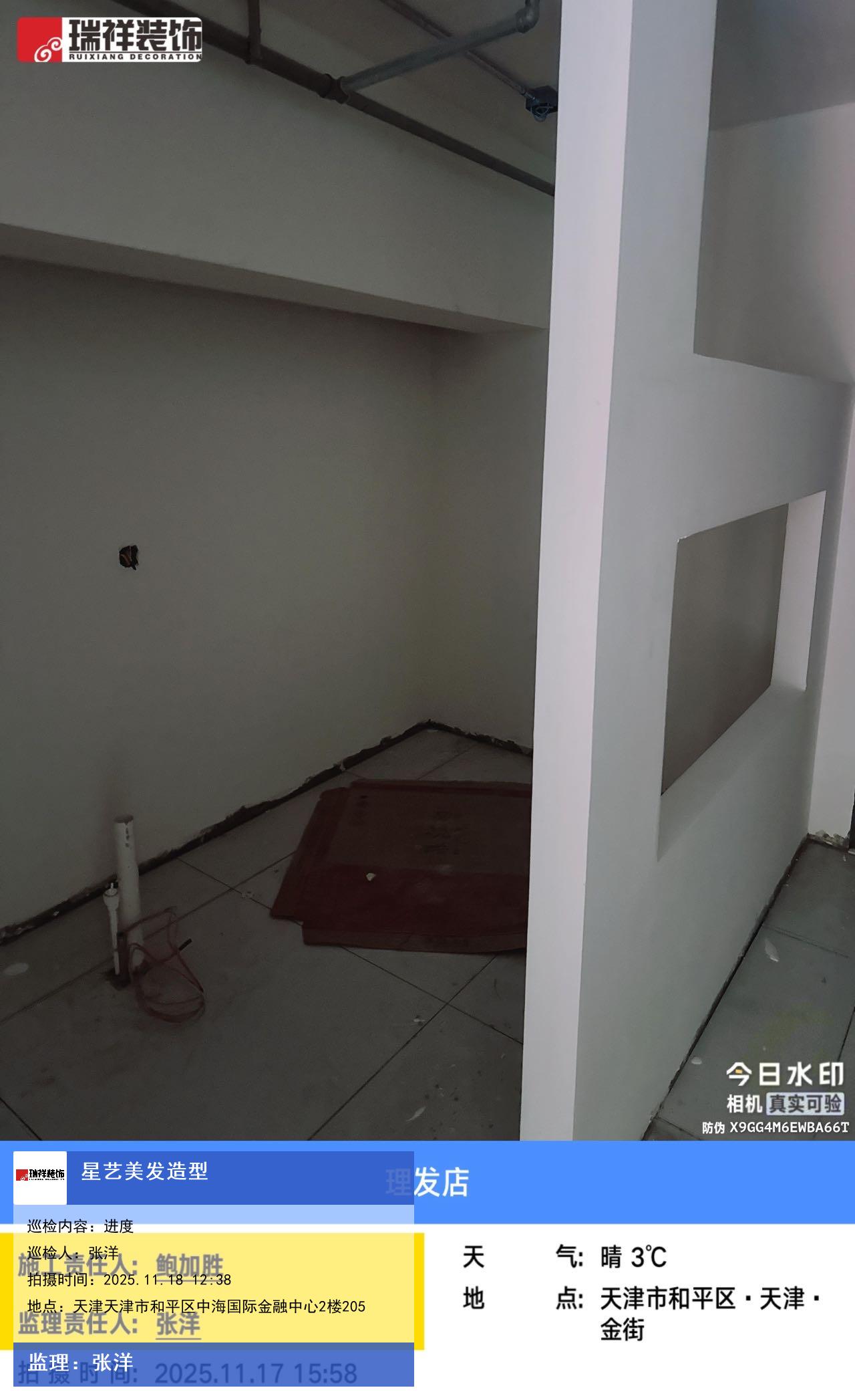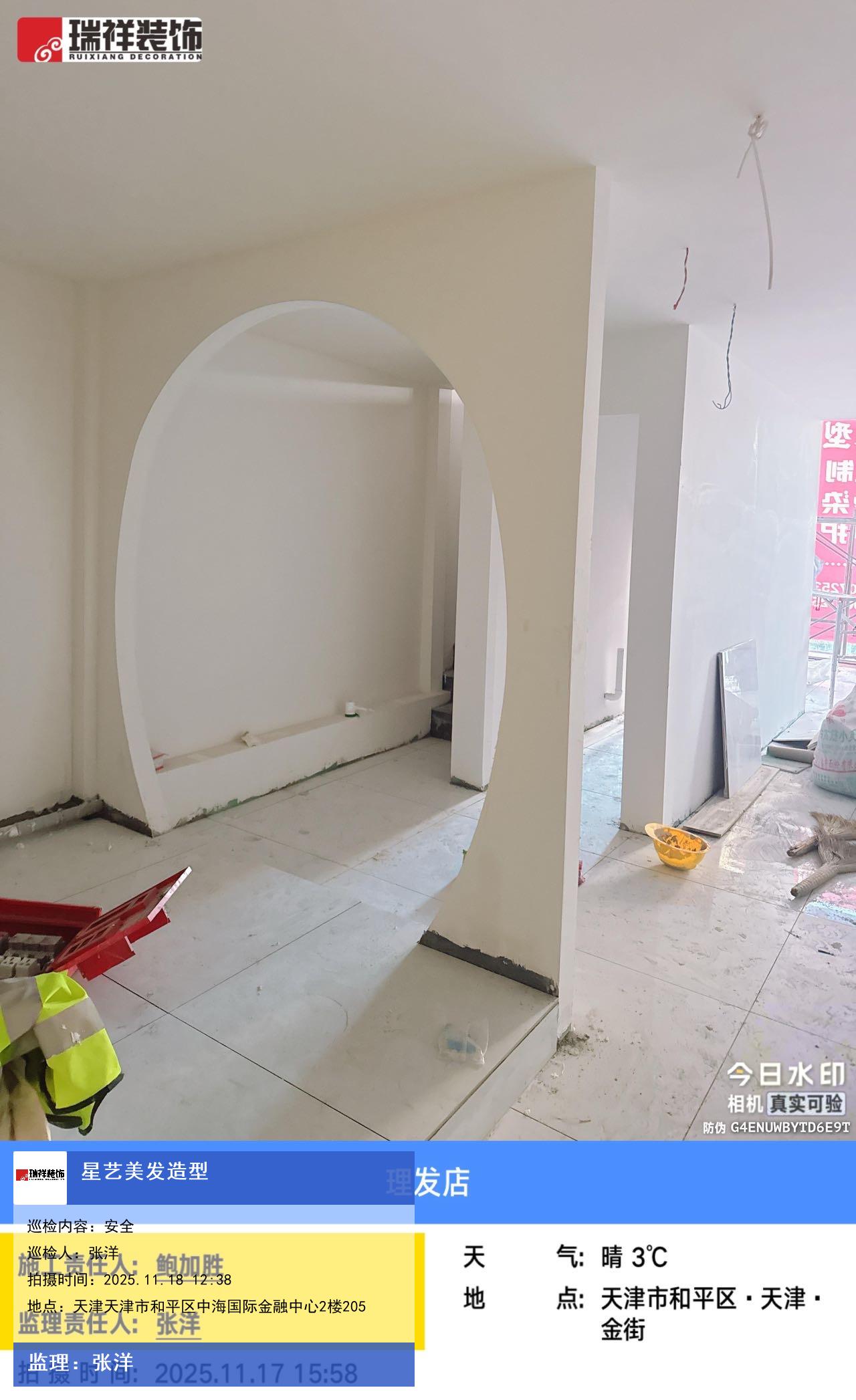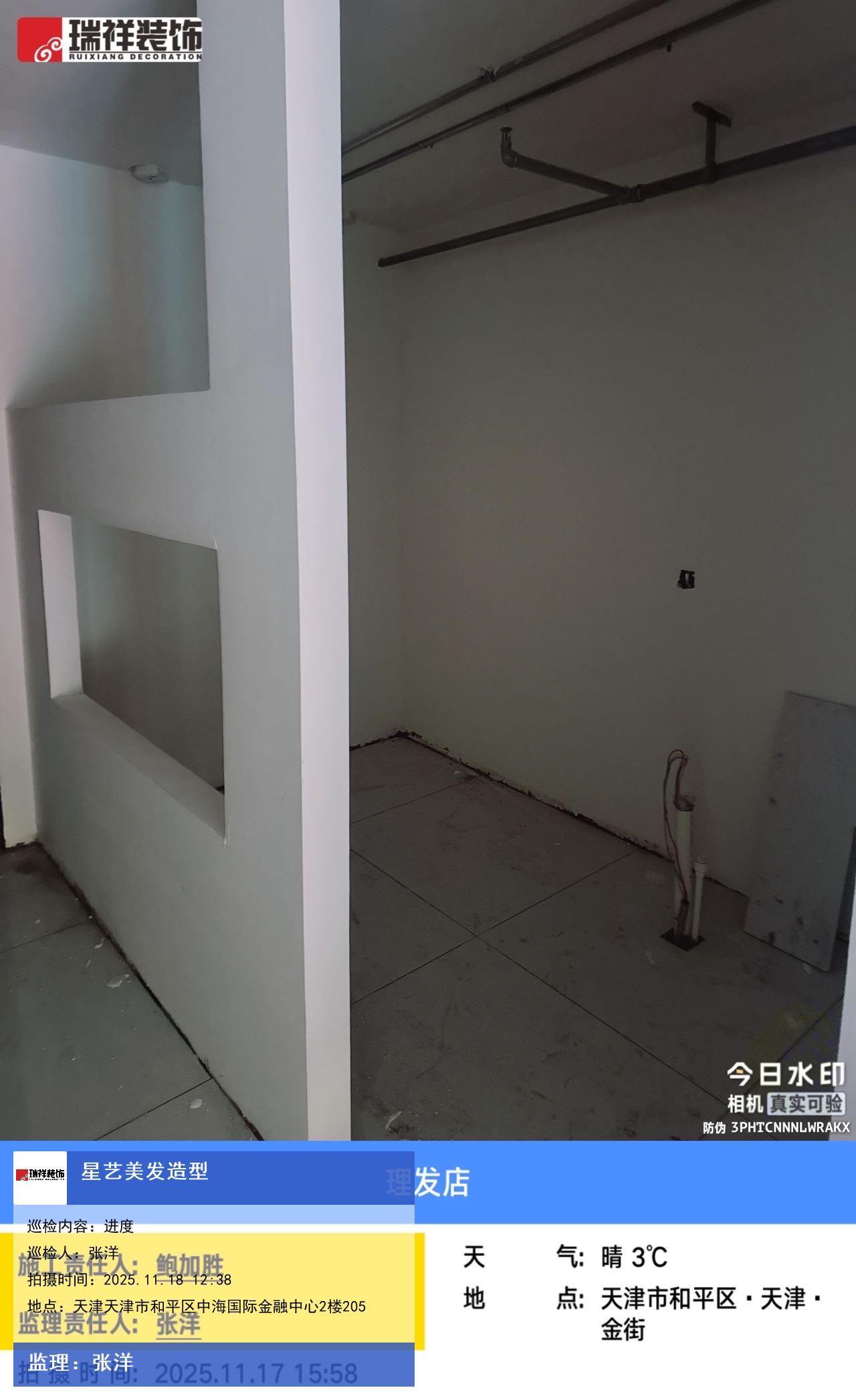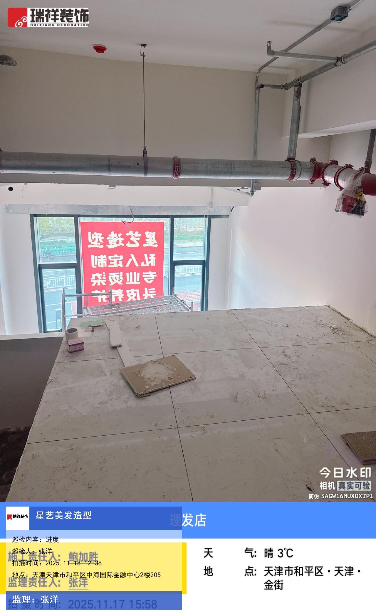 版权声明:本站所有文章除特别标注授权发布外,其他文字内容均为原创,享有著作权保护,未经许可不得以任何形式进行转载(包括且不限于:媒体、网站、公众号等)。本文链接 -> 星艺美发造型店面室内设计2025年11月18日工程监理巡检