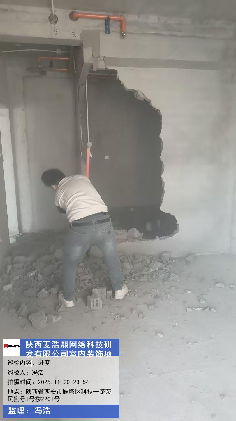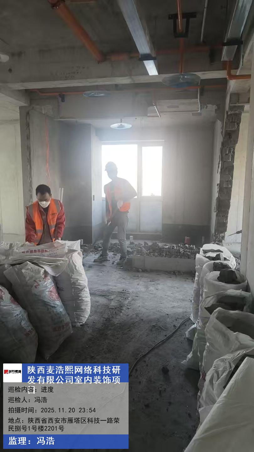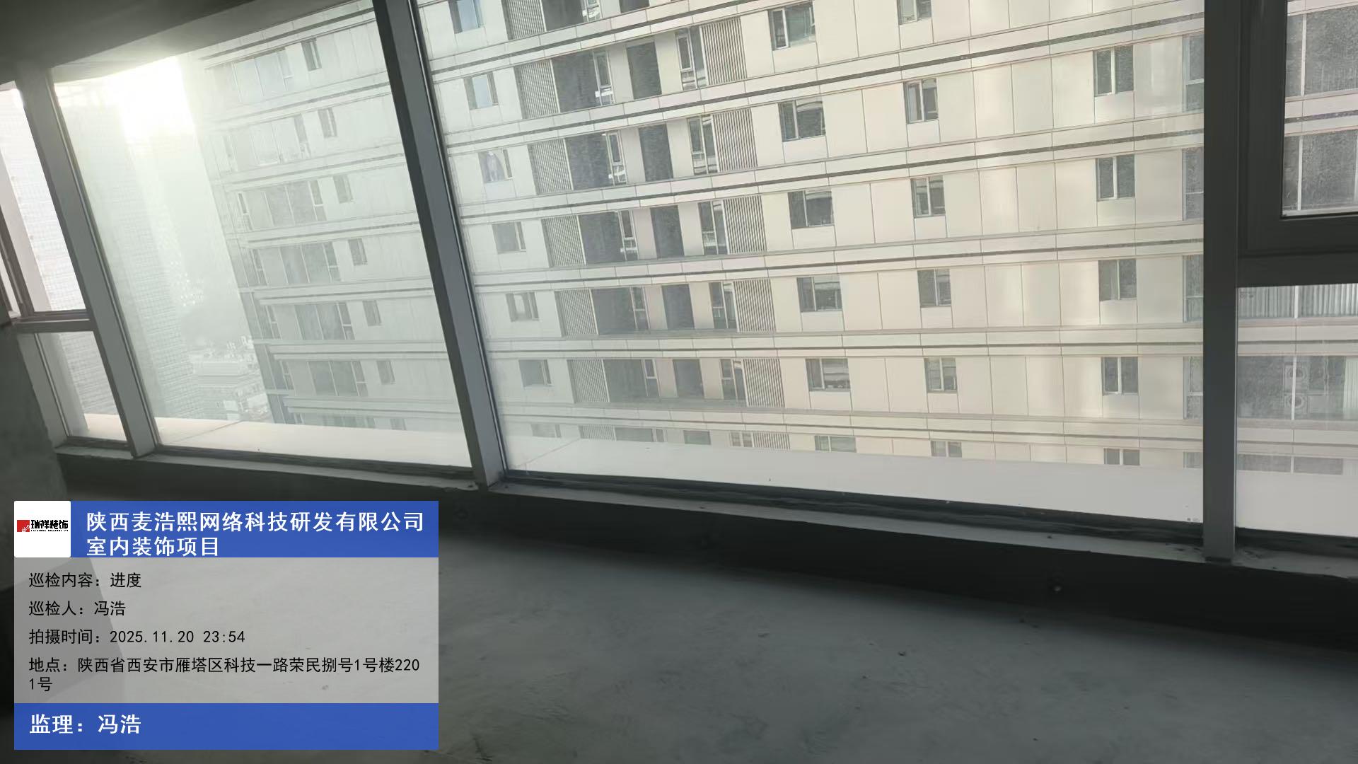 版权声明:本站所有文章除特别标注授权发布外,其他文字内容均为原创,享有著作权保护,未经许可不得以任何形式进行转载(包括且不限于:媒体、网站、公众号等)。本文链接 -> 陕西麦浩熙网络科技研发有限公司办公设计室内装修2025年11月20日工程监理巡检
