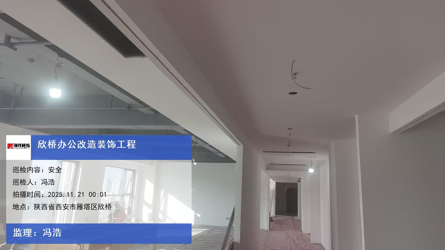 版权声明:本站所有文章除特别标注授权发布外,其他文字内容均为原创,享有著作权保护,未经许可不得以任何形式进行转载(包括且不限于:媒体、网站、公众号等)。本文链接 -> 欣桥办公改造办公室设计2025年11月21日工程监理巡检