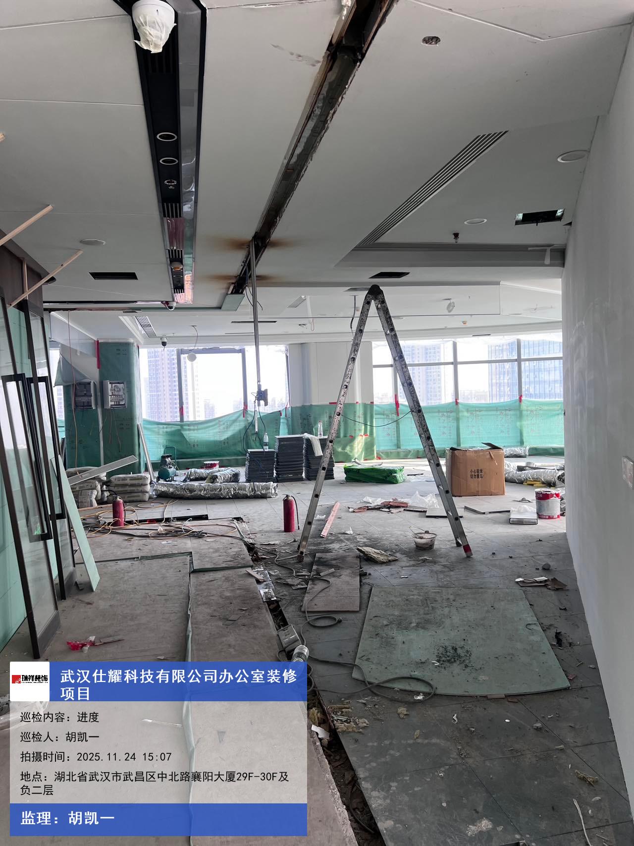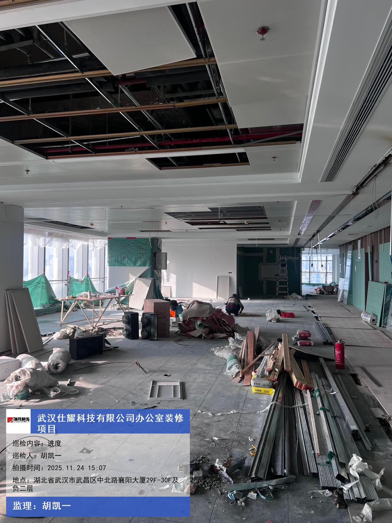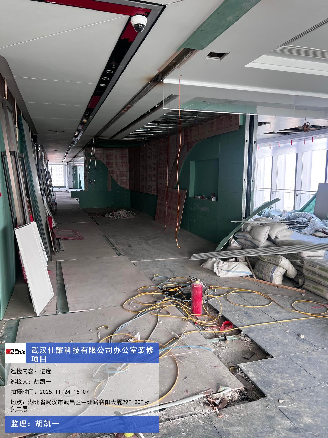版权声明:本站所有文章除特别标注授权发布外,其他文字内容均为原创,享有著作权保护,未经许可不得以任何形式进行转载(包括且不限于:媒体、网站、公众号等)。本文链接 -> 武汉仕耀科技有限公司 办公楼装修公司2025年11月24日工程监理巡检
