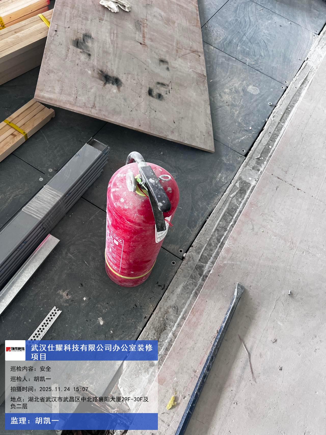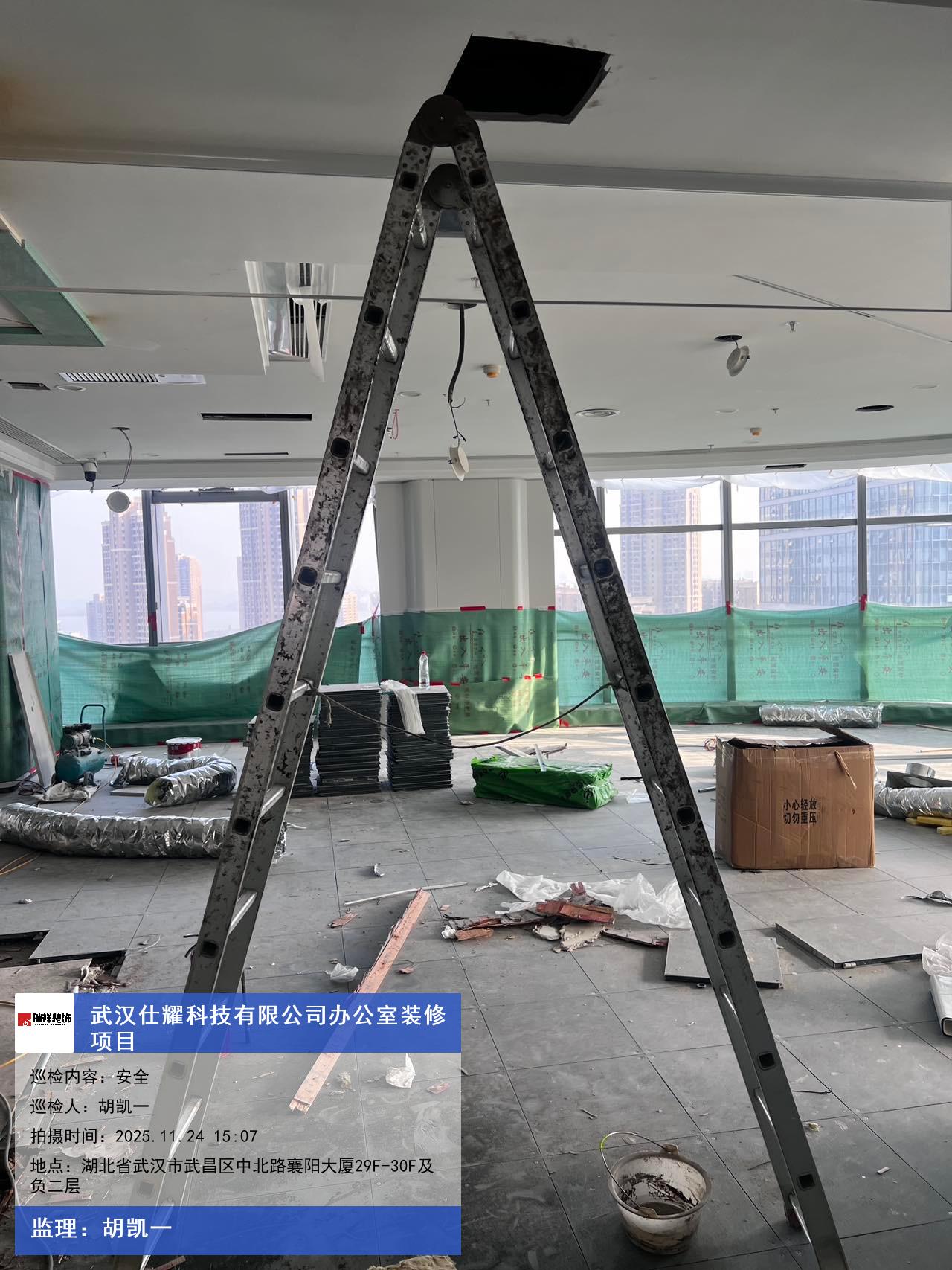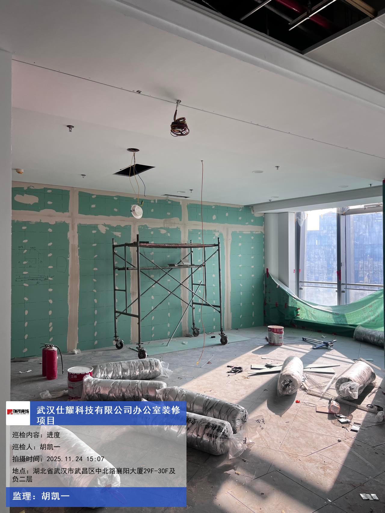 版权声明:本站所有文章除特别标注授权发布外,其他文字内容均为原创,享有著作权保护,未经许可不得以任何形式进行转载(包括且不限于:媒体、网站、公众号等)。本文链接 -> 武汉仕耀科技有限公司 办公楼装修公司2025年11月24日工程监理巡检