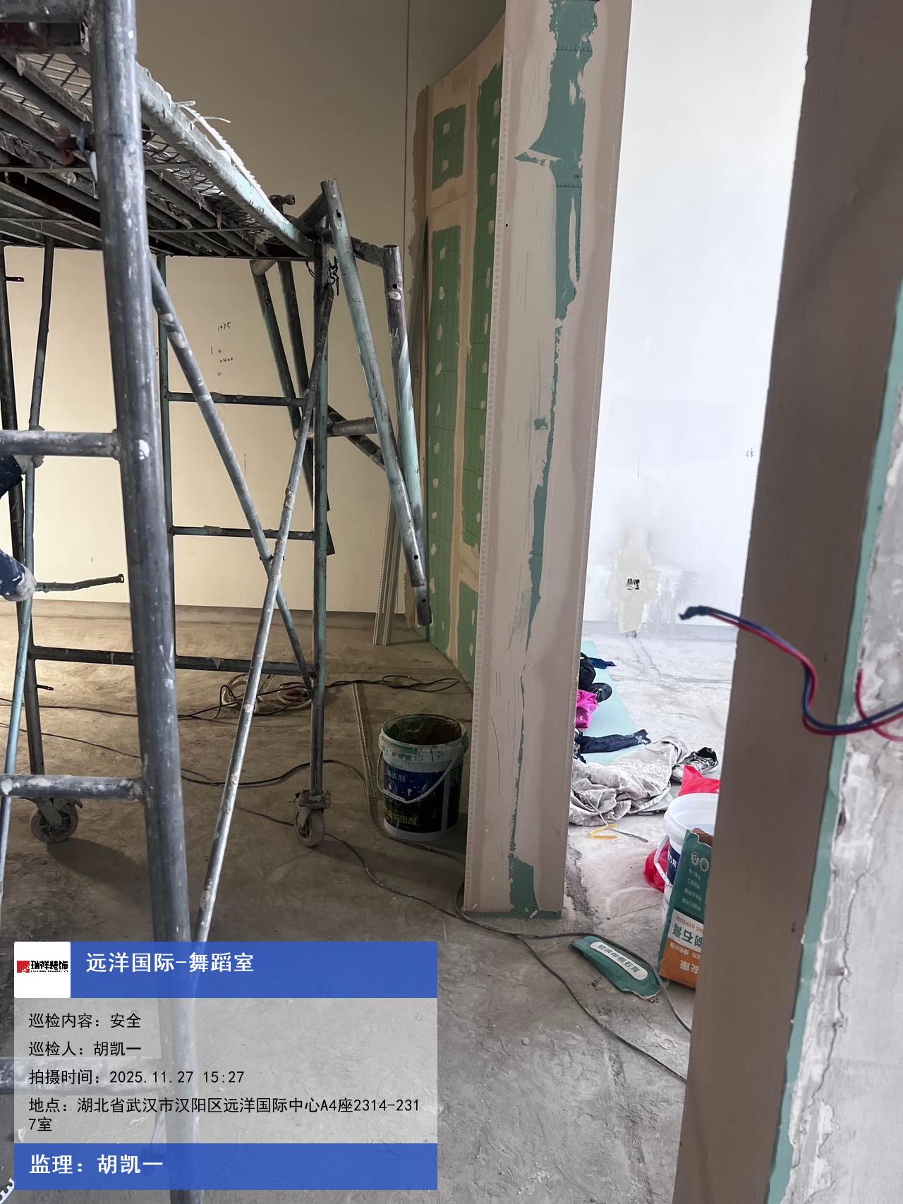 版权声明:本站所有文章除特别标注授权发布外,其他文字内容均为原创,享有著作权保护,未经许可不得以任何形式进行转载(包括且不限于:媒体、网站、公众号等)。本文链接 -> 远洋国际-舞蹈室店面室内设计2025年11月27日工程监理巡检