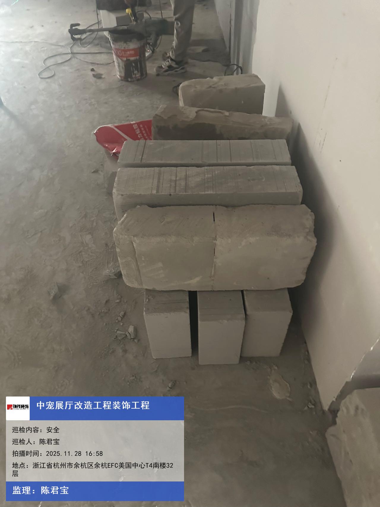 版权声明:本站所有文章除特别标注授权发布外,其他文字内容均为原创,享有著作权保护,未经许可不得以任何形式进行转载(包括且不限于:媒体、网站、公众号等)。本文链接 -> 中宠股份领先宠物食品展厅改造工程办公楼装修公司2025年11月28日工程监理巡检
