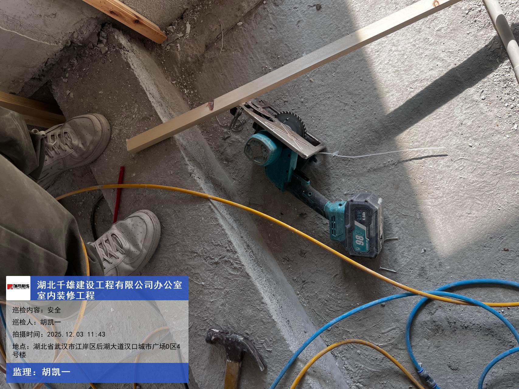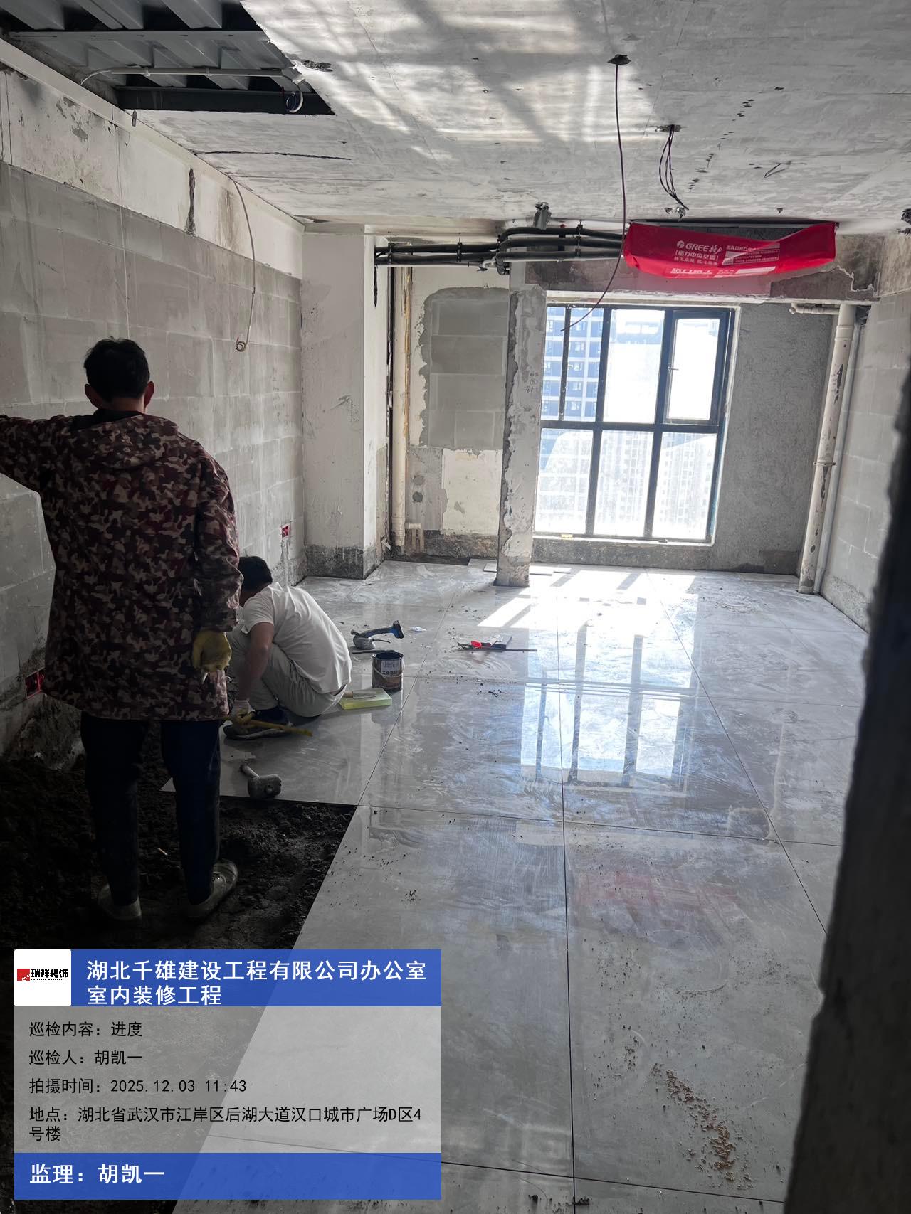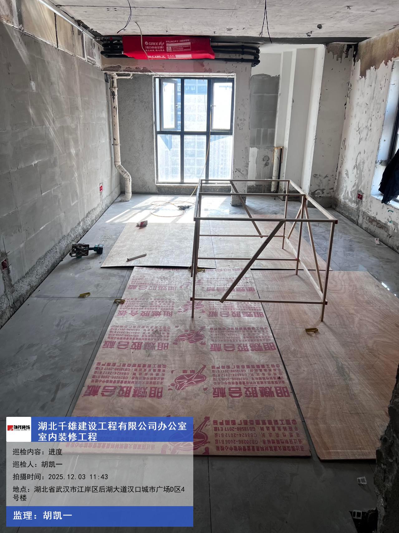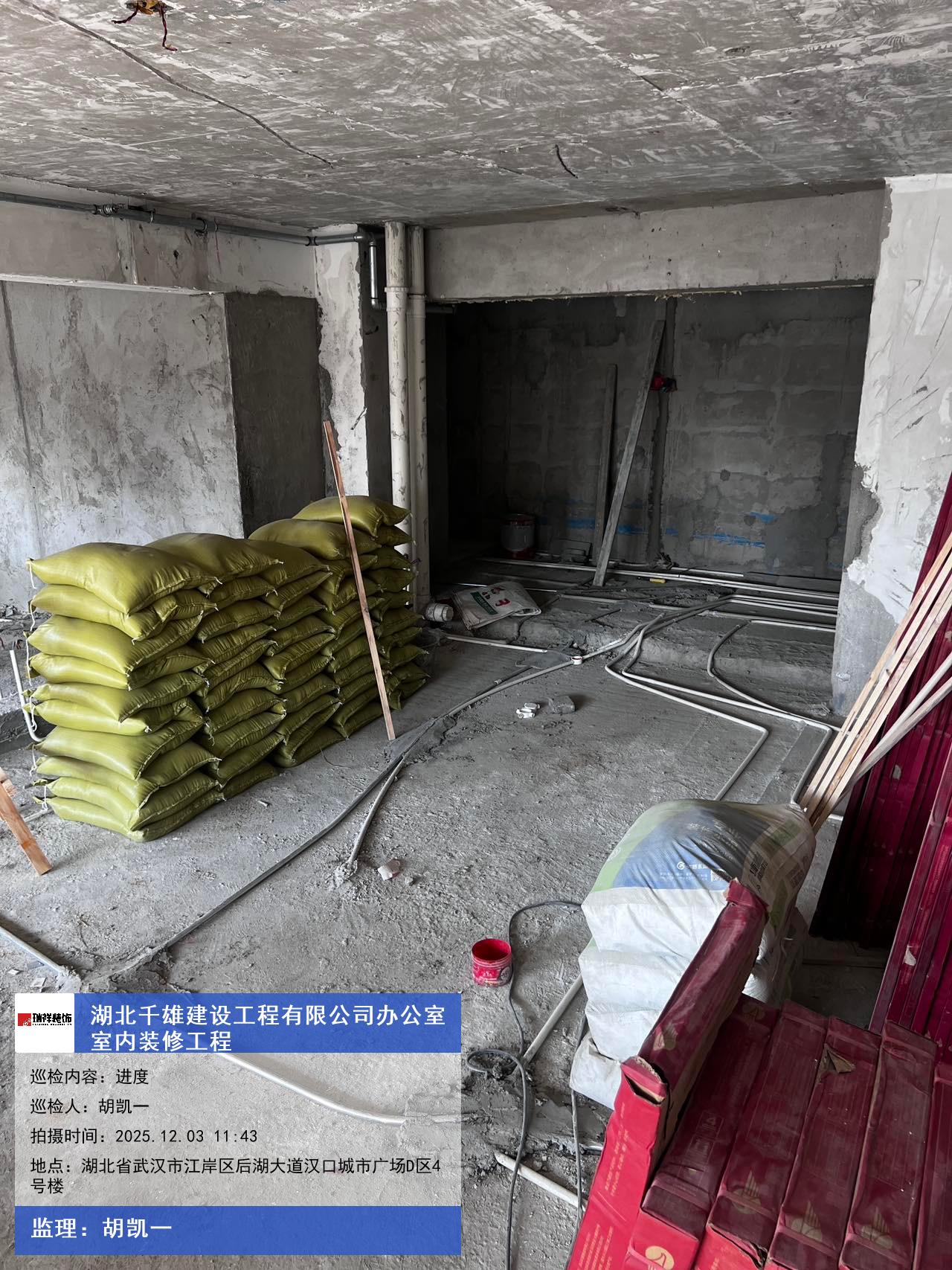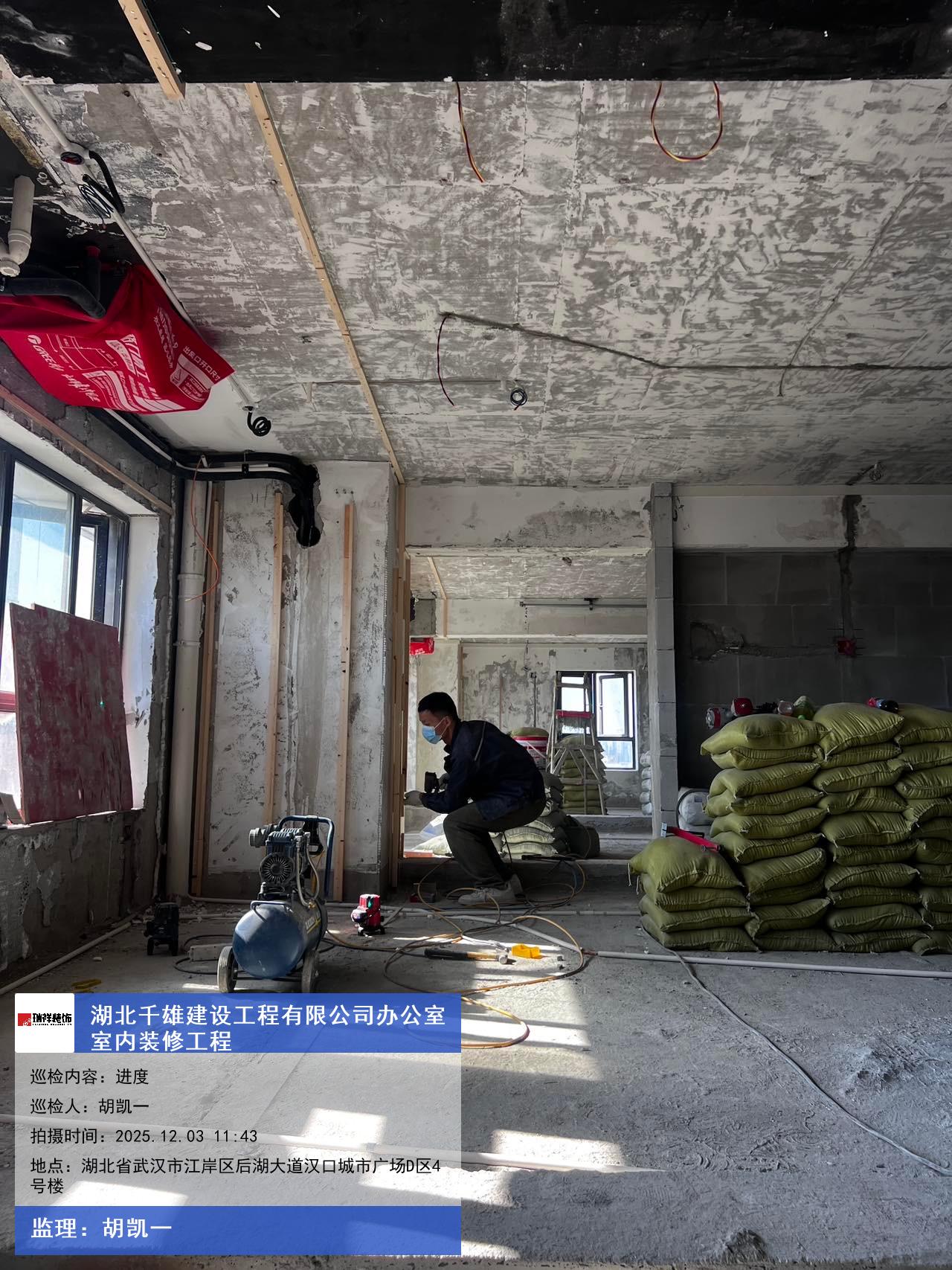 版权声明:本站所有文章除特别标注授权发布外,其他文字内容均为原创,享有著作权保护,未经许可不得以任何形式进行转载(包括且不限于:媒体、网站、公众号等)。本文链接 -> 湖北千雄建设工程有限公司办公室装修装饰2025年12月03日工程监理巡检