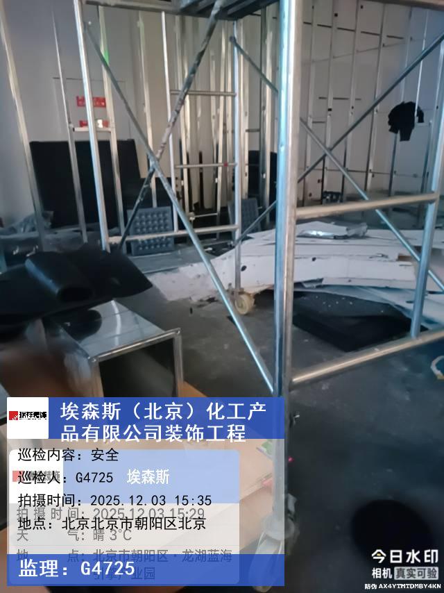 版权声明:本站所有文章除特别标注授权发布外,其他文字内容均为原创,享有著作权保护,未经许可不得以任何形式进行转载(包括且不限于:媒体、网站、公众号等)。本文链接 -> 埃森斯(北京)化工产品有限公司专业办公室装修2025年12月03日工程监理巡检
