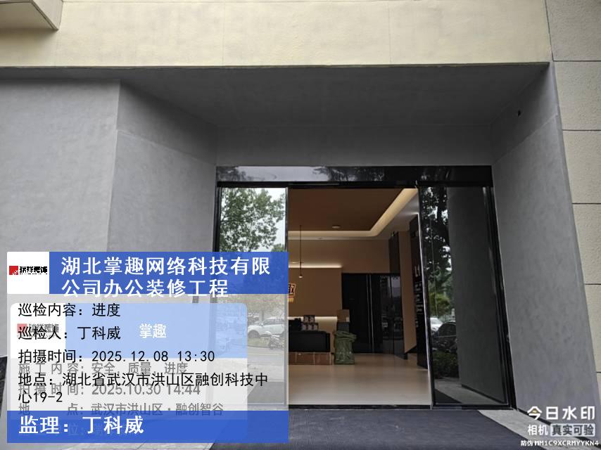 版权声明:本站所有文章除特别标注授权发布外,其他文字内容均为原创,享有著作权保护,未经许可不得以任何形式进行转载(包括且不限于:媒体、网站、公众号等)。本文链接 -> 湖北掌趣网络科技有限公司办公室装修2025年12月08日工程监理巡检