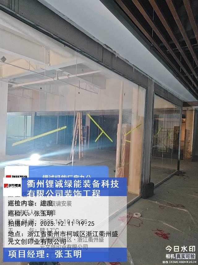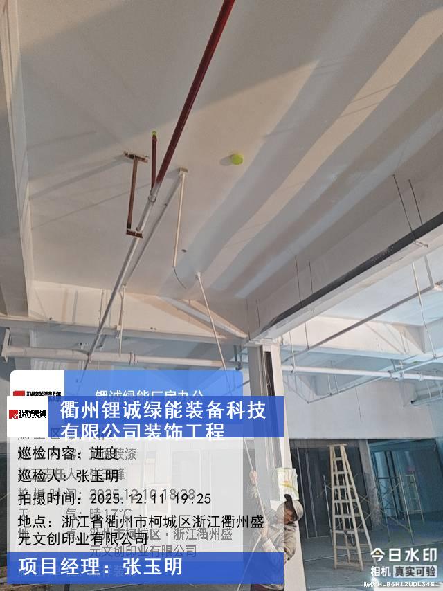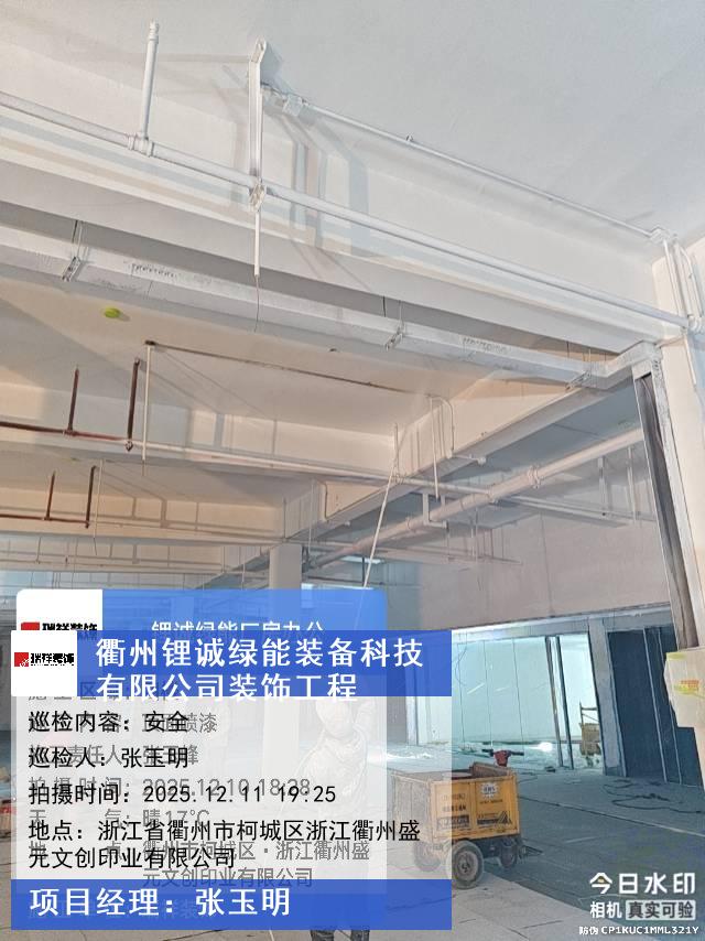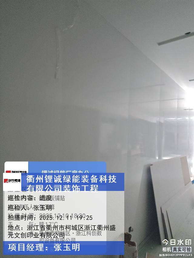 版权声明:本站所有文章除特别标注授权发布外,其他文字内容均为原创,享有著作权保护,未经许可不得以任何形式进行转载(包括且不限于:媒体、网站、公众号等)。本文链接 -> 衢州锂诚绿能装备科技有限公司办公室设计公司2025年12月11日项目经理巡检