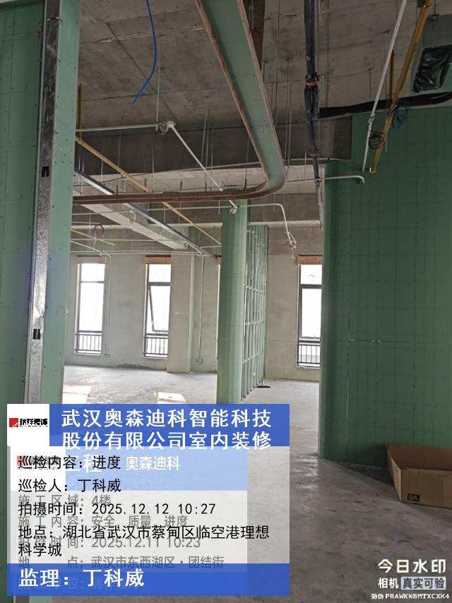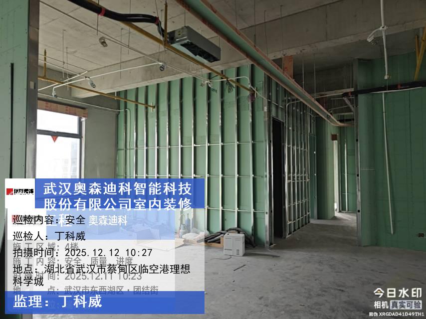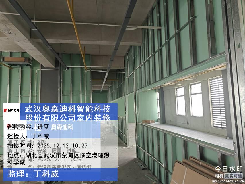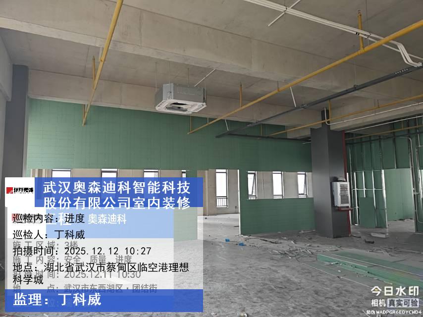 版权声明:本站所有文章除特别标注授权发布外,其他文字内容均为原创,享有著作权保护,未经许可不得以任何形式进行转载(包括且不限于:媒体、网站、公众号等)。本文链接 -> 武汉奥森迪科智能科技股份有限公司工业装修公司2025年12月12日工程监理巡检
