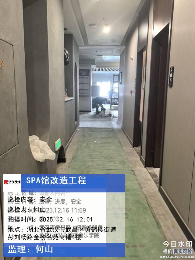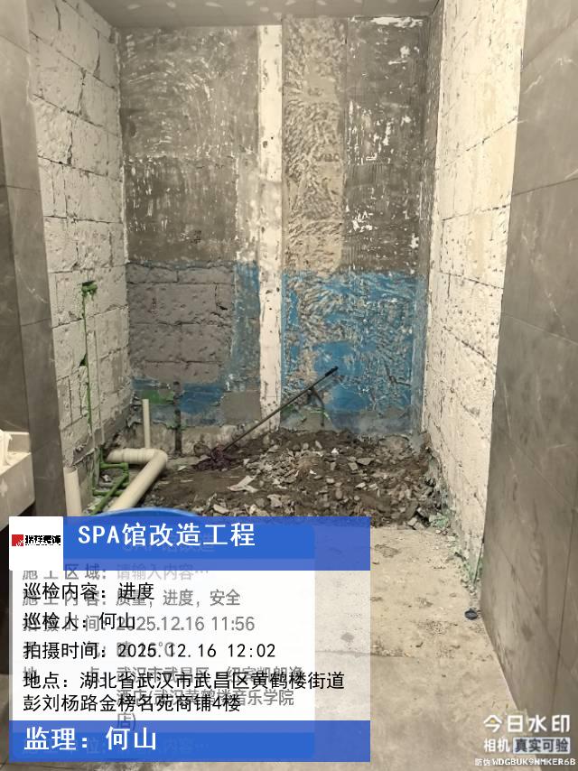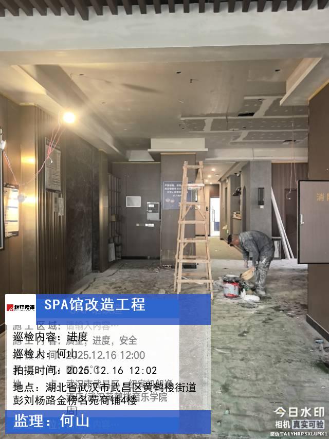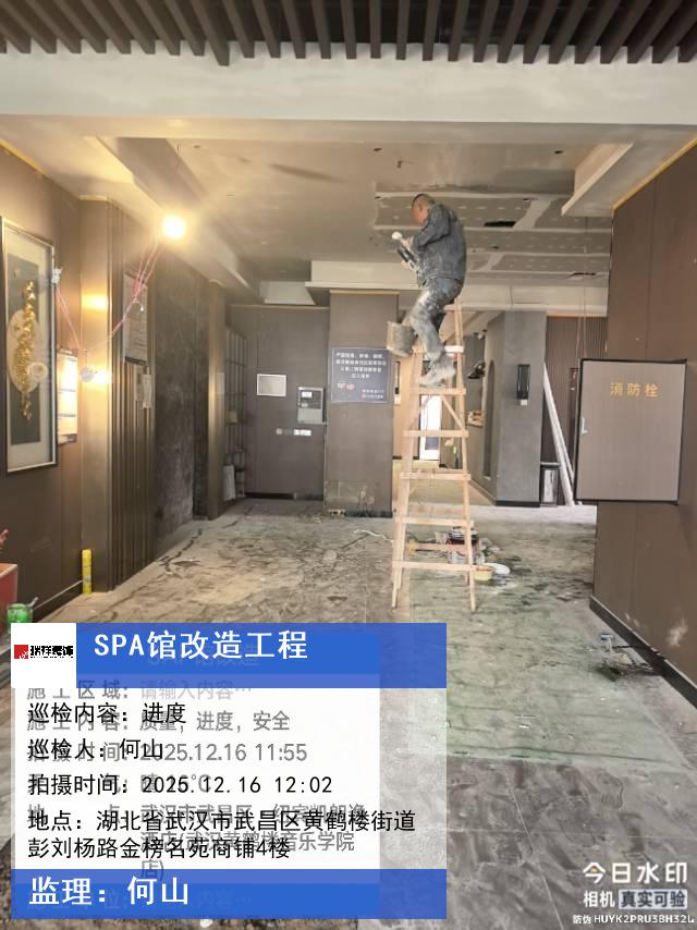 版权声明:本站所有文章除特别标注授权发布外,其他文字内容均为原创,享有著作权保护,未经许可不得以任何形式进行转载(包括且不限于:媒体、网站、公众号等)。本文链接 -> SPA馆改造工程店面室内设计2025年12月16日工程监理巡检