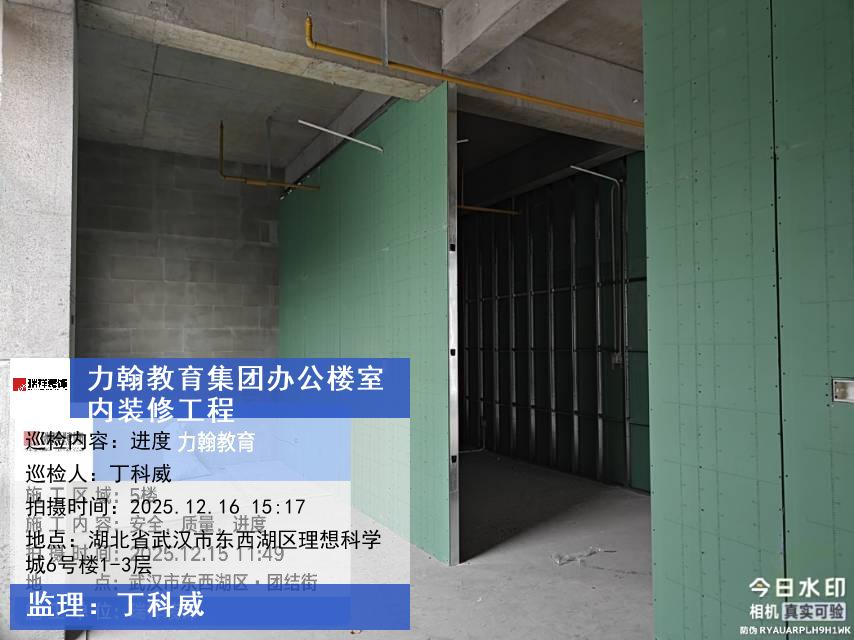 版权声明:本站所有文章除特别标注授权发布外,其他文字内容均为原创,享有著作权保护,未经许可不得以任何形式进行转载(包括且不限于:媒体、网站、公众号等)。本文链接 -> 武汉力翰科普发展有限公司银行装修2025年12月16日工程监理巡检