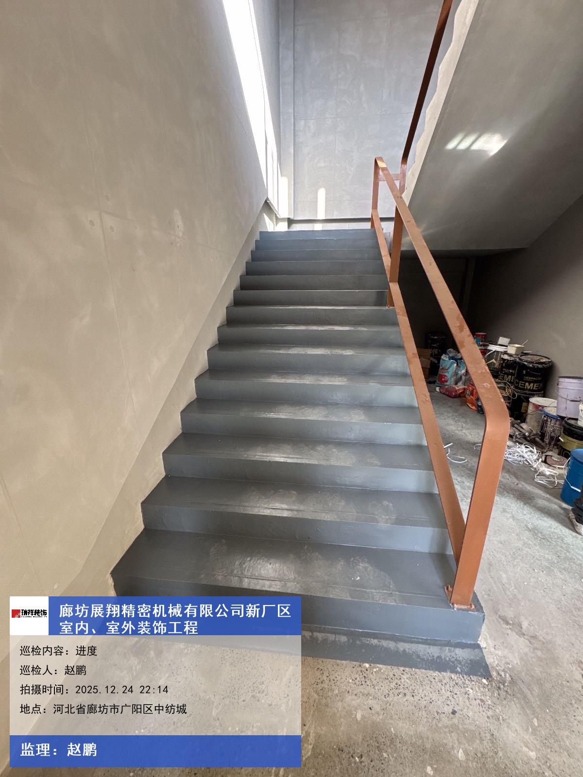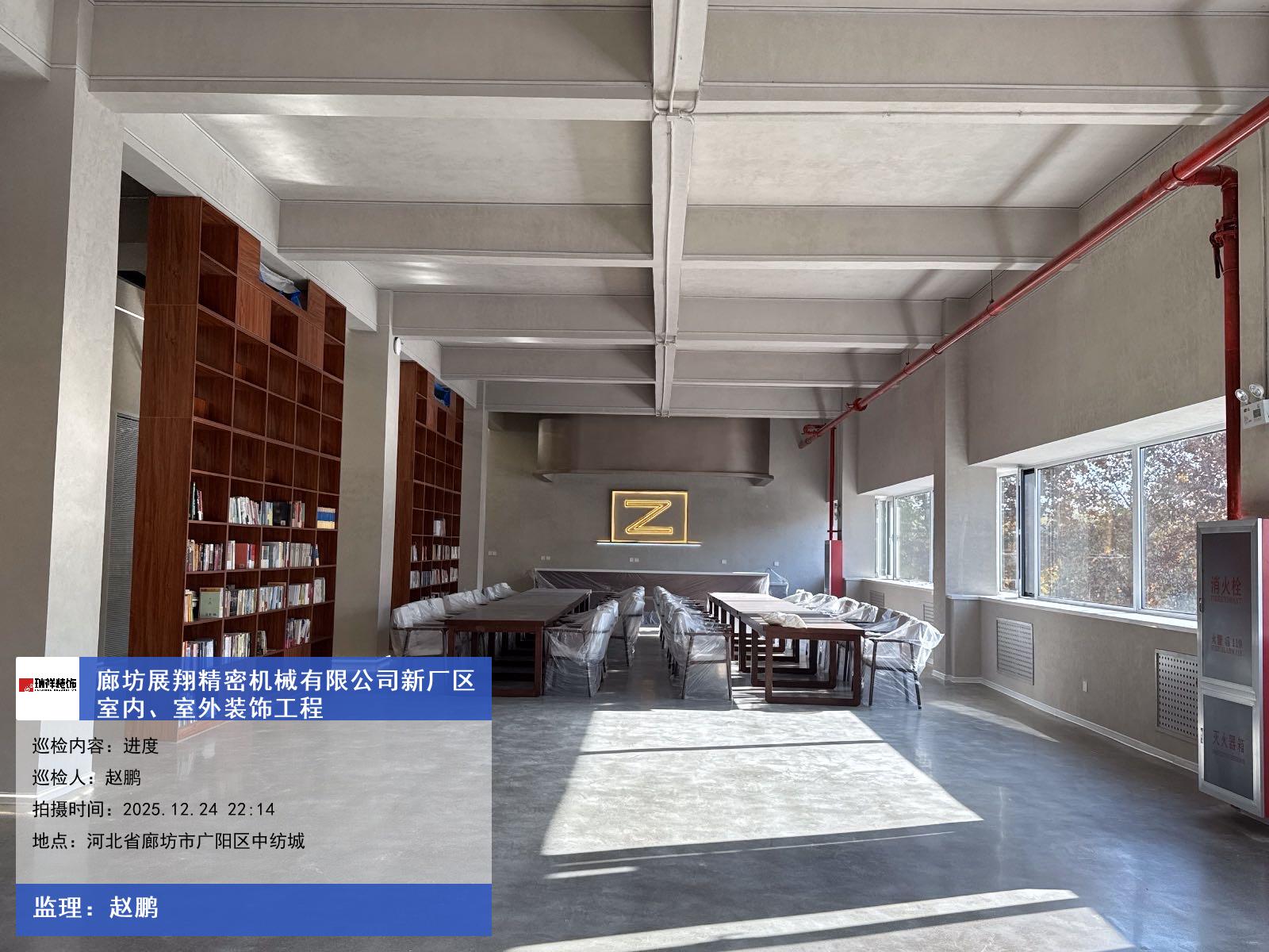 版权声明:本站所有文章除特别标注授权发布外,其他文字内容均为原创,享有著作权保护,未经许可不得以任何形式进行转载(包括且不限于:媒体、网站、公众号等)。本文链接 -> 廊坊展翔精密机械有限公司写字楼装修设计2025年12月24日工程监理巡检