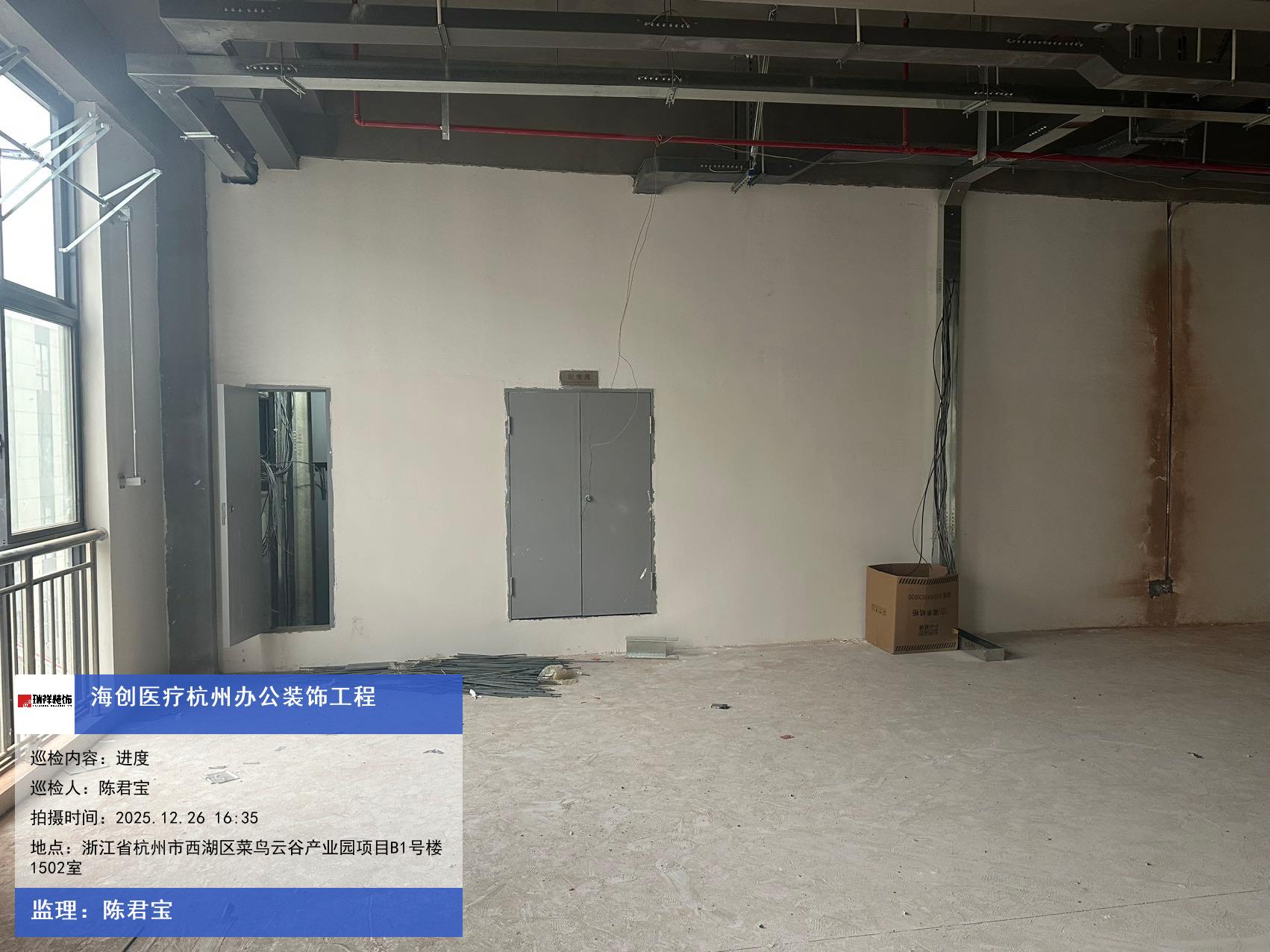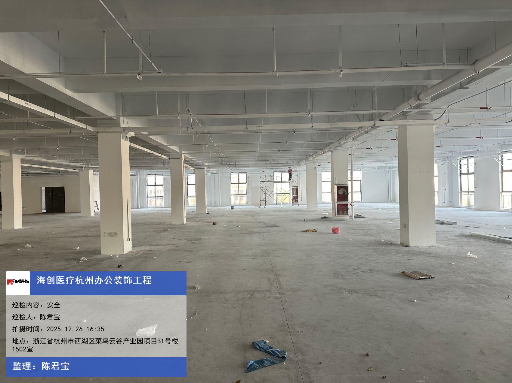 版权声明:本站所有文章除特别标注授权发布外,其他文字内容均为原创,享有著作权保护,未经许可不得以任何形式进行转载(包括且不限于:媒体、网站、公众号等)。本文链接 -> 海创未来(杭州)医疗科技有限公司装修公司办公室2025年12月26日工程监理巡检