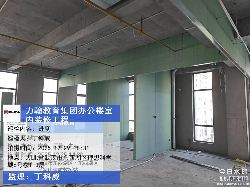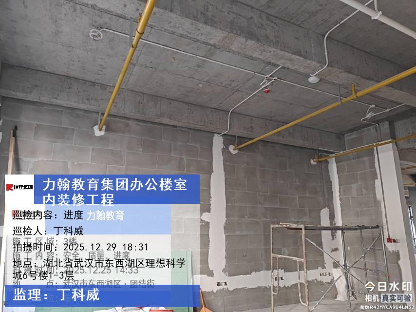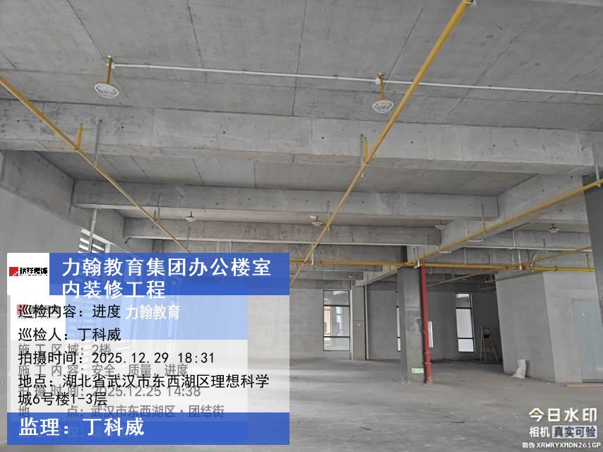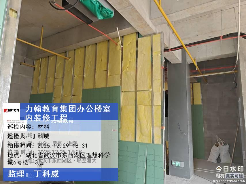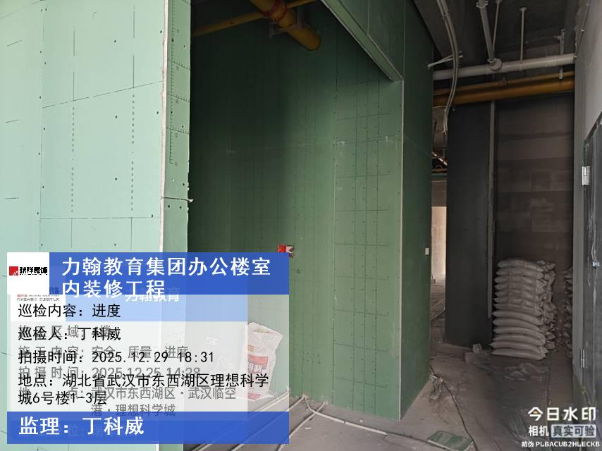 版权声明:本站所有文章除特别标注授权发布外,其他文字内容均为原创,享有著作权保护,未经许可不得以任何形式进行转载(包括且不限于:媒体、网站、公众号等)。本文链接 -> 武汉力翰科普发展有限公司办公室装修2025年12月29日工程监理巡检