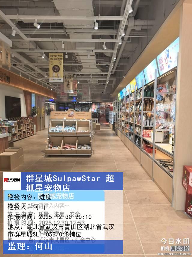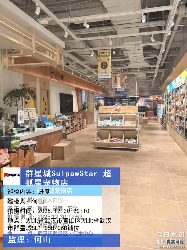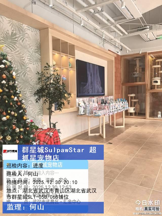 版权声明:本站所有文章除特别标注授权发布外,其他文字内容均为原创,享有著作权保护,未经许可不得以任何形式进行转载(包括且不限于:媒体、网站、公众号等)。本文链接 -> 武汉市武昌区欣宠宠物服务部商业装修2025年12月30日工程监理巡检